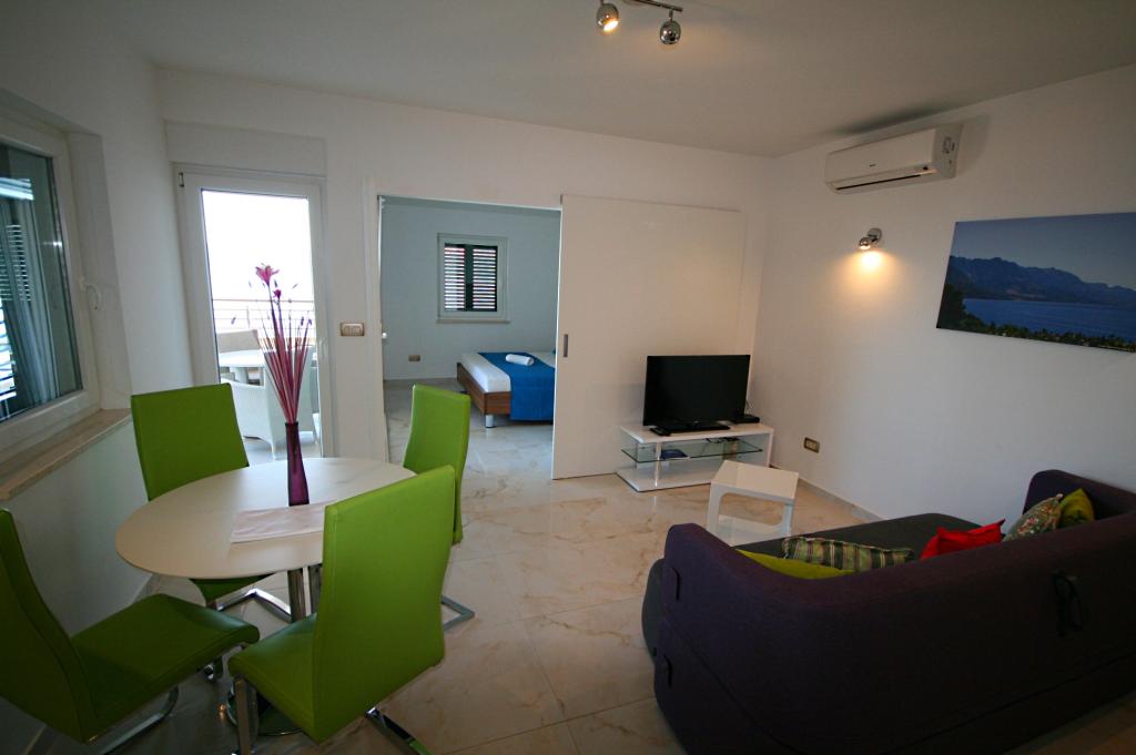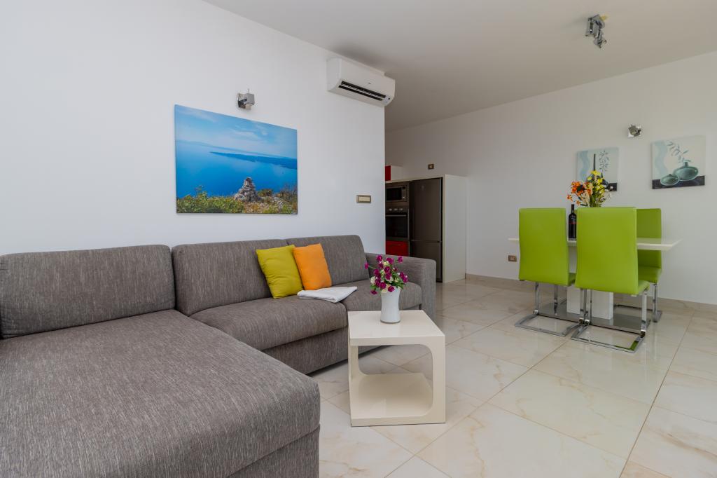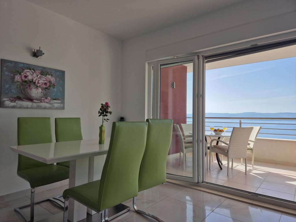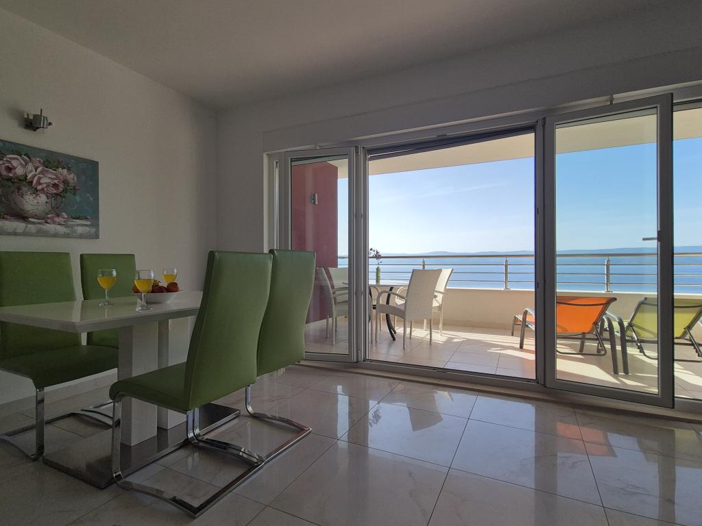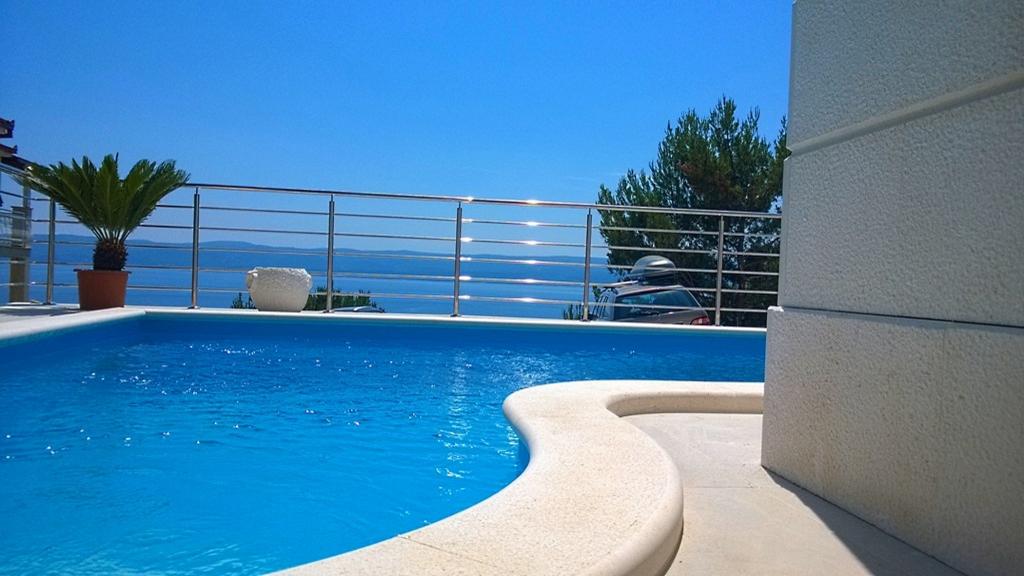 Villasanta De Luxe to nowo wybudowana luksusowa willa z odkrytym basenem z masażem, położona w pierwszym rzędzie do morza nad plażą, składająca się z sześciu wspaniałych i w pełni wyposażonych apartamentów. Apartament posiada duży taras z pięknym widokiem panoramicznym na morze i pobliskie wyspy. Każdy apartament posiada bezpłatny Internet WIFI, wszystkie pokoje są klimatyzowane, a kuchnie są w pełni wyposażone. Każdy apartament posiada miejsce parkingowe. Obok domu znajduje się grill i miejsce do spotkań towarzyskich, przestronny ogród i piękny widok na morze. Doskonałe połączenia komunikacyjne (lotnisko Split 50 km, Split 35 km, Omis 10 km, Makarska 20 km). Oferujemy również transport z lotniska.