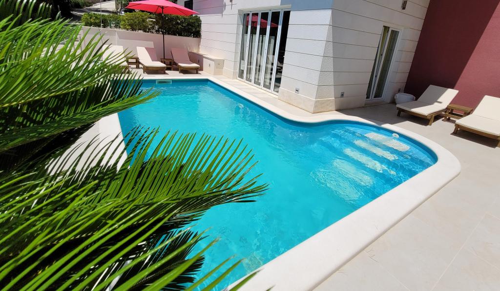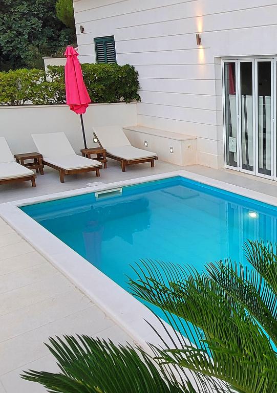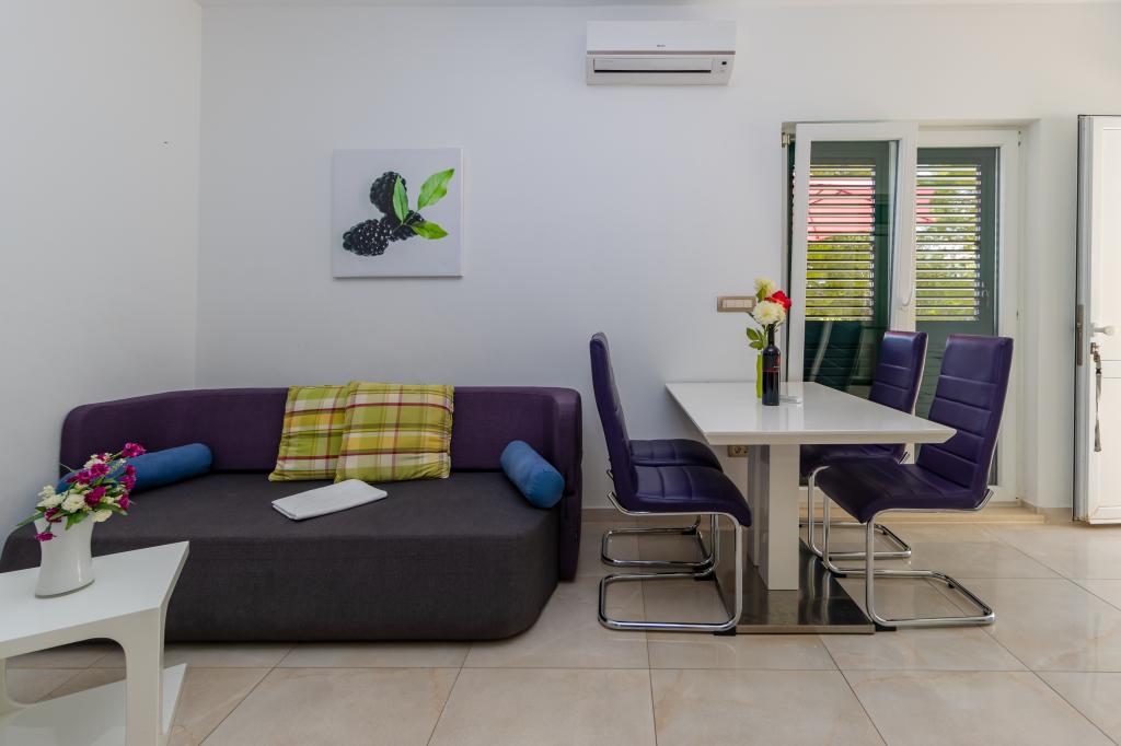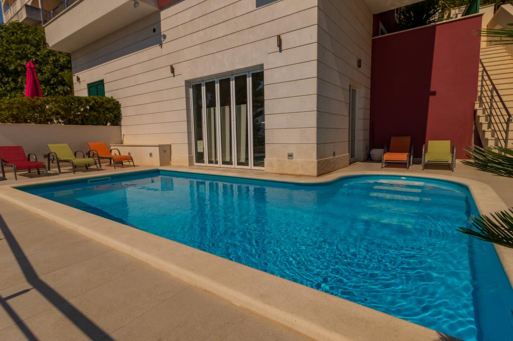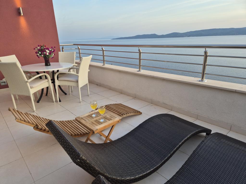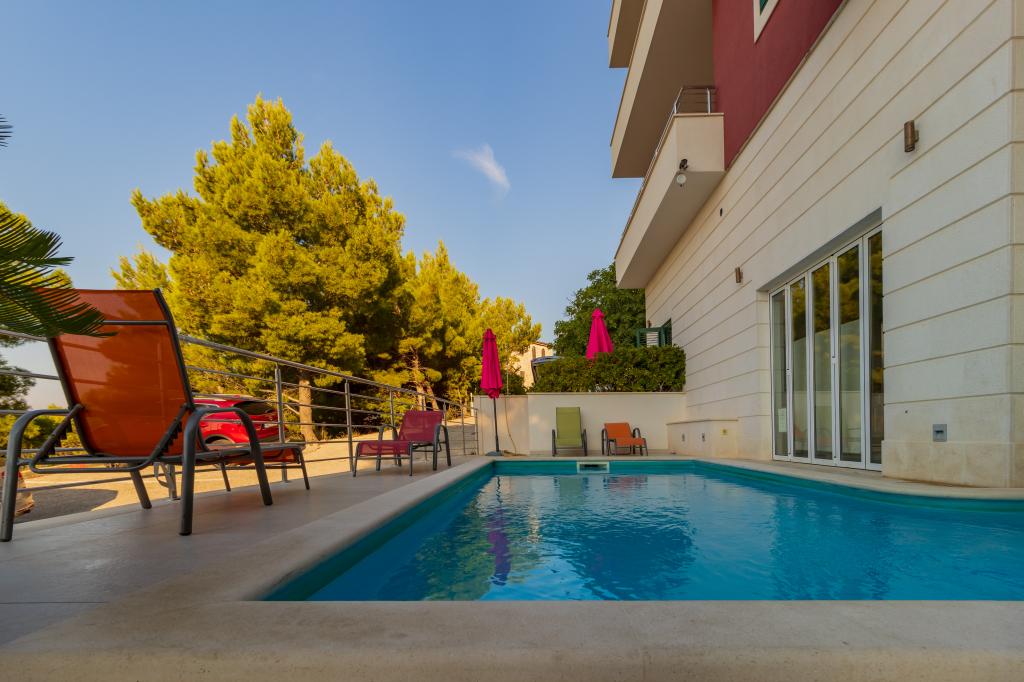 Villasanta De Luxe to nowo wybudowana luksusowa willa z odkrytym basenem z masażem, położona w pierwszym rzędzie do morza nad plażą, składająca się z sześciu wspaniałych i w pełni wyposażonych apartamentów. Apartament posiada duży taras z pięknym widokiem panoramicznym na morze i pobliskie wyspy. Każdy apartament posiada bezpłatny Internet WIFI, wszystkie pokoje są klimatyzowane, a kuchnie są w pełni wyposażone. Każdy apartament posiada miejsce parkingowe. Obok domu znajduje się grill i miejsce do spotkań towarzyskich, przestronny ogród i piękny widok na morze. Doskonałe połączenia komunikacyjne (lotnisko Split 50 km, Split 35 km, Omis 10 km, Makarska 20 km). Oferujemy również transport z lotniska.