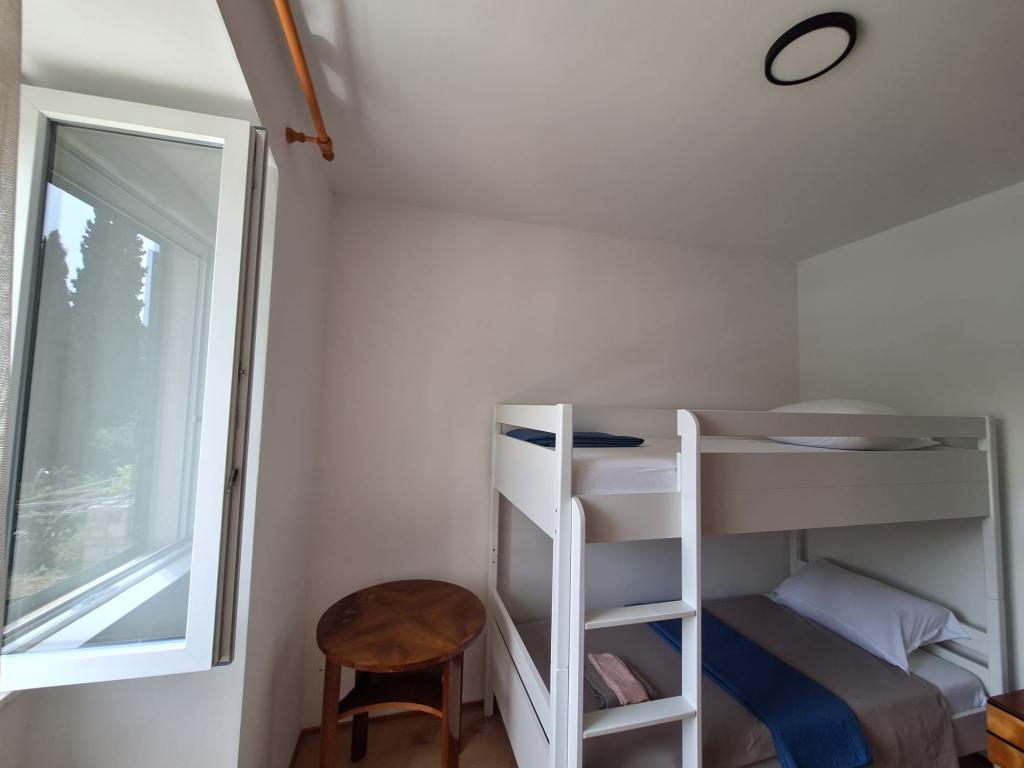 Te komfortowe apartamenty mieszczą się w tradycyjnym dalmatyńskim domu z kamienia, w pierwszym rzędzie od morza, skąd roztacza się niesamowity widok na przystań i krystalicznie błękitne morze. Jedno mieszkanie to kawalerka na poddaszu, natomiast drugie to dwupokojowe mieszkanie na parterze, oba z własną, w pełni wyposażoną kuchnią i nowoczesną łazienką. Niezależnie od tego, czy jesteś parą szukającą intymności, czy rodziną szukającą przestronnych kwater, te apartamenty oferują komfort i wygodę. Duży wspólny taras zewnętrzny o powierzchni 60m2 jest idealnym miejscem na relaks o zachodzie słońca lub spędzenie wieczoru z innymi gośćmi, podziwiając piękny widok na morze i przystań. Tutaj możesz naprawdę doświadczyć uroków dalmatyńskiego życia, korzystając z komfortu nowoczesnego sprzętu i bliskości morza.