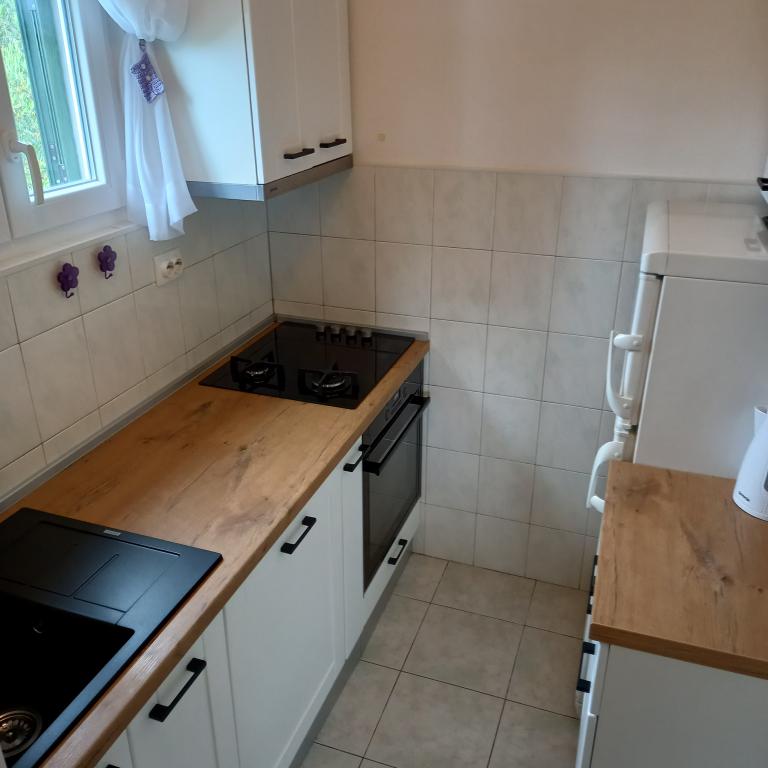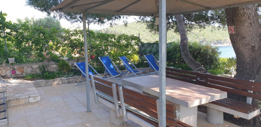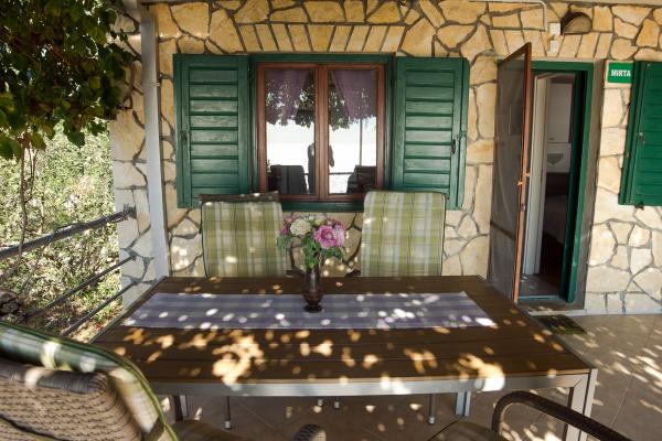 Oferujemy dwa mniejsze kamienne domy oddalone od siebie o około dziesięć metrów, każdy z własnym, specjalnym położeniem, zapewniającym intymność przyjemnego pobytu. Piękny widok panoramiczny. Domy są w pierwszym rzędzie do morza i znajdują się na 1100 m2 ogrodzonej działce, do morza i betonowej plaży jest 30 m. Centrum Maslinic z restauracjami i sklepami znajduje się 500 m od domów. Do domów prowadzi droga o długości 300 m. Jest też grill, prysznic na zewnątrz i parking. Dom Mirta o powierzchni 45 m2. Posiada dwie sypialnie (jedno podwójne łóżko, dwa pojedyncze łóżka), pokój dzienny z dostawką, kuchnia, łazienka, taras 25 m2 z naturalnym cieniem. Dom Rusulica o powierzchni 35 m2. Posiada dwie sypialnie (jedno podwójne łóżko, dwa pojedyncze łóżka), pokój dzienny, kuchnia, łazienka, taras 25 m2 z naturalnym cieniem.