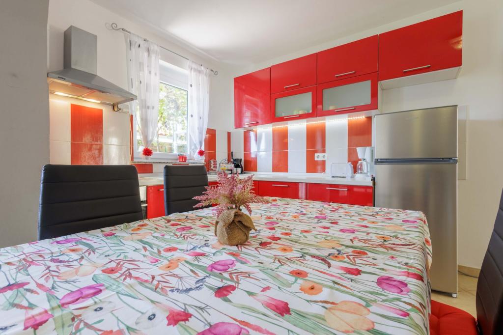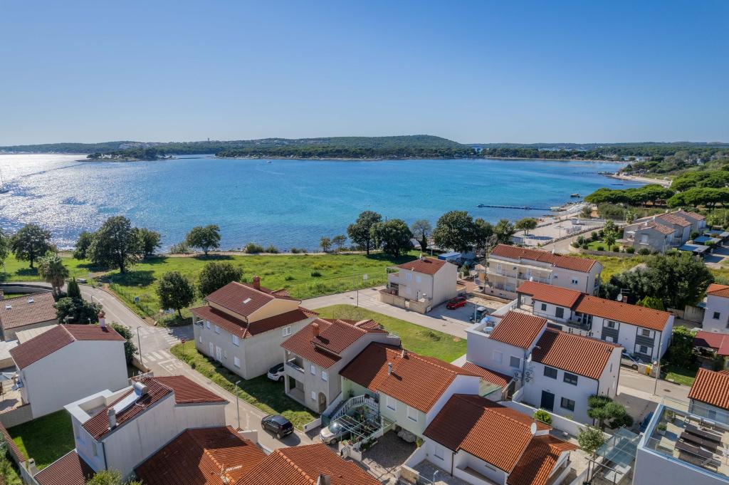 Apartamenty Marin w spokojnej części Medulin, w miejscowości Pošesi, oferują w pełni wyposażone mieszkanie: na parterze dwupokojowe mieszkanie z 4 łóżkami, zaledwie pięćdziesiąt kroków od plaży z widokiem na morze, parking oraz jacuzzi na parterze. Jacuzzi za dodatkową opłatą 15 €/dzień. Odległość od słynnej piaszczystej plaży Bjeca 800 m.