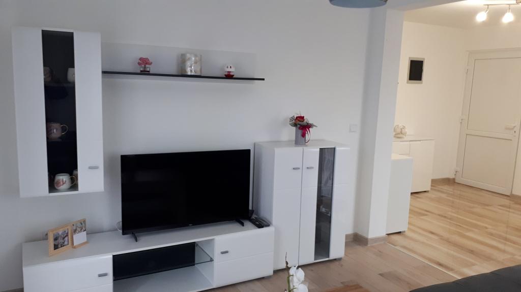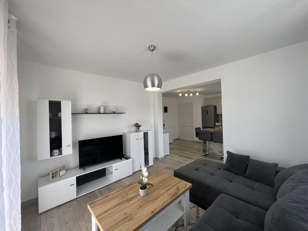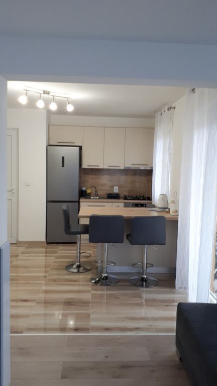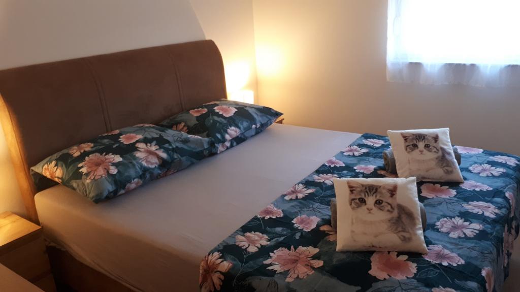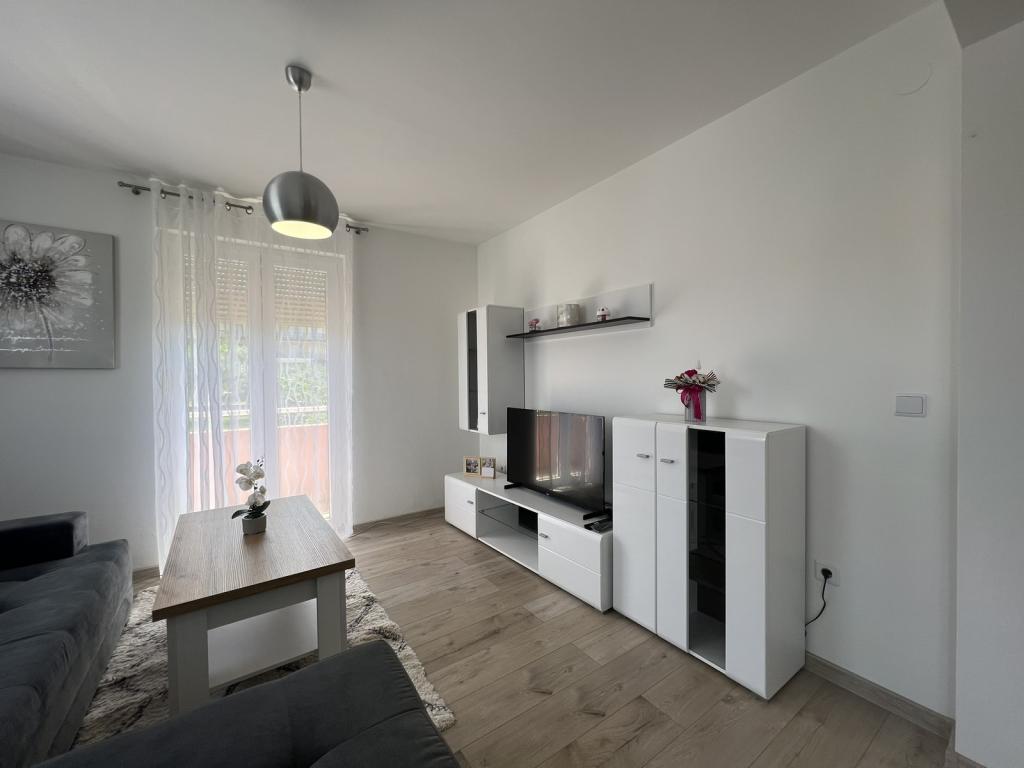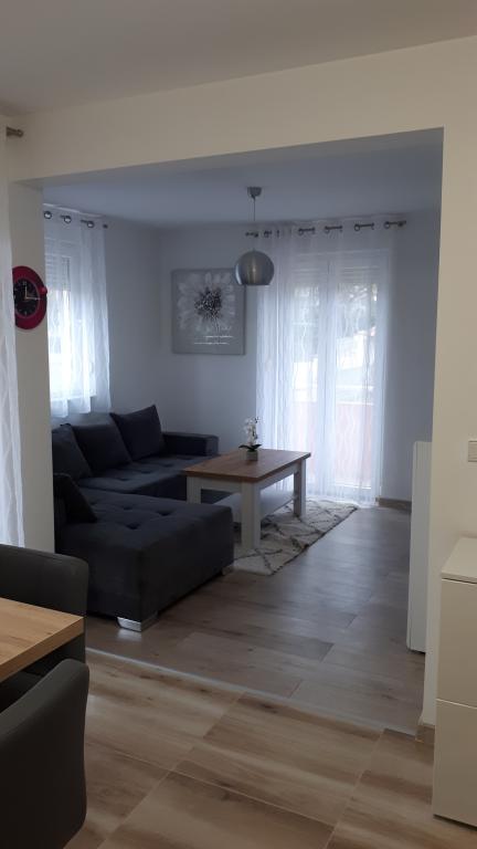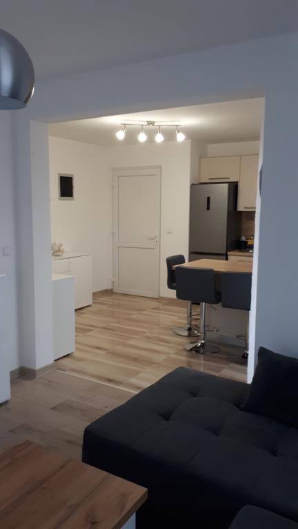 Mieszkanie o nowoczesnym wystroju, zlokalizowane na 1 piętrze budynku mieszkalnego w spokojnej okolicy. Całkowicie odnowione mieszkanie, 1 sypialnia + rozkładana sofa, 2 balkony, całkowicie nowe wyposażenie, pościel, ręczniki, klimatyzacja, Wi-Fi, parking, lodówka, pralka rubli