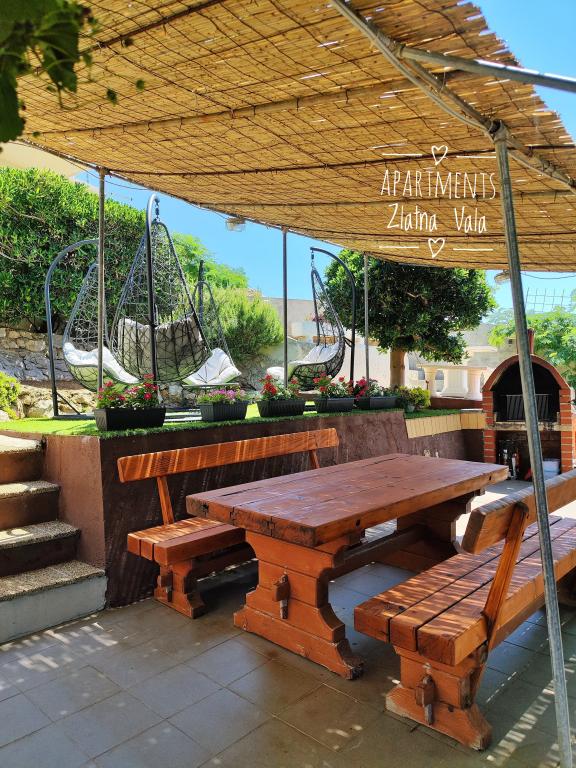 Apartamenty Bingula znajdują się na niewielkim wzniesieniu zwanym Glavica, 150 m od morza i centrum Metajny. Bliskość centrum i morza pozwala naszym gościom w krótkim czasie być w centrum wydarzeń, a także wycofać się do spokoju, który oferuje nasza strona. Dla naszych gości przygotowaliśmy kilka tarasów ze wspólnym grillem, a dla najmłodszych gości mamy mały plac zabaw, dzięki któremu rodzice mogą się zrelaksować bez ograniczeń. Wszystkie apartamenty są w pełni i nowocześnie wyposażone: kuchnia z salonem, łazienka z WC, klimatyzacja, TV SAT, WLAN, balkon z widokiem na morze .... Dla tych, którzy zdecydują się na halfboard, oferujemy chorwackie specjały i międzynarodowe specjały z chorwackim piernikiem. Jeśli czegoś nie zauważysz, zawsze znajdą się gospodarze, którzy z radością przyjdą i spotkają się z tobą. Czekamy na twoje przybycie, Rodzina Bingula