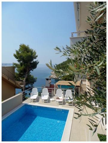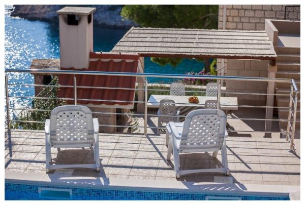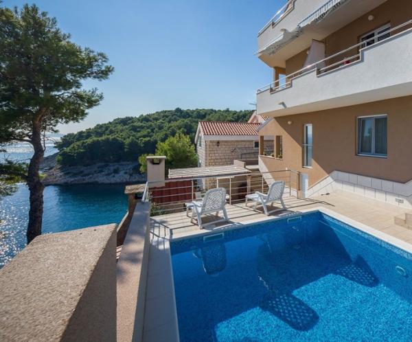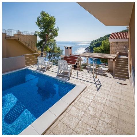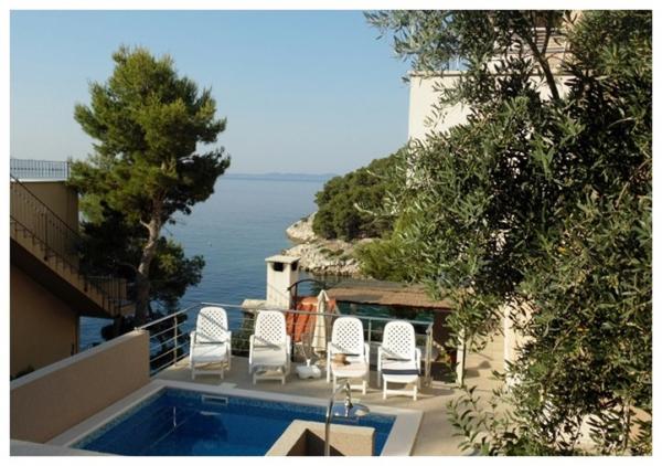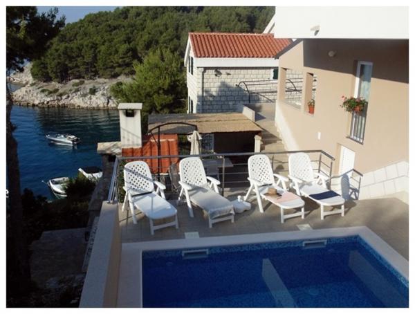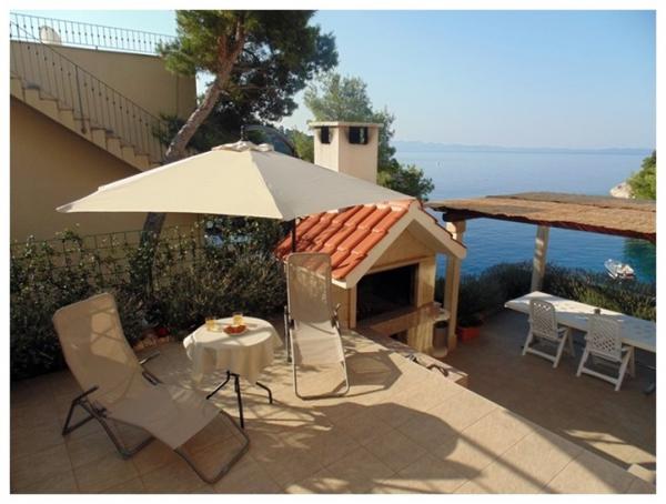 Spędź wakacje w apartamencie nad morzem w zatoce Osibova na wyspie Brač! Apartamenty BILI znajdują się w południowo-zachodniej części wyspy Brač, w zatoce Osibova, 2 km od miasta Milna. Nasz apartamentowiec wraz z ogrodem zajmuje powierzchnię 400 m² i znajduje się w odległości około 25 metrów od morza. Sam dom składa się z parteru, pierwszego piętra i wysokiego poddasza i posiada 6 mieszkań, w tym 4 do wynajęcia. Goście mogą korzystać z grilla oraz dużego wspólnego tarasu z widokiem na morze. Bezpośrednio obok domu znajduje się parking. Po wschodniej stronie domu znajduje się basen o powierzchni 23 m². Możliwość korzystania z prysznica na zewnątrz. Pod domem znajduje się bloczek betonowy ze schodami. Jest cały niezbędny sprzęt do cumowania pontonów i łodzi. Plaże żwirowe i kamieniste znajdują się we wnętrzu zatoki, 5 i 10 minut spacerem od apartamentu.