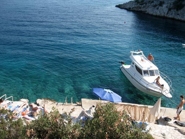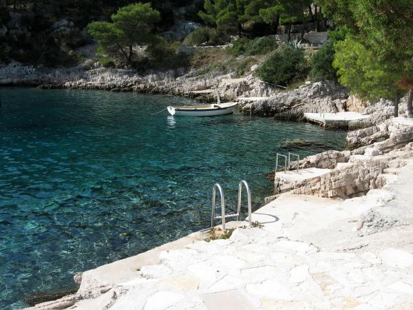 Piękna zatoka z czystej wody i prywatną plażę, gdzie można cieszyć się ciszą. Apartament całkowicie, jak pokazano, czyste i wyposażone we wszystko, czego potrzebujesz na wakacjach. Szczególnie podkreślić mnie istotną prysznic na zewnątrz i grill z dodatkowych pokoi. Gospodarze (cała rodzina) jest w pełni zaangażowana w swoją pracę, zawsze do usług. Absolute rekomendacja dla tych, którzy naprawdę chcą odpocząć od codziennego stresu i tłumów w ciągu roku.
