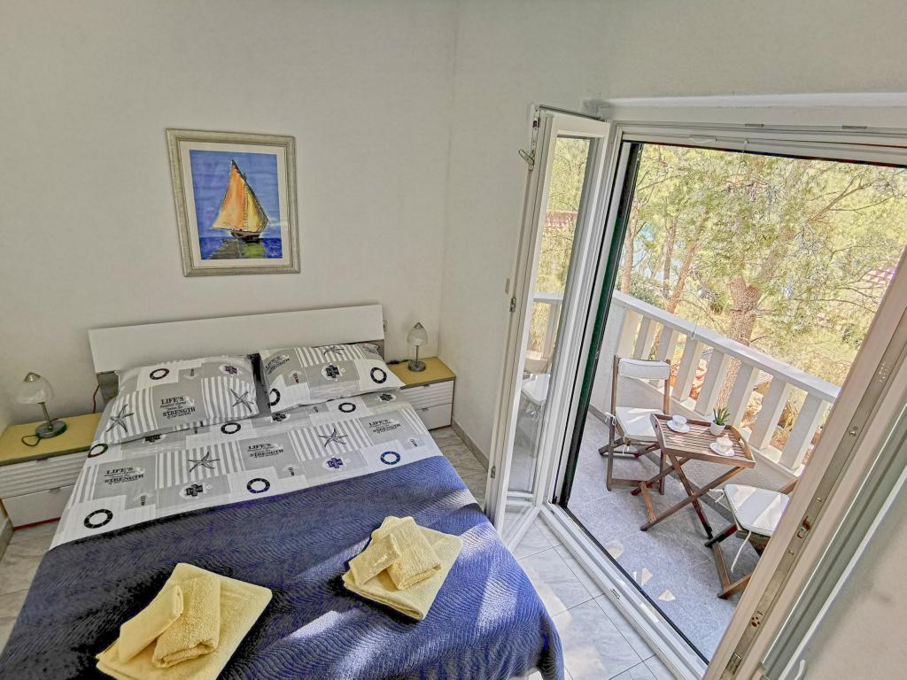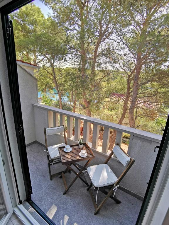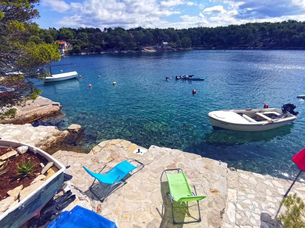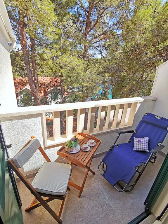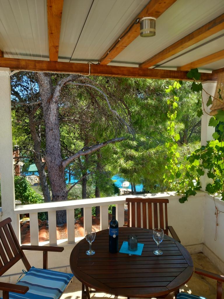 Dwa apartamenty nowocześnie wyposażone i klimatyzowane, położony w pięknym sosnowym lasy, zatoki smiještenena w południowo-zachodniej części wyspy, 30 m od morza, który jest również i plaża. Apartamenty składają się z kuchni, salonu, sypialni i łazienki. Każdy apartament posiada własne patio i miejsce parkingowe. Najbliższe miasto Milna, znajduje się w odległości 1500m, czyli 15 min spacerem.