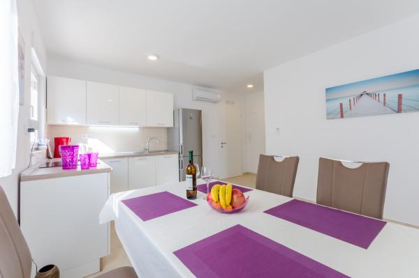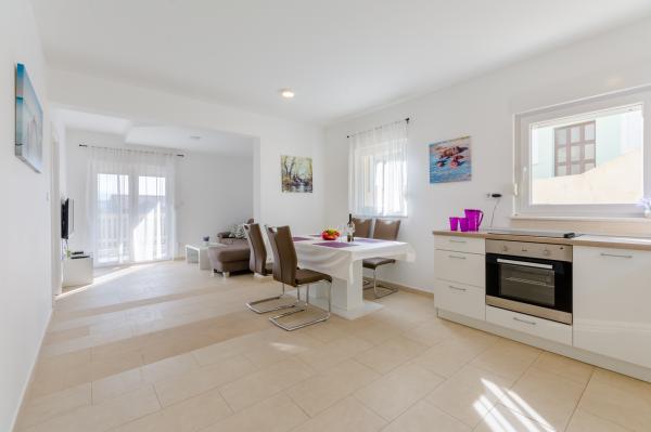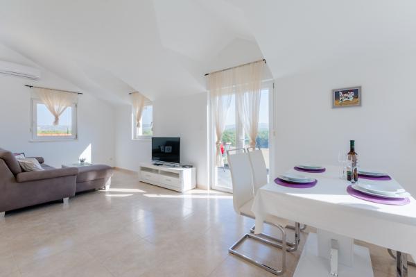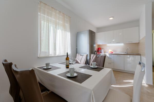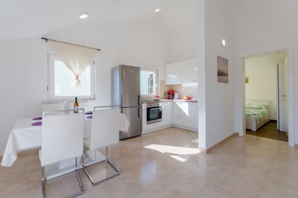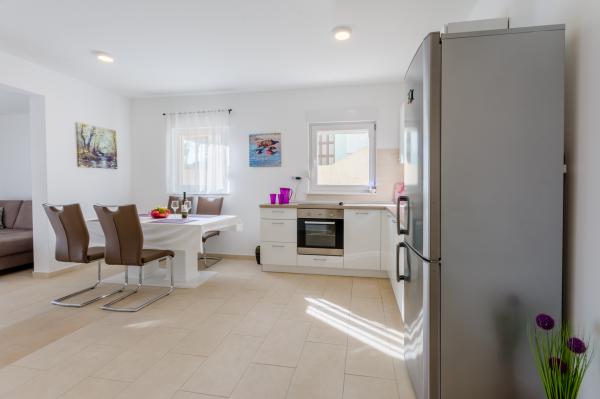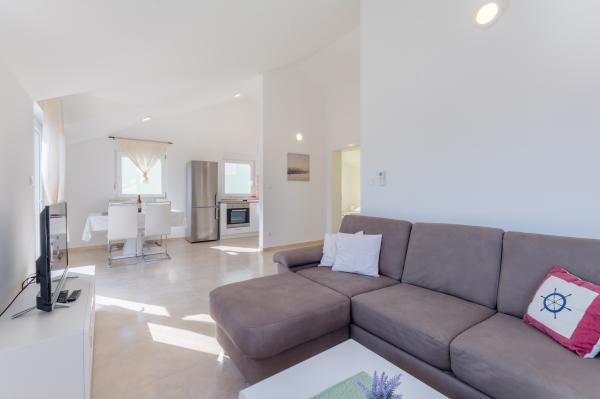 Świetna lokalizacja, świetne mieszkanie, wspaniały taras iw spokojnej okolicy. Blisko morza, gdzie nie ma tłumu, ale jest czyste morze. Pierwszy bar lub sklep oddalony jest o 3 km. Można odpocząć lekko lub aktywnie. Istnieje wiele ścieżek żwirowych do spacerów lub jazdy na rowerze. I koniecznie odwiedź tawernę Kapetanija Lozje na świetny stek. Polecamy.