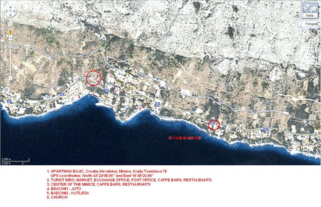 Apartamenty Bojić znajdują się w Mimice, 12 km od Omis w kierunku Makarskiej, na granicy z Marusici. Znajdują się 15m od głównej drogi i 500m od centrum. Dom składa się z trzech apartamentów, wszystkie apartamenty posiadają balkony z widokiem na morze, zapewniają przyjemny, bezpieczny i spokojny wypoczynek dla całej rodziny, z dala od centrum, z plażą bez wielu kąpiących się. Morze jest wyjątkowo czyste (podwodne źródła i prąd) do pływania i nurkowania. Bardzo dobrze mówimy po angielsku, w komunikacji posługujemy się czeskim, włoskim i niemieckim. Klimatyzacja, Wi-Fi, opłata klimatyczna i parking wliczone w cenę. Pomagamy gościom znaleźć potrzebne informacje, a po uzgodnieniu zorganizować dodatkowe zajęcia.
