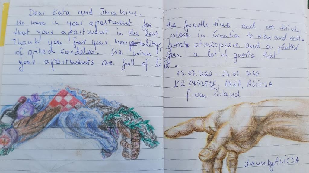Spędziliśmy w apartamencie 10 dni z dziećmi. To były wspaniałe wakacje, wszystkim się podobało. Dom położony jest w spokojnej okolicy, otoczony dużym ogrodem. Do plaży jest 10 minut na piechotę. Droga jest nieco stroma, ponieważ dom stoi na zboczu wzgórza, ale w zamian widok z tarasu rekompensuje wszystko. Są też wspaniałe wycieczki w kierunku starej wioski i góry. Również z piękną panoramą. Mieszkanie jest przytulne, czyste i dobrze wyposażone, posiada wszystko co zapewnia komfortowy pobyt. Nasi gospodarze są nieskończenie mili i pomocni, dziękujemy za niezapomniane wakacje!