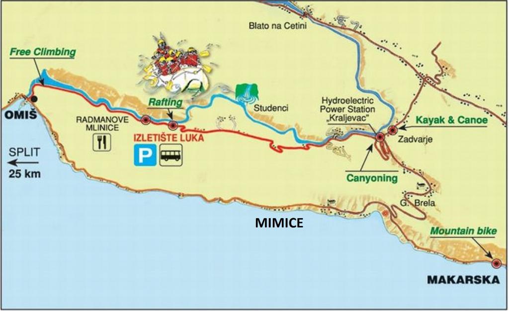 Opłata jest wliczone w cenę.W okolicach Mimic można znaleźć dodatkowe udogodnienia dla wszystkich pragnących aktywnego wypoczynku (tyrolka, rafting, canyoning, wspinaczka, nurkowanie, jednodniowy rejs statkiem na wyspę Brac).