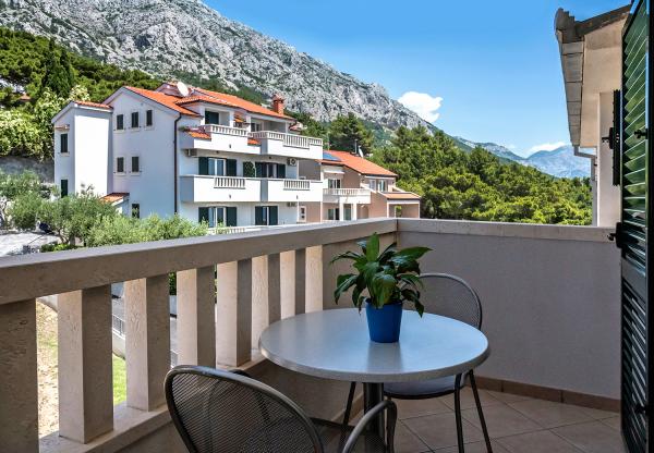Tu jest jak w raju ... Z jednej strony morze, z drugiej góry. W Polsce potrzeba na to minimum 800km, żeby być w górach i nad morzem, tu mamy to w kilku metrach. Gospodarze bardzo ale to bardzo mili i gościnni, pokoje czyściutkie, nic nie brakuje, łącznie z garnkami i patelniami itp. Moja żona, zazwyczaj bardzo wybredna i spostrzegawcza z uwagi na pracę w Sanepidzie niema zastrzeżeń i czuje się jak w raju to mówi samo za siebie. Generalnie polecam bardzo, po drodze było pełno "apartmani" ale co z tego jak tylko tu mamy góry i morze pod nosem, w innych apartamentach trzeba przebiegać przez ruchliwą ulicę. Jeszcze raz Dziękuję Blaženka. Hvala, Marek.