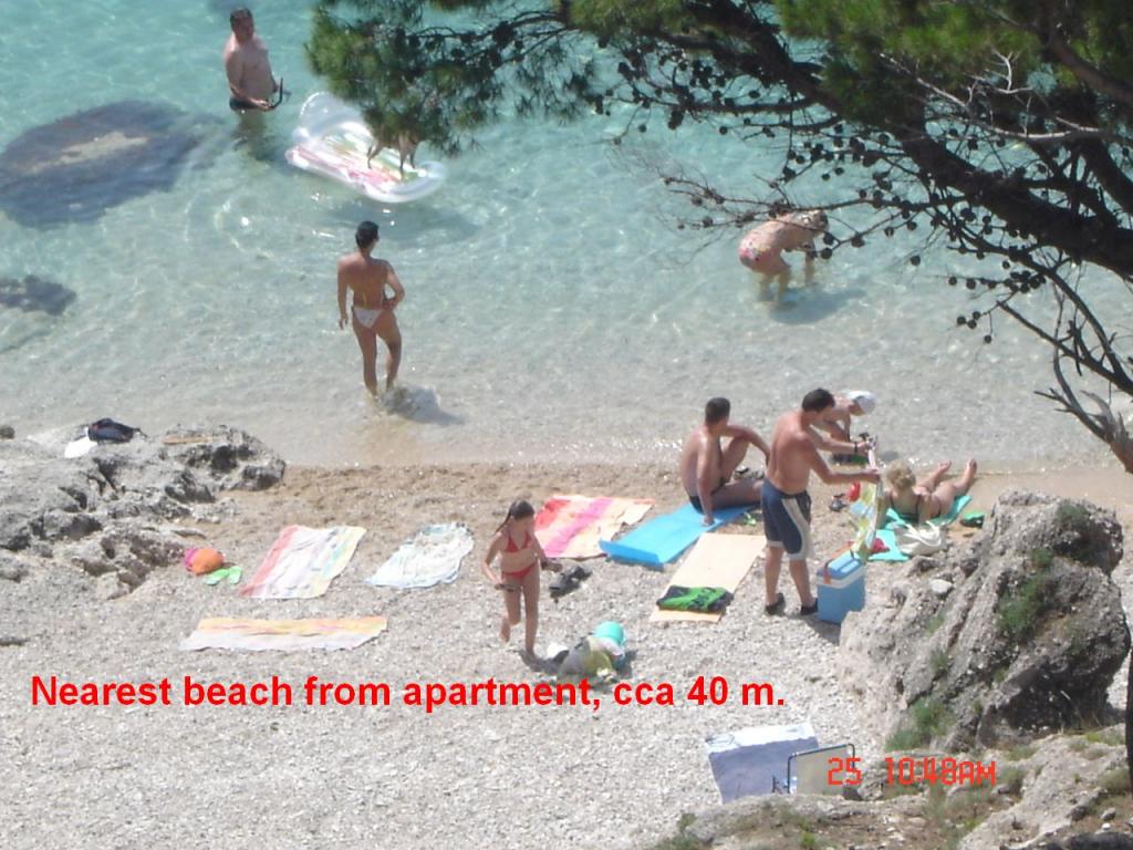 Piękny apartament, wystarczający dla czteroosobowej rodziny, duży przestronny taras z widokiem na morze. Kwatera czysta, w dobrym stanie. Plaża znajduje się w niewielkiej odległości od drogi - tuż po schodach. Morze jest przepiękne z możliwością spacerów na mniejsze, bardziej kameralne plaże wśród skał, a jednocześnie krótki spacer do baru na lody lub kawę. Kto lubi zgiełk miasta - w pobliżu znajdują się Omiš, Brela czy Baška Voda i inne... Tutaj panuje prawdziwa cisza i spokój w połączeniu z pięknym morzem i widokiem na góry. Idealne połączenie