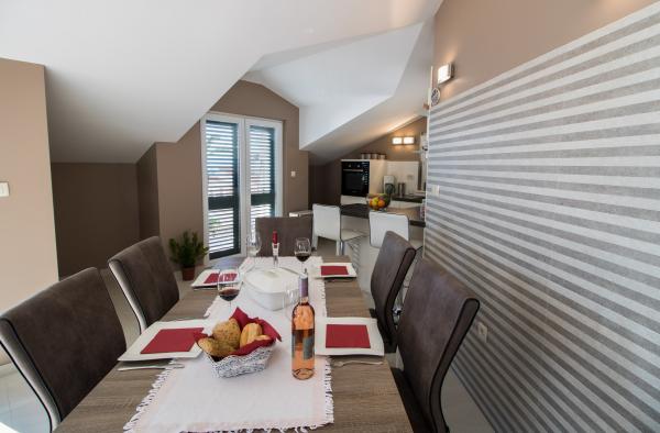 Pod koniec siódmego miesiąca mieszkaliśmy w apartamencie. To było dla nas piękne .. penthouse był czysty, nowocześnie wyposażony, .. mieliśmy taras z widokiem na morze. To było lekarstwo na duszę i oczy. Pani Mira jest taką miłą i życzliwą osobą i zawsze uśmiechniętą .. plaża jest blisko .. dla rodzin z dziećmi bardzo bezpieczne miejsce .. Z przyjemnością Ci polecimy i oczywiście chętnie tu wrócimy .. Dziękuję bardzo .. Pozdrowienia Edis