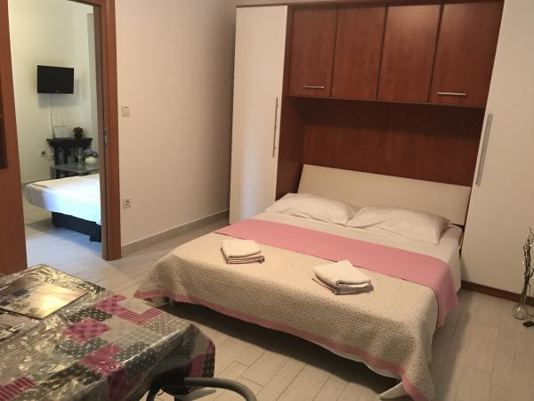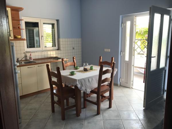 Wakacje nam był piękny, nieskazitelnie czysty i schludny i uczciwa cena. Gospodarze są bardzo słodkie i mili ludzie! Piękna żwirowa plaża idealna dla dzieci, czyste morze, kilka osób, jak nam pasują i mieszkań bardzo blizu.Iz widzieliśmy dzieci pływanie. Pewnego popołudnia widzieliśmy delfiny w oddali, dzieci były zachwyceni i oczywiście mnie!