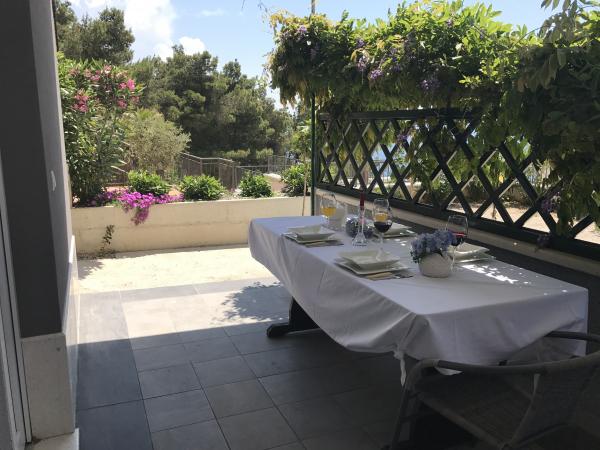 Świetne zakwaterowanie. Mieszkaliśmy w apartamencie z dwoma pokojami i dwoma łóżkami typu king-size, który ma małą kuchnię ze wszystkim, czego potrzebujesz do szybkiego przygotowania posiłków... Bezpłatny parking... Cudowni właściciele.. Zakwaterowanie jest w zasadzie na plaży i jest przyjazne dzieciom. To miłe, małe miejsce, ciche i idealne na wakacje z małymi dziećmi.. Jest kilka małych i kameralnych plaż, nie ma tłumów, nie ma głośnej muzyki, po prostu cisza i spokój... dużo naturalnego cienia.. W pobliżu znajduje się bar na plaży i restauracja.. Zdecydowanie polecam i również wrócę.