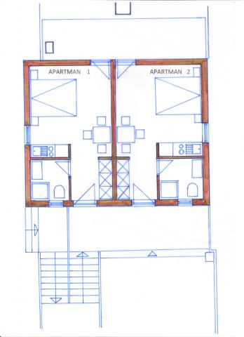 Nowoczesne apartamenty znajdują się na pierwszym piętrze domu znajduje się tuż przy morzu. Każdy apartament posiada osobne wejście. Wspólny taras oddzielone przegrodą. Obiekt otoczony jest lasami sosnowymi i gajami oliwnymi. To jest 5 minut spacerem do miasta i plaży przed budynkiem, a także miejsca do cumowania łodzi. Z obiektu jest parking.