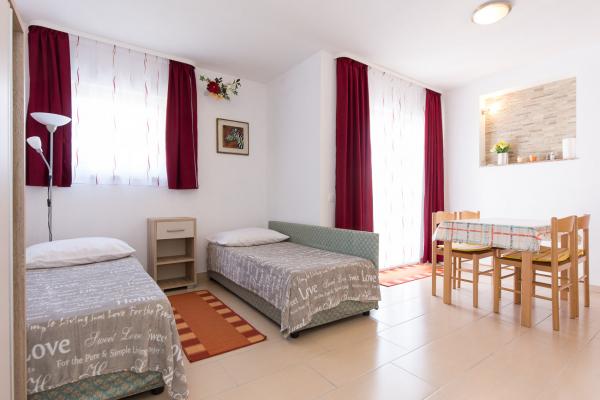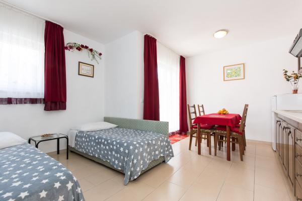 Dom rodzinny Apartamenty Margita oferuje swoim gościom dwa apartamenty typu studio, jeden dla 3 i drugi dla 4 osób oraz dwa apartamenty jednopokojowe każdy dla 4 osób. Dom położony jest w spokojnej okolicy Mošćenička Draga, zwanej Sveti Petar. Przed domem znajduje się parking, a odległość 600 m od centrum miasta, morza i plaży można dojść przyjemnym spacerkiem. Apartamenty zostały niedawno odnowione, w każdym znajduje się łóżko dla dwóch osób oraz jedno lub dwa łóżka dla jednej osoby. W każdym apartamencie dostępna jest telewizja satelitarna, bezpłatne WiFi oraz kuchnia wyposażona w niezbędny sprzęt. Apartamenty posiadają własne łazienki z prysznicami. Do mieszkania przynależy taras lub balkon, pozwalający na przyjemny wypoczynek na świeżym powietrzu. Życzymy miłego powitania!