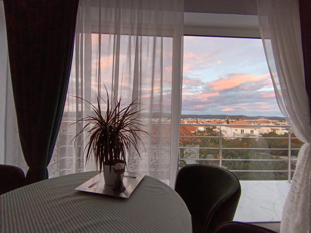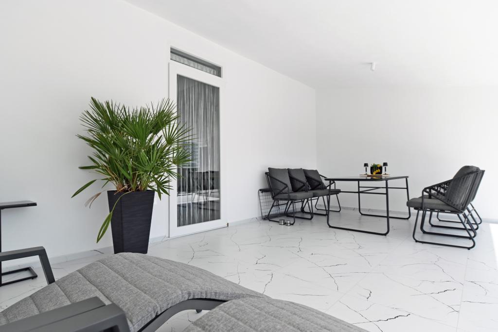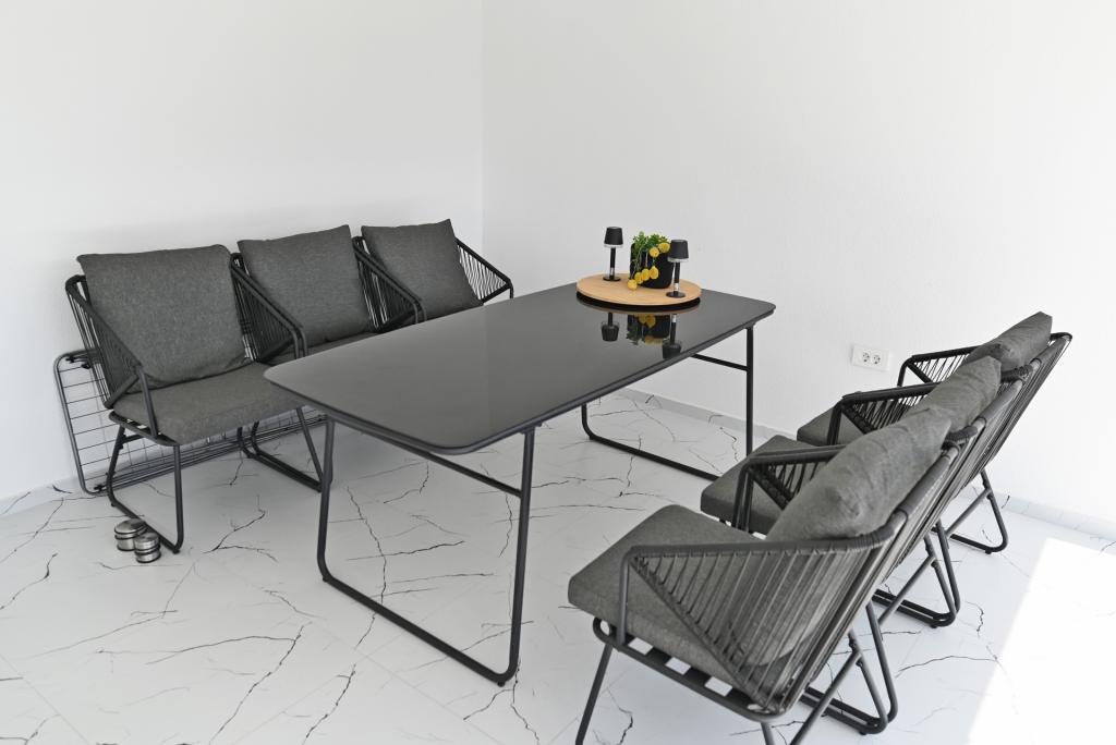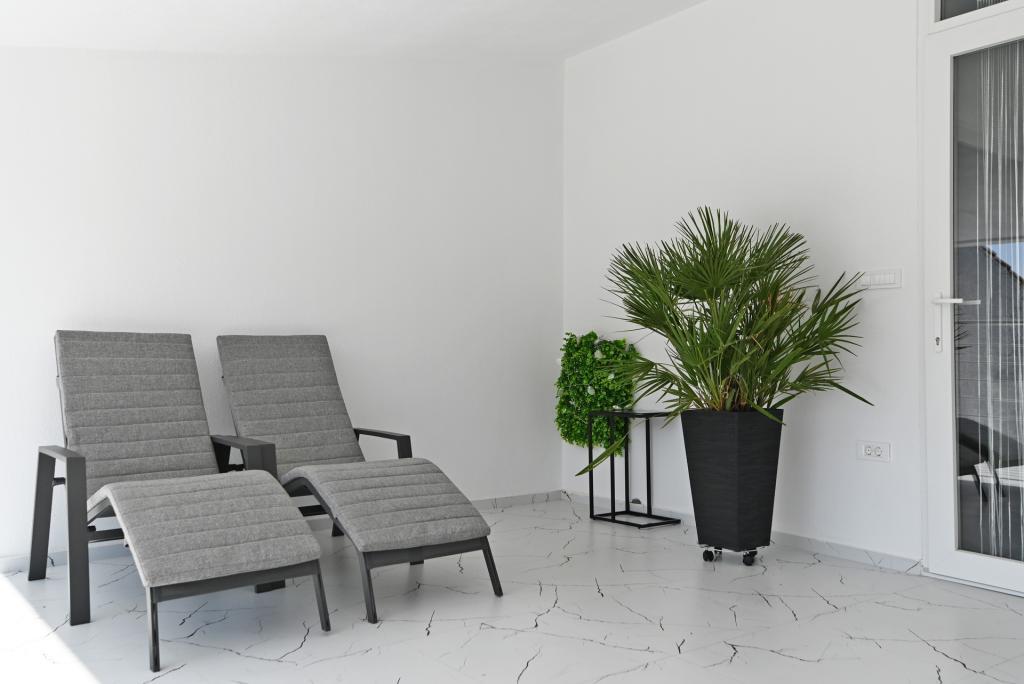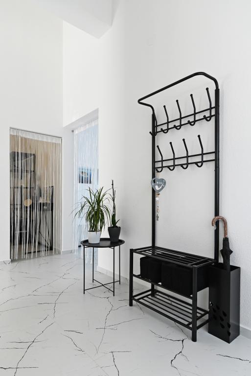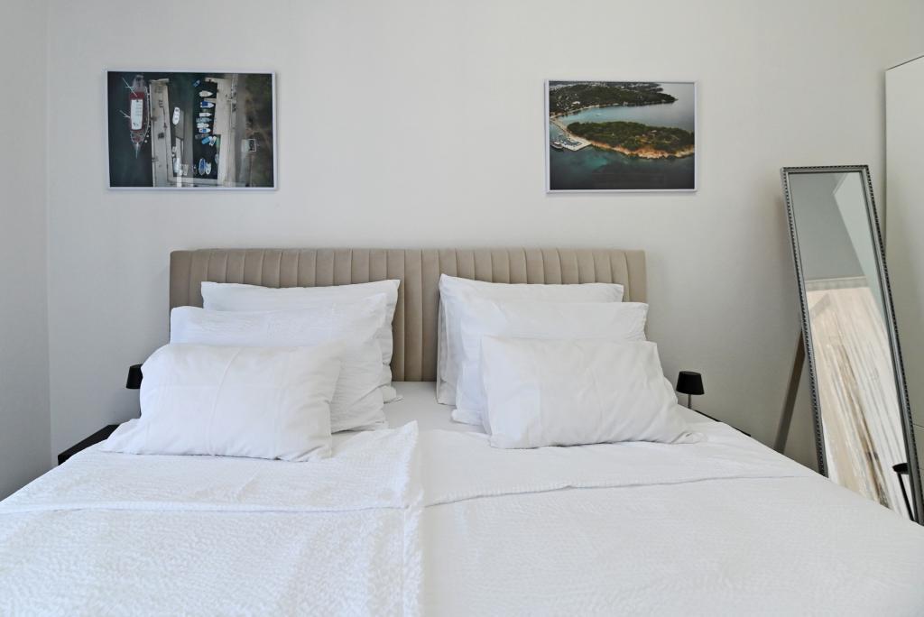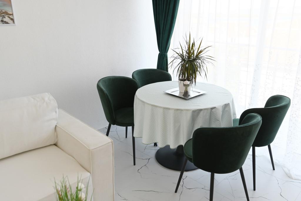Nowocześnie urządzony i nowocześnie wyposażony apartament o powierzchni 70 m² na pierwszym piętrze domu rodzinnego. Apartament posiada osobne wejście i widok na morze z małego tarasu, który łączy się z salonem dużą, przeszkloną ścianą, rozciągającą się niemal na całą jego długość. Z apartamentu można podziwiać wyspy Murter i morze, panoramę miasta, a w oddali Velebit, Betinę i morze wokół Betiny, popijając poranną kawę w swojej oazie spokoju, ponieważ całe piętro jest wyłącznie do Państwa dyspozycji. Z jadalni mają Państwo dostęp do dużego, 30-metrowego tarasu, na którym przy dużym, szklanym stole ogrodowym mogą Państwo delektować się śniadaniem, obiadem lub kolacją. Oferujemy przenośny grill elektryczny, dzięki któremu mogą Państwo przyrządzać na tarasie dania, na przykład owoce morza, które można codziennie kupić na kutrze lub na targu rybnym w centrum Murter. Łazienka jest duża, z wejściem od wejścia. Cały apartament ma wysokość galerii. Bezpłatny parking znajduje się przed domem. Dostępny jest również bezpłatny dostęp do Wi-Fi.