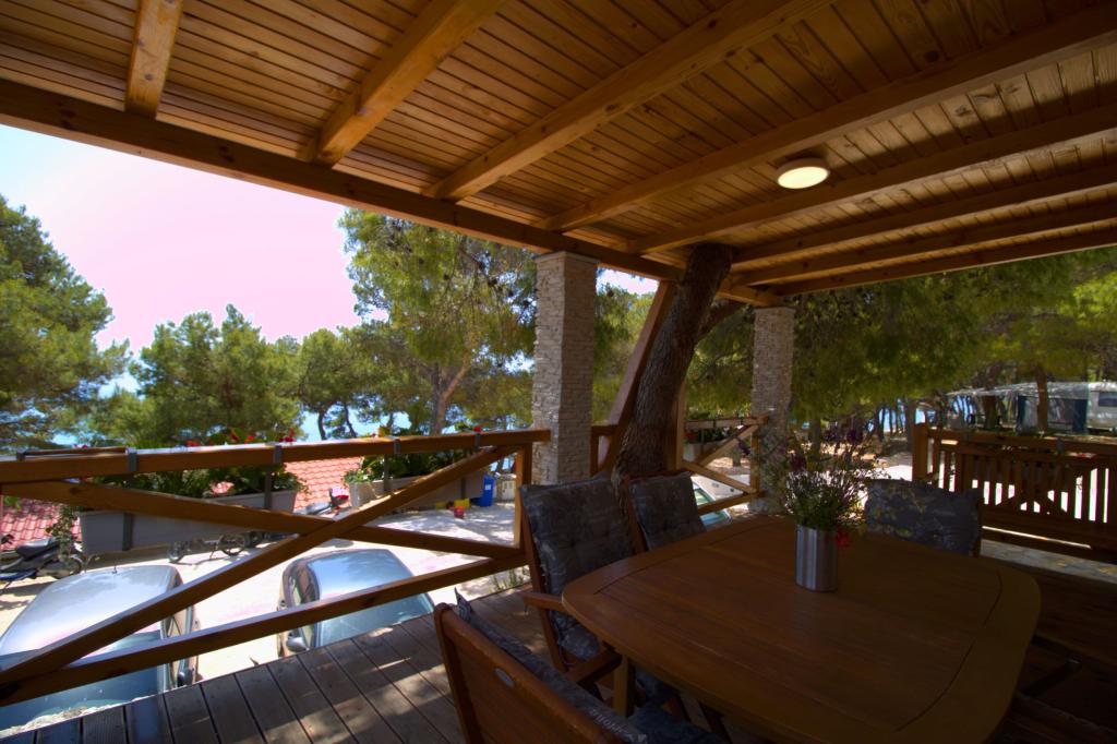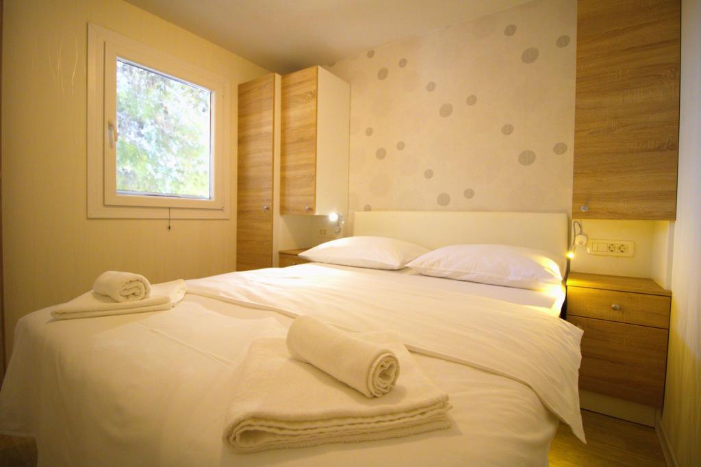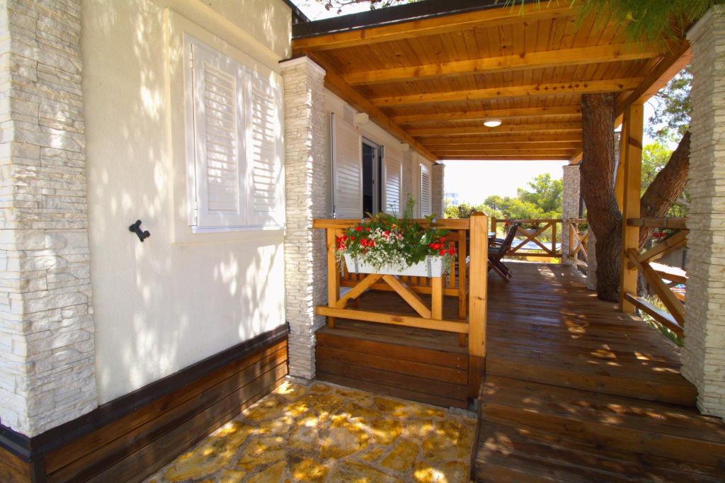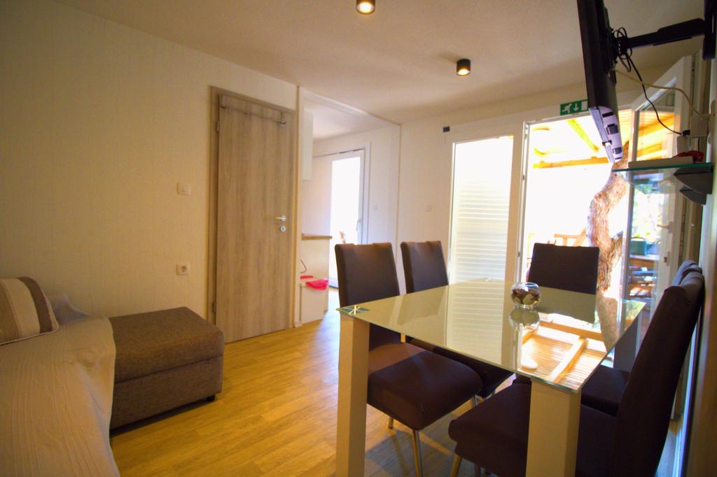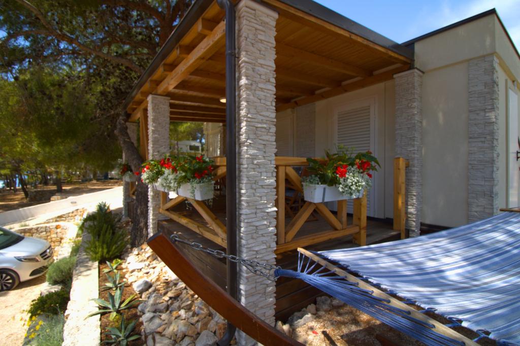 Przyczepa stacjonarna z dwiema sypialniami znajduje się w pobliżu piaszczystej plaży Slanica, zaledwie 50 metrów od morza. Domek mobilny jest wyposażony w kuchnię, lodówkę, zmywarkę, bezprzewodowy internet. W sypialniach mogą spać 4 osoby dorosłe, w salonie znajduje się kanapa, która może służyć jako dodatkowe łóżko do spania. Przed apartamentem znajduje się piękny taras z widokiem na morze w naturalnym cieniu. Parking na jeden samochód znajduje się przed domem i jest bezpłatny.