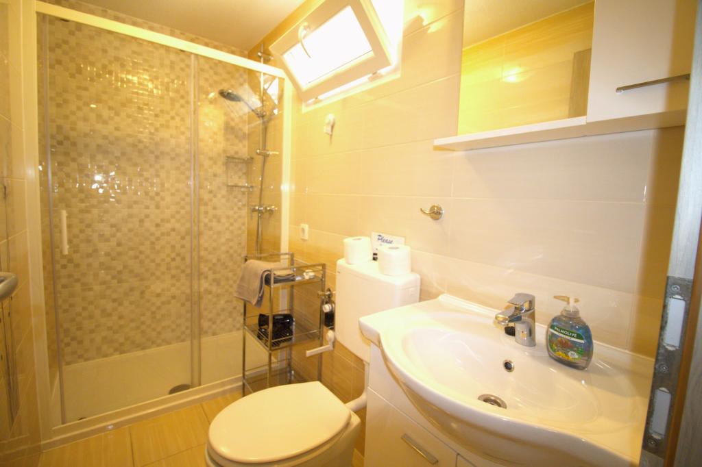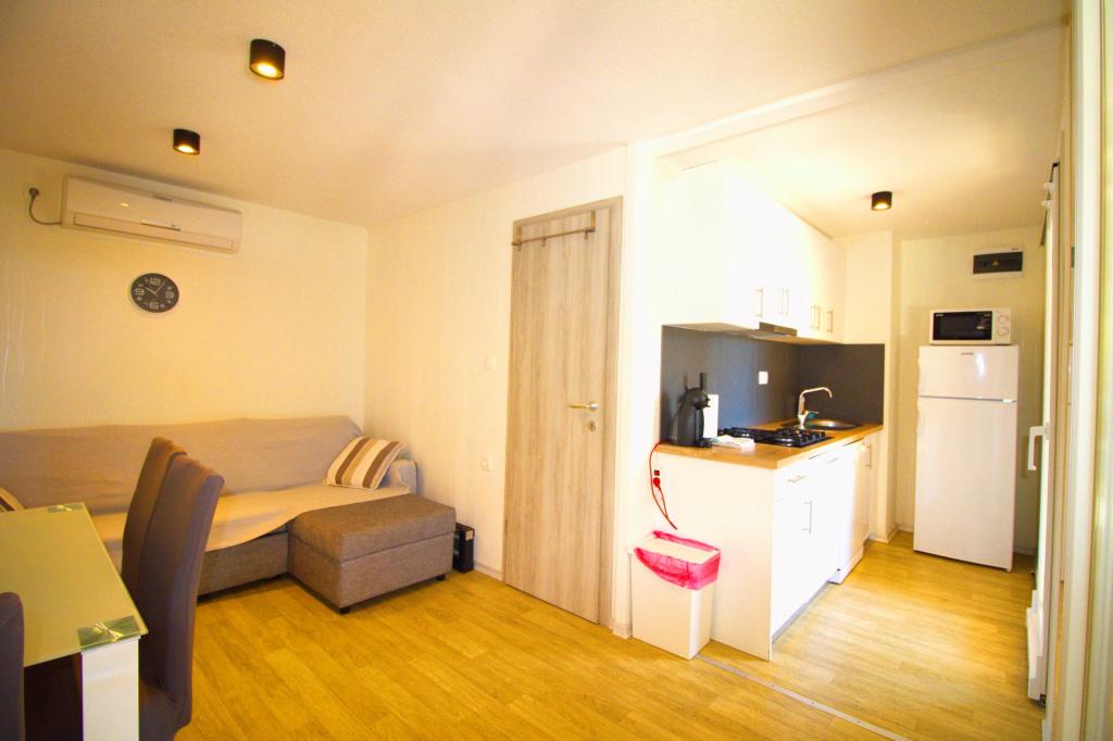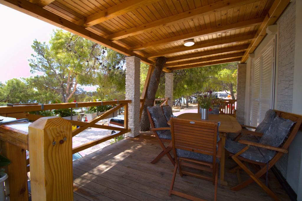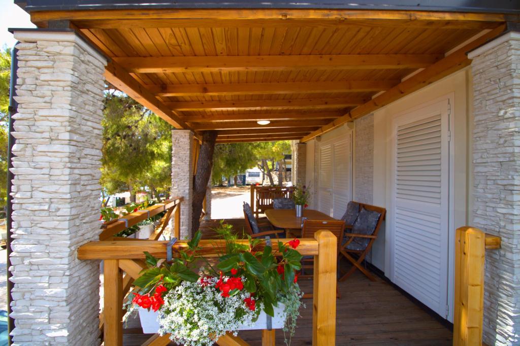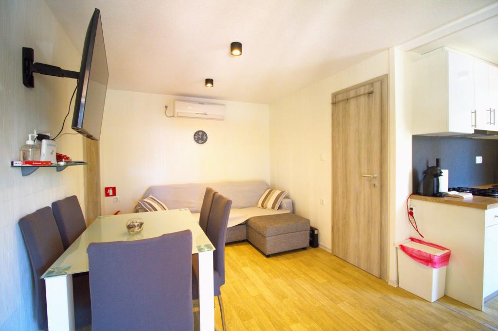 Przyczepa stacjonarna z dwiema sypialniami znajduje się w pobliżu piaszczystej plaży Slanica, zaledwie 50 metrów od morza. Domek mobilny jest wyposażony w kuchnię, lodówkę, zmywarkę, bezprzewodowy internet. W sypialniach mogą spać 4 osoby dorosłe, w salonie znajduje się kanapa, która może służyć jako dodatkowe łóżko do spania. Przed apartamentem znajduje się piękny taras z widokiem na morze w naturalnym cieniu. Parking na jeden samochód znajduje się przed domem i jest bezpłatny.