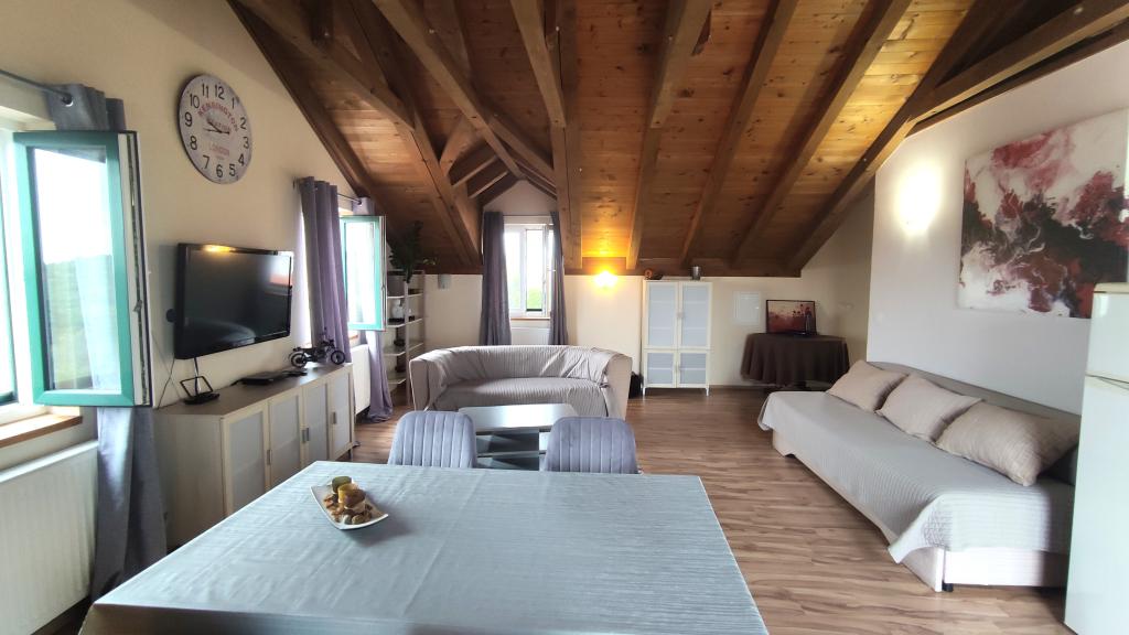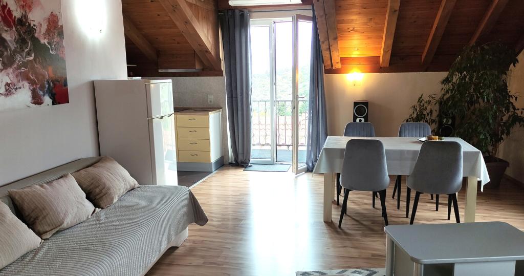Apartament Panorama Natal położony jest w spokojnej, starej części Murter. Mieszkanie ma 65 m2. Duży salon/kuchnia, sypialnia, toaleta/prysznic, balkon, klimatyzacja. Z balkonu roztacza się piękny panoramiczny widok na Kornati i centrum Murter. Parking dla Twojego samochodu około 50 m zadaszony/Nastrsnica. Znajdujemy się 500 m od plaży Cigrada i 1800 m od centrum.