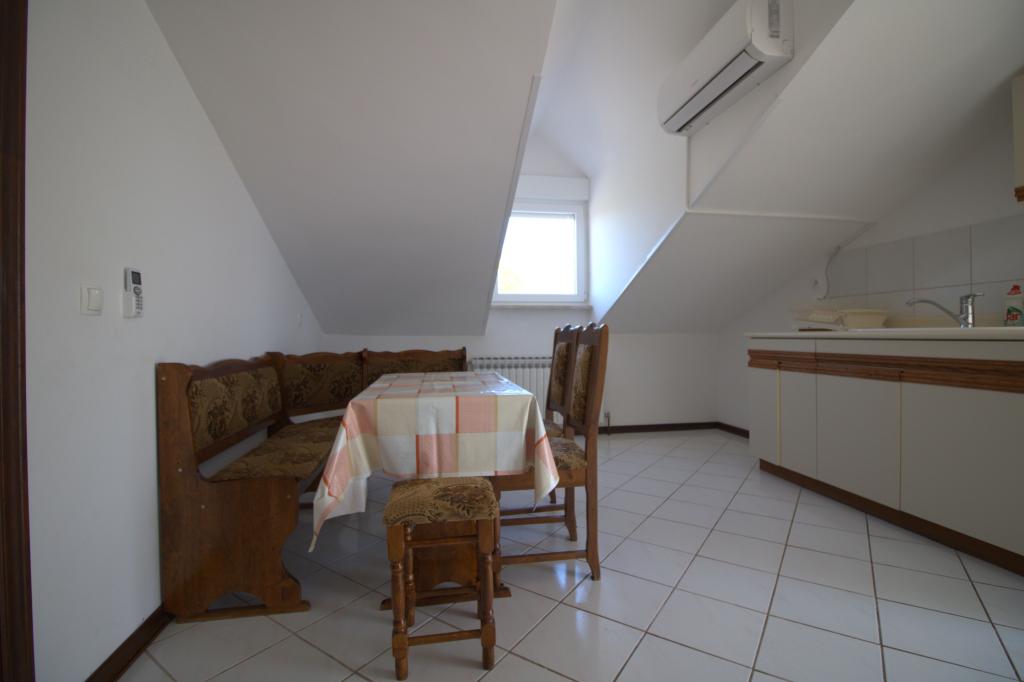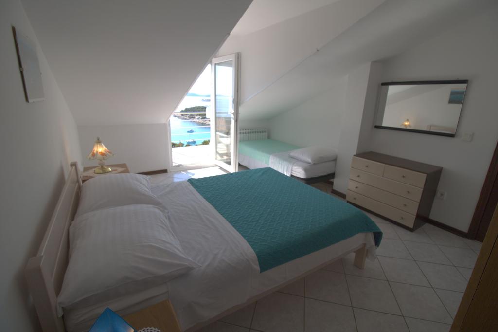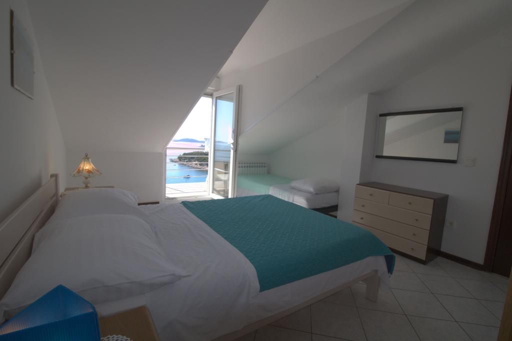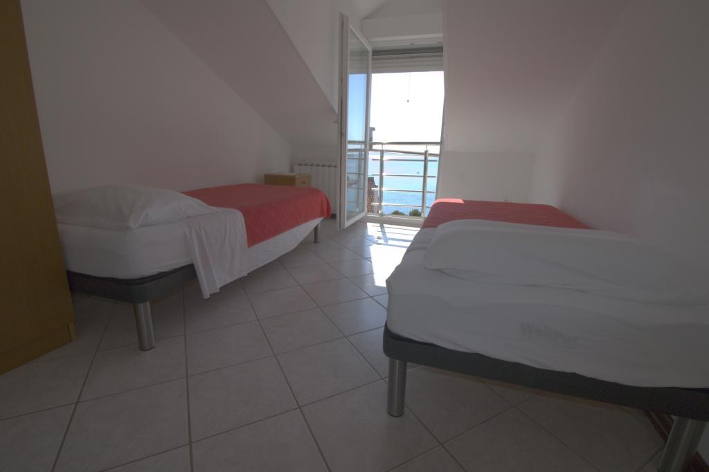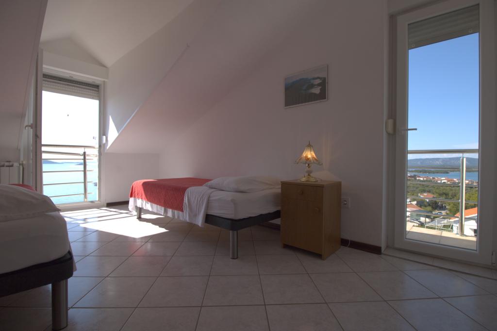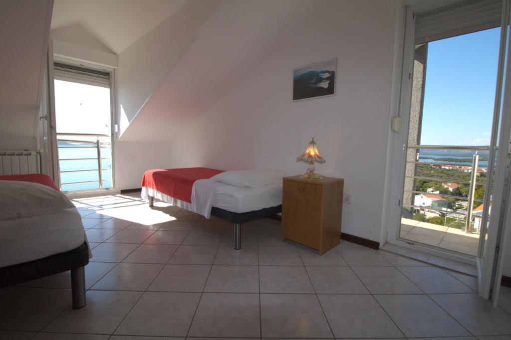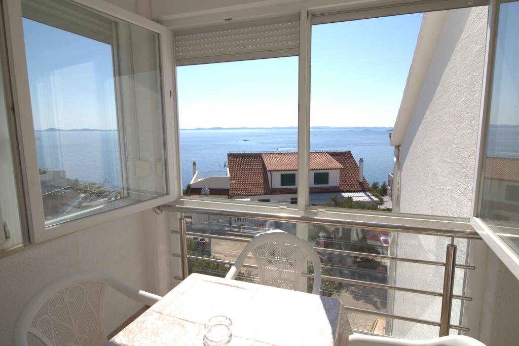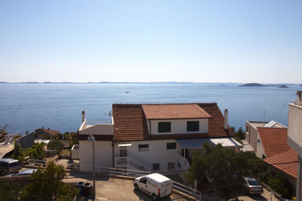 Mieszkanie z pięknym widokiem na morze znajduje się w doskonałej lokalizacji zaledwie 300 metrów od morza. Mieszkanie ma powierzchnię 75 m2. Posiada dwie sypialnie, w których może spać 5 osób dorosłych. Posiada salon. Posiada dodatkowe łóżko dla jednej osoby. Posiada łazienkę z prysznicem. Powierzchnia balkonu/tarasu wynosi 12 m2. Mieszkanie znajduje się na drugim piętrze domu. Mieszkanie wyposażone jest w telewizor, odbiornik satelitarny, piekarnik. Parking jest zapewniony i wliczony w cenę. Można korzystać z grilla na świeżym powietrzu. Mieszkanie znajduje się około 1000 m od centrum miasta i 300 m od morza lub pierwszej plaży w Murter. Mieszkanie ma piękny widok na morze, piaszczystą zatokę Slanica i wyspy Kornati.