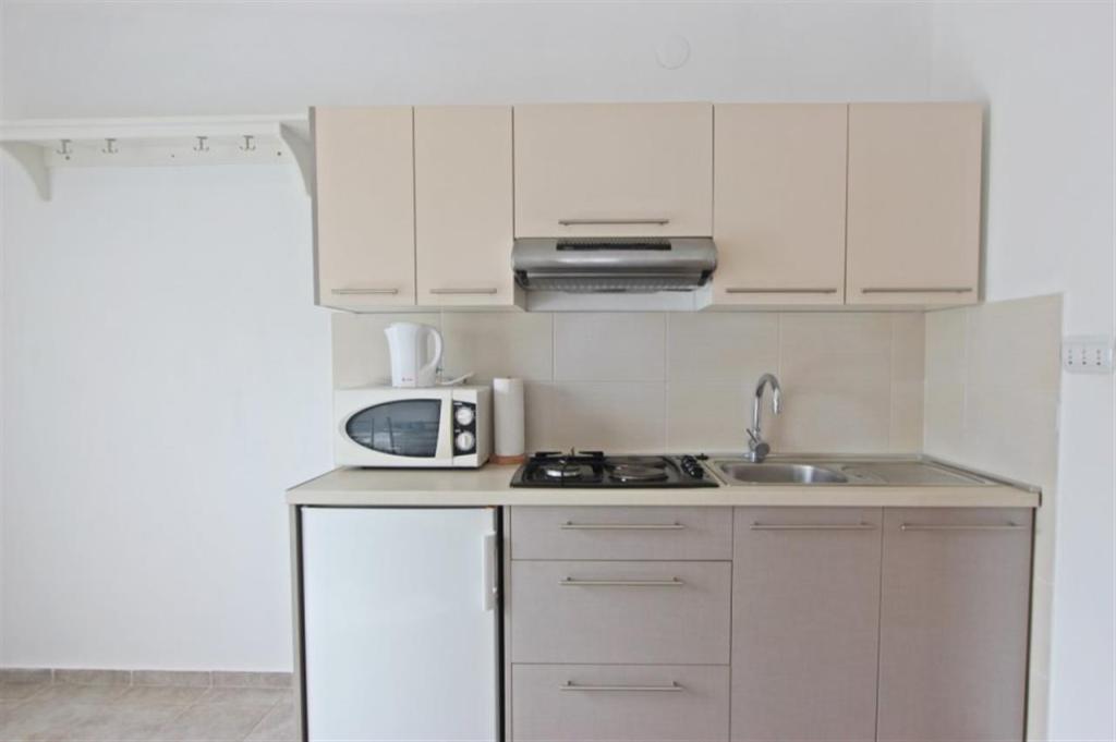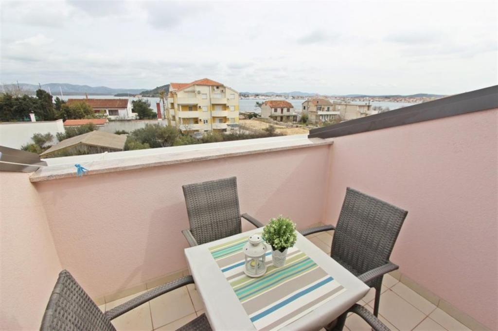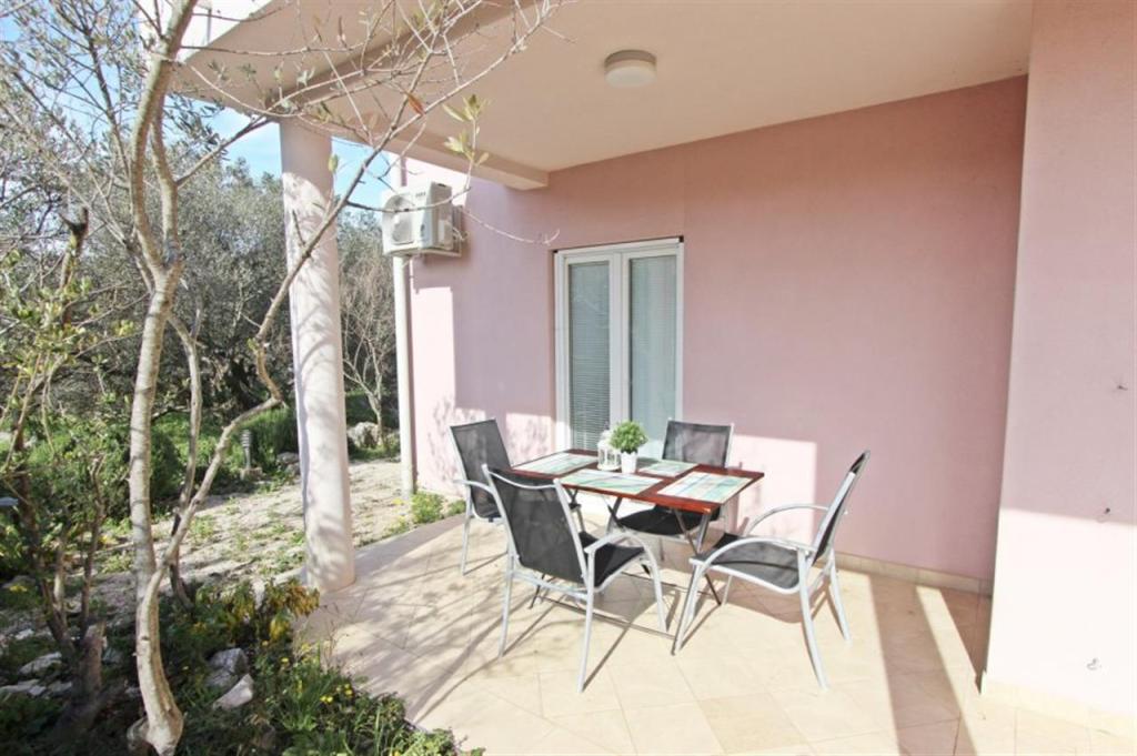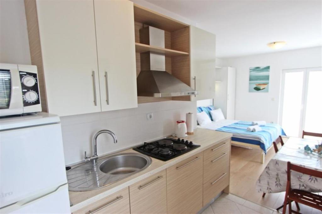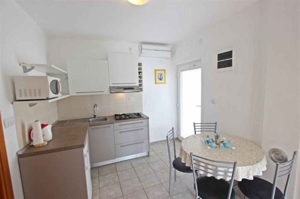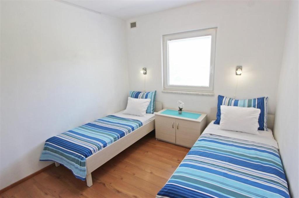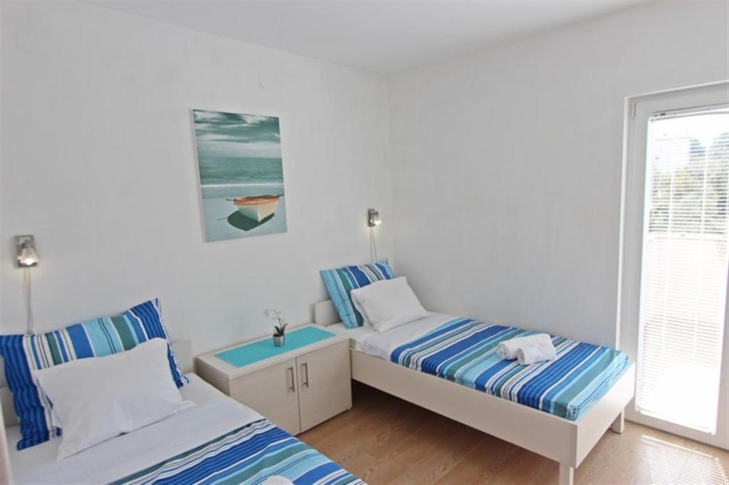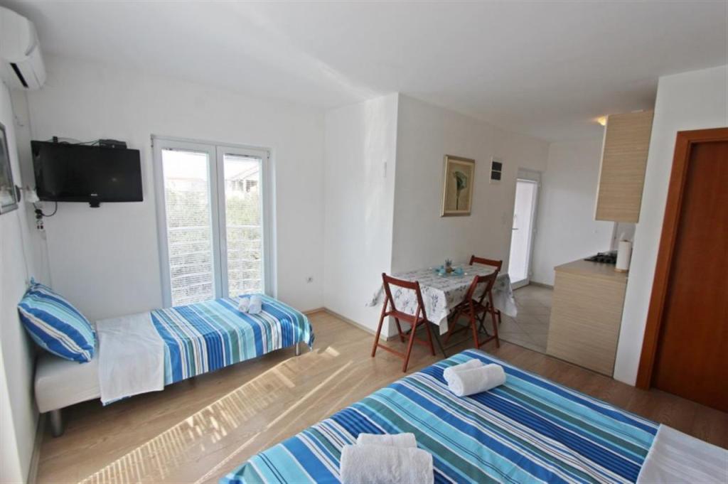 Apartamenty czteroosobowe 2 + 2 lub apartamenty typu studio 2 + 1. Składają się z sypialni (jedno łóżko małżeńskie) i pokoju z dwoma pojedynczymi łóżkami (wymiary 200x90) lub sypialni i łóżka w salonie, natomiast apartamenty typu studio składają się z łoża małżeńskiego z dostawką, kuchni, łazienki i dużego tarasu (15m2 / 18m2). Również na parterze znajduje się pomieszczenie z pralką, z której goście mogą korzystać. Apartamenty wyposażone są w TV i klimatyzację, wi-fi, mikrofalówkę i lodówkę z zamrażarką. Przed apartamentem mamy grill na świeżym powietrzu, z którego goście mogą korzystać w dowolnym momencie. Parking jest zapewniony i znajduje się na podwórku. Odległość do pierwszej plaży i sklepów wynosi 250 m, a do centrum 1 km