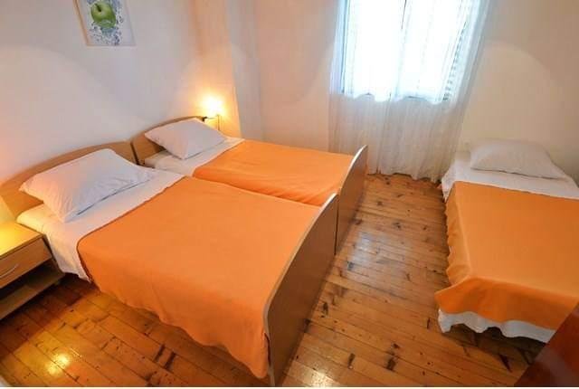 Oferujemy zakwaterowanie w 2 apartamentach (2 1, balkon z widokiem na morze; 4 1, dwa duże balkony) i wolnostojącym bungalowie (4, taras w ogrodzie). Apartamenty wyposażone są w klimatyzację, telewizję satelitarną, Wi-Fi. Parking i grill z tarasem w ogrodzie są dostępne. Są one podzielone na 3 gwiazdki, położone w spokojnej okolicy, 200 m od nowo wyremontowanej plaży, 500 m od centrum.