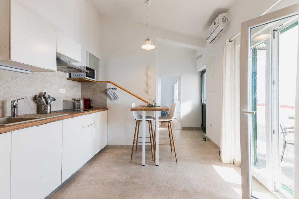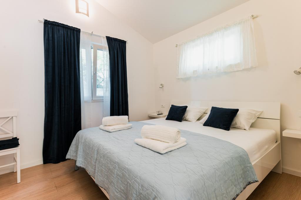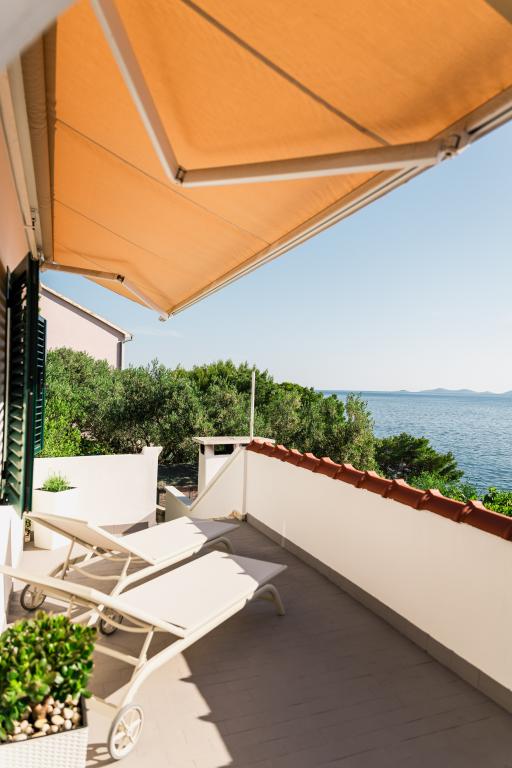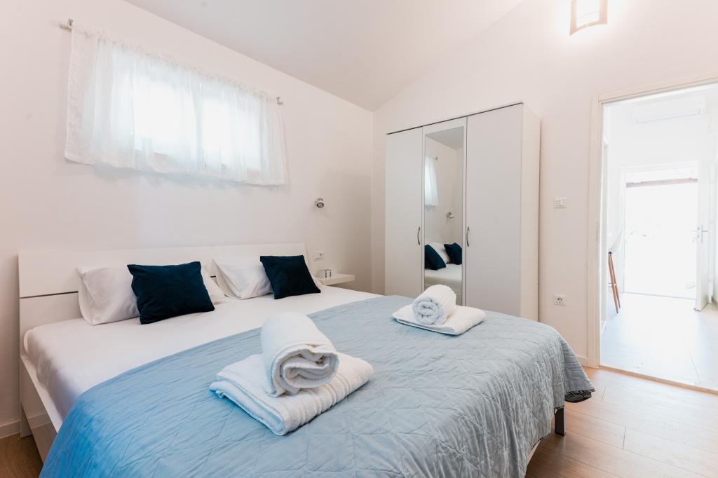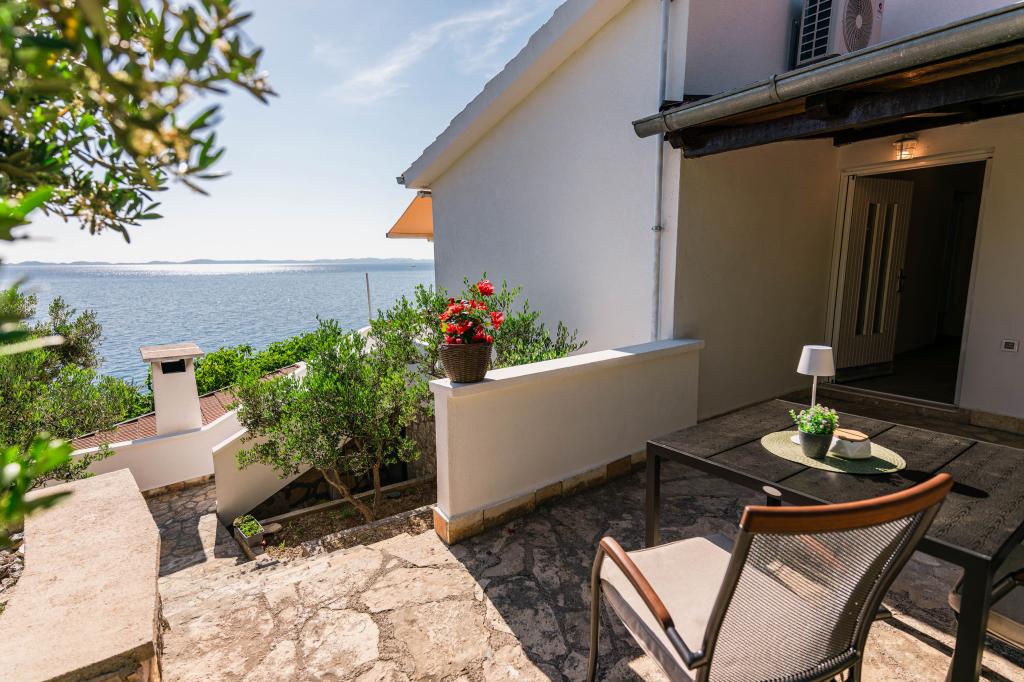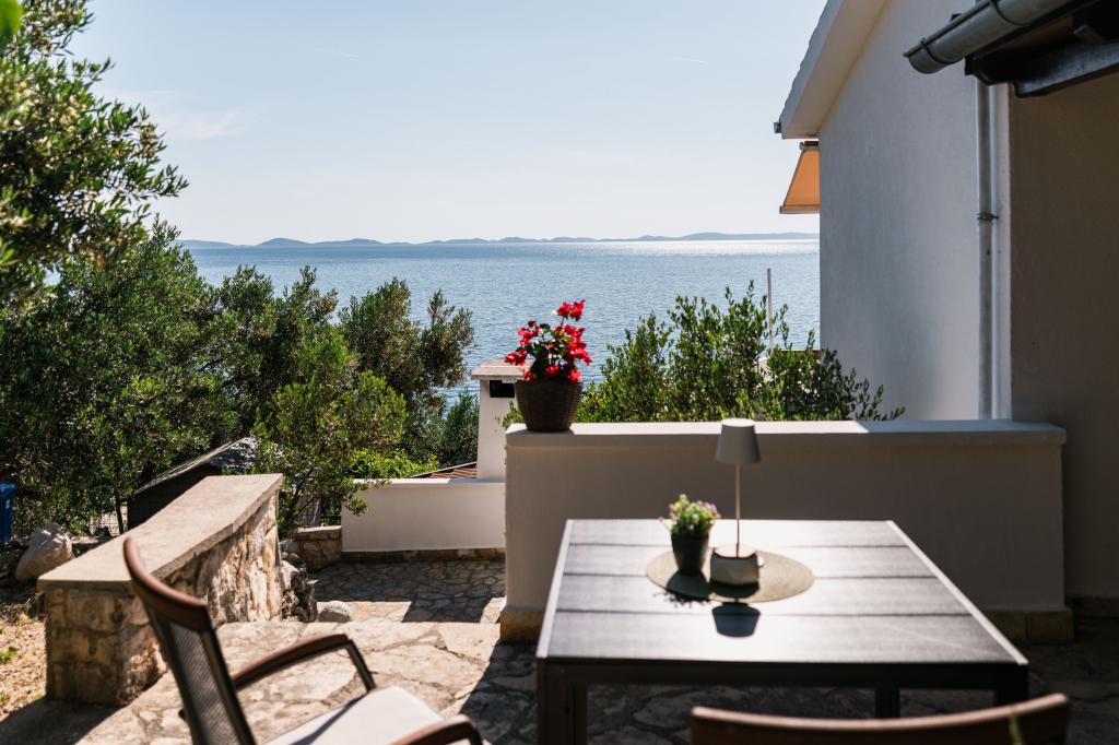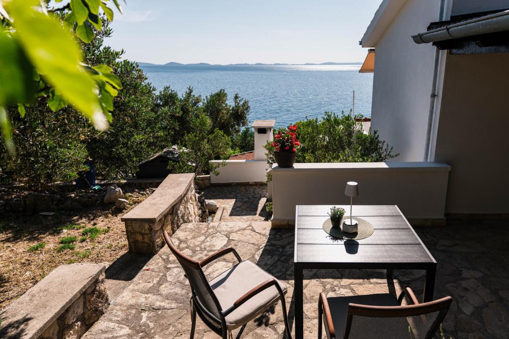 Oferujemy dwa nowocześnie urządzone apartamenty w świetnej lokalizacji, zaledwie 30 metrów od morza. Apartamenty położone są w spokojnej okolicy Murteru, idealnej na wakacje. Bezpłatny parking dla gości apartamentów znajduje się tuż przed budynkiem. Goście mają dostęp do zewnętrznego prysznica i leżaków. Plaża Čigrađa oddalona jest od obiektu o 5 minut spacerem, a plaża Slanica – o 15 minut spacerem. Z tarasów obu apartamentów roztacza się piękny widok na morze. Apartamenty są w pełni wyposażone, co gwarantuje przyjemny pobyt.
