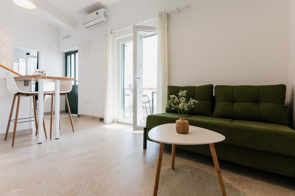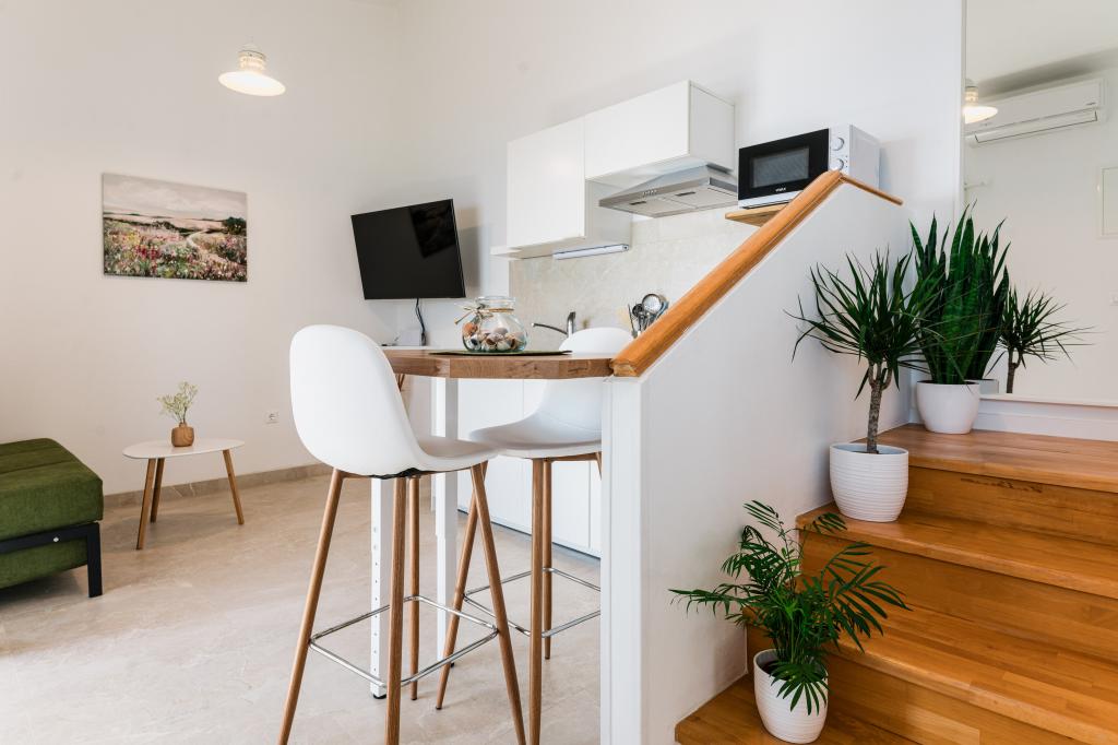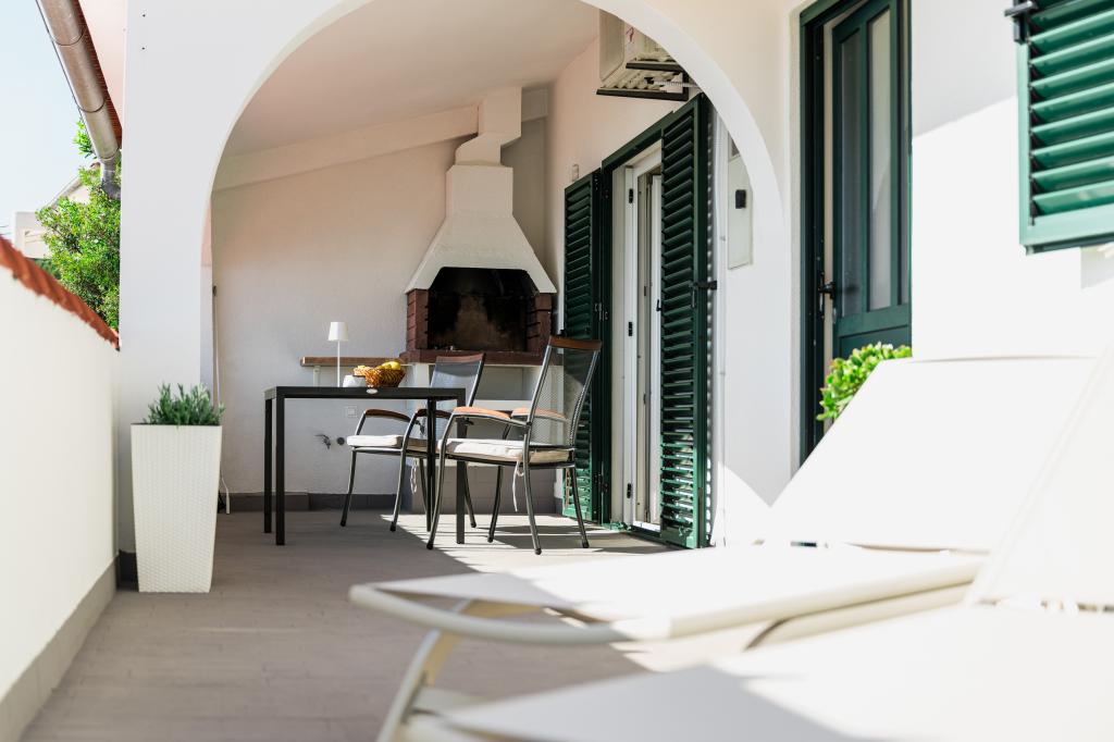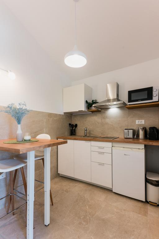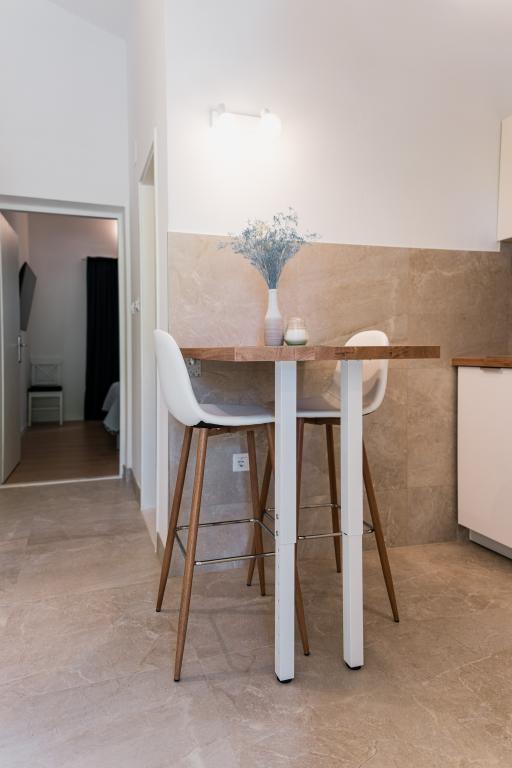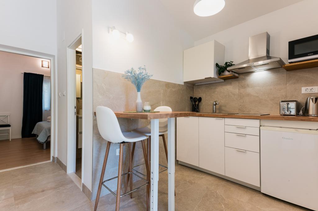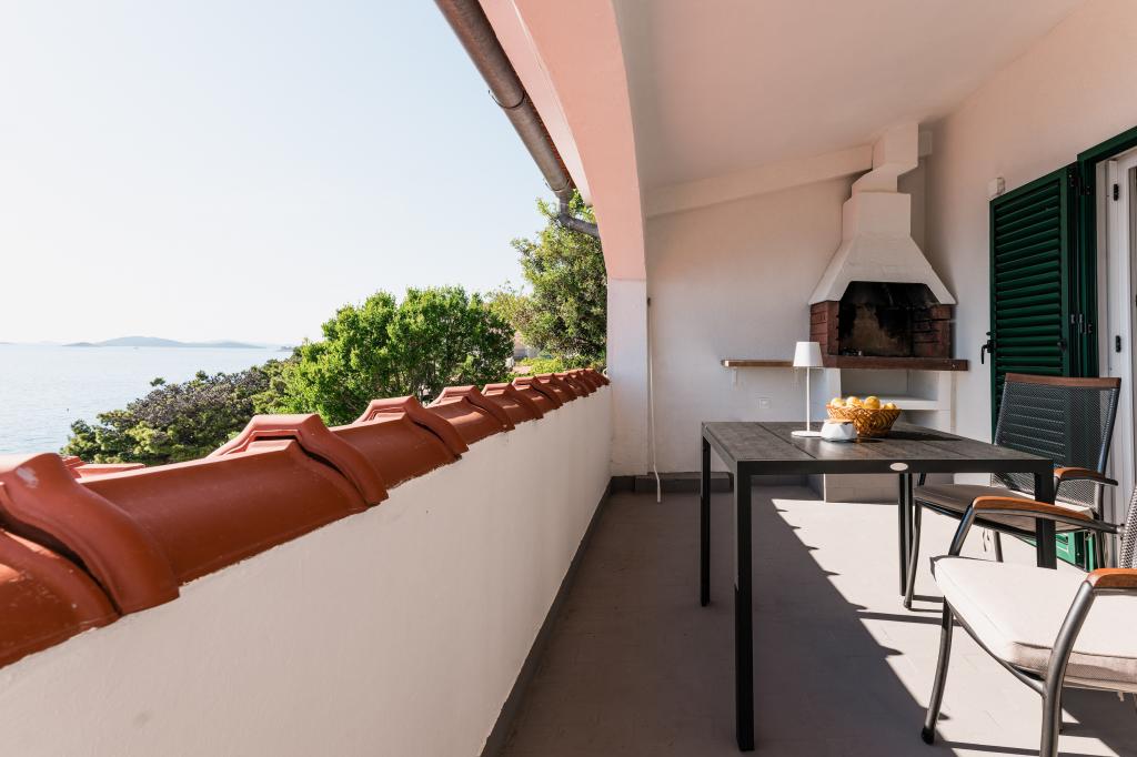 Oferujemy dwa nowocześnie urządzone apartamenty w świetnej lokalizacji, zaledwie 30 metrów od morza. Apartamenty położone są w spokojnej okolicy Murteru, idealnej na wakacje. Bezpłatny parking dla gości apartamentów znajduje się tuż przed budynkiem. Goście mają dostęp do zewnętrznego prysznica i leżaków. Plaża Čigrađa oddalona jest od obiektu o 5 minut spacerem, a plaża Slanica – o 15 minut spacerem. Z tarasów obu apartamentów roztacza się piękny widok na morze. Apartamenty są w pełni wyposażone, co gwarantuje przyjemny pobyt.