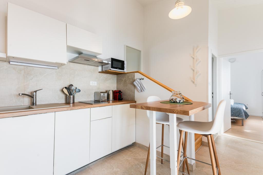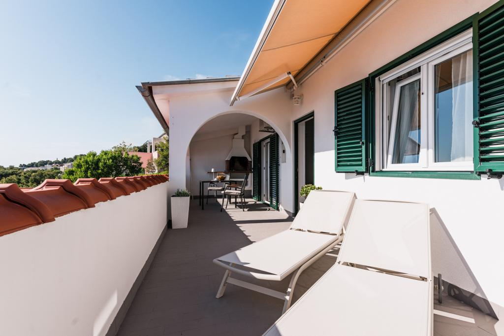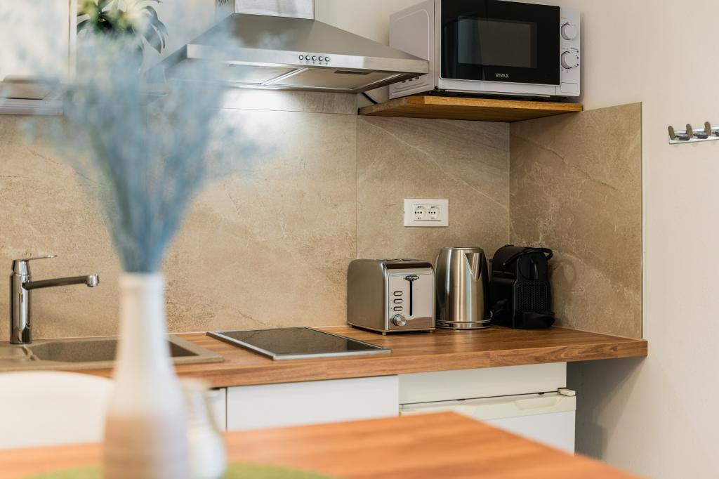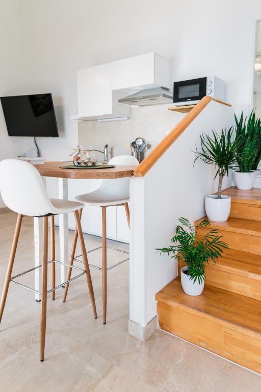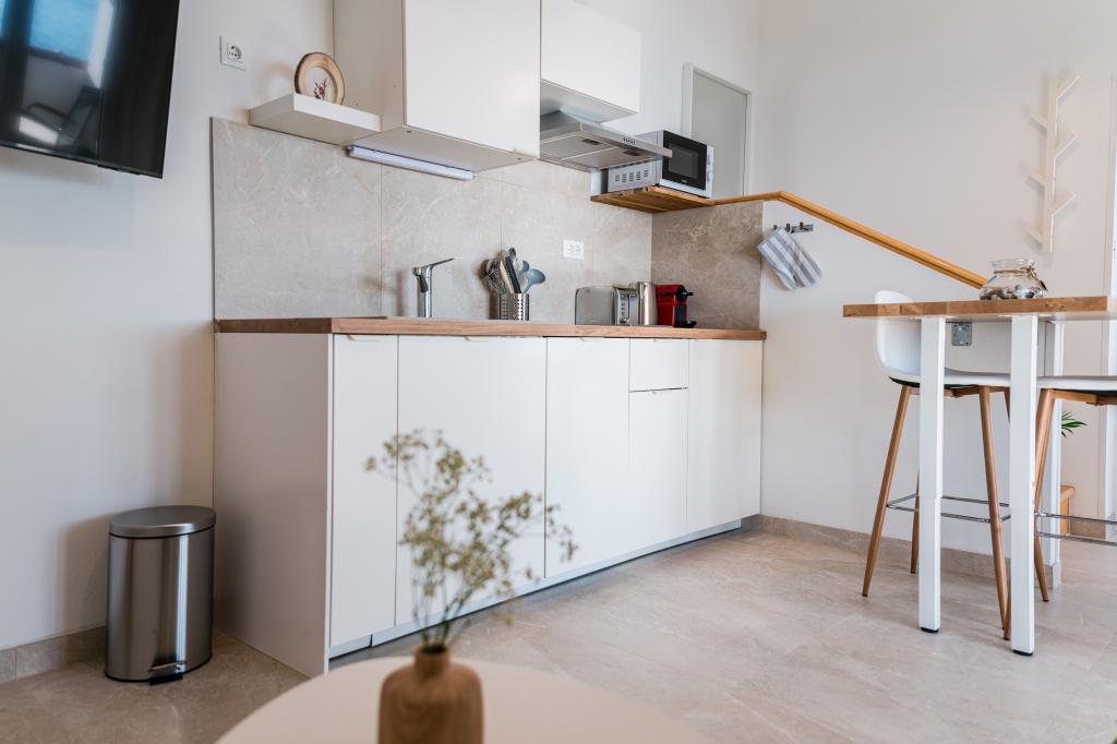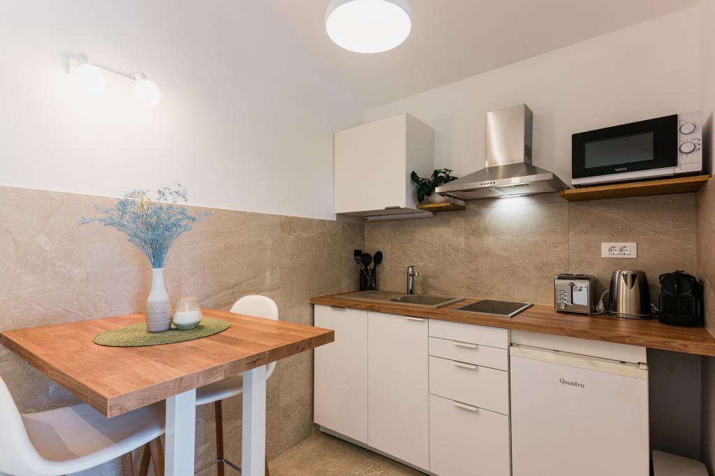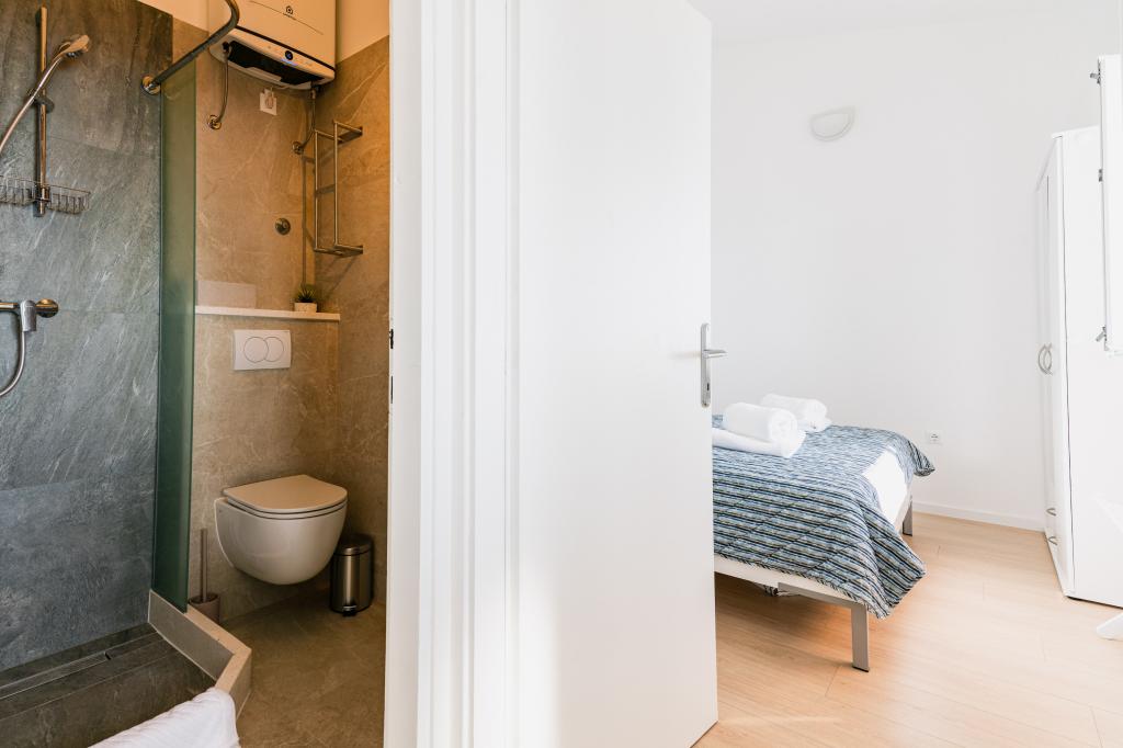 Oferujemy dwa nowocześnie urządzone apartamenty w świetnej lokalizacji, zaledwie 30 metrów od morza. Apartamenty położone są w spokojnej okolicy Murteru, idealnej na wakacje. Bezpłatny parking dla gości apartamentów znajduje się tuż przed budynkiem. Goście mają dostęp do zewnętrznego prysznica i leżaków. Plaża Čigrađa oddalona jest od obiektu o 5 minut spacerem, a plaża Slanica – o 15 minut spacerem. Z tarasów obu apartamentów roztacza się piękny widok na morze. Apartamenty są w pełni wyposażone, co gwarantuje przyjemny pobyt.