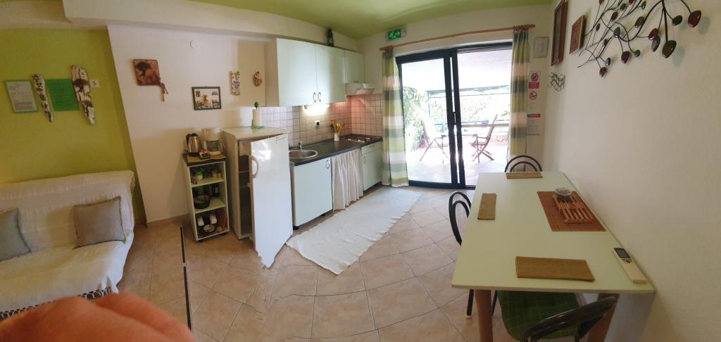 Gospodyni powita Cię o każdej porze przyjazdu. Przed budynkiem będzie na Państwa czekać miejsce parkingowe, gdyż na każdą kwaterę przypada jedno miejsce. Powitalny drink z przekąskami pomoże Państwu zrelaksować się po podróży. Korzystanie z grilla zewnętrznego w ogrodzie jest bezpłatne. W przypadku konieczności wyprania towaru gospodyni przekaże swoją pralkę. Kuchnia wyposażona jest we wszystkie niezbędne rzeczy, ale jeśli czegoś potrzebujesz, jeśli gospodarze to mają, oczywiście Ci to dadzą. Papier toaletowy i suszarka do włosów są wliczone w cenę. Na powitanie otrzymasz 2 ręczniki na osobę na 7 dni. Na plażę prosimy zabrać ze sobą własny. Pościel i ręczniki zmieniane są co 7 dni. Obiekt zapewnia także parasole plażowe. W porozumieniu z gospodarzami istnieje możliwość rejsu żaglówką z doświadczonym sternikiem (35 lat doświadczenia w żeglowaniu po Morzu Adriatyckim i Śródziemnym oraz oceanach). Przyjemne żeglowanie po wodach Murteru przy dobrym jedzeniu i napojach to świetna odskocznia od plażowania.