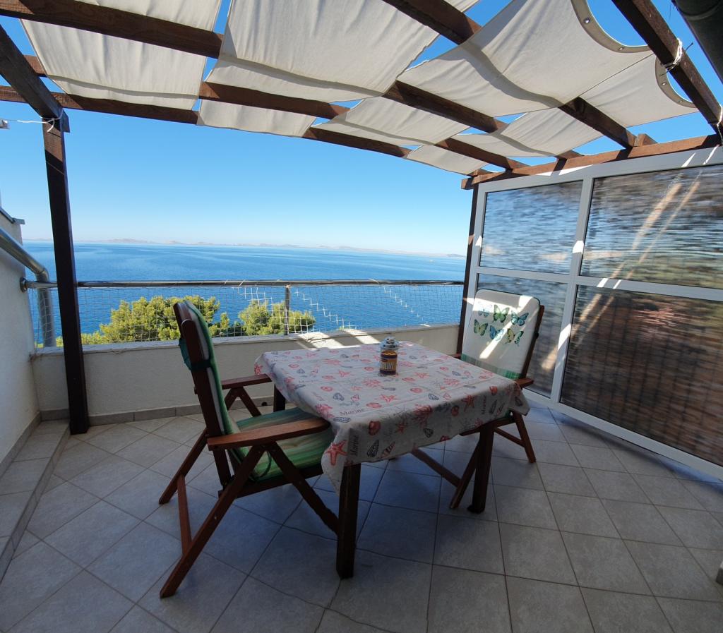Wyposażone apartamenty „Da-Du” znajdują się w najpiękniejszej południowej części wyspy Murter. Z tarasów roztacza się widok na morze i Park Narodowy Kornati. Tarasy pomiędzy apartamentami są oddzielne. Nieruchomość znajduje się przy cichej ulicy z ogrodem pełnym kwiatów i zieleni, w pierwszym rzędzie do morza. 2 minuty od apartamentu znajduje się kamienista plaża dla gości, którzy chcą spokojniej się opalać, a dla tych, którzy chcą bawić się na piasku, 5 minut drogi znajduje się słynna plaża Slanica, na której znajdują się restauracje, kawiarnie, sport i rozrywka dla dzieci . W stronę centrum najlepiej wybrać się spokojnym, 15-minutowym spacerem. Jesteśmy w idealnej lokalizacji dla rowerzystów, ponieważ nie ma dużych podjazdów. Z niezwykłą starannością przeprowadzamy środki dezynfekcji, abyście Państwo i Wasza rodzina czuli się bezpiecznie.