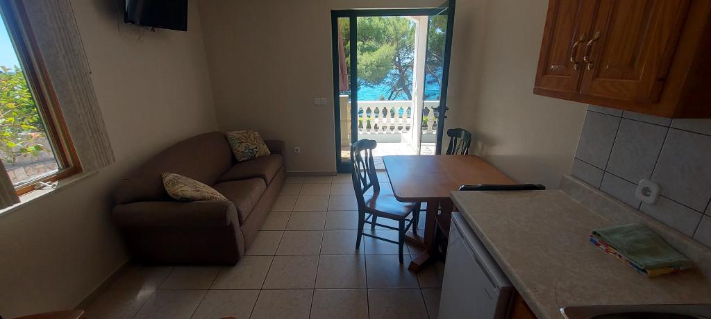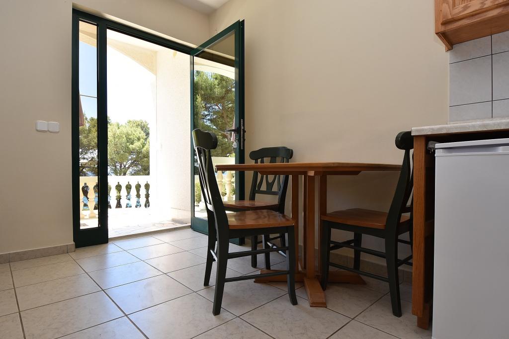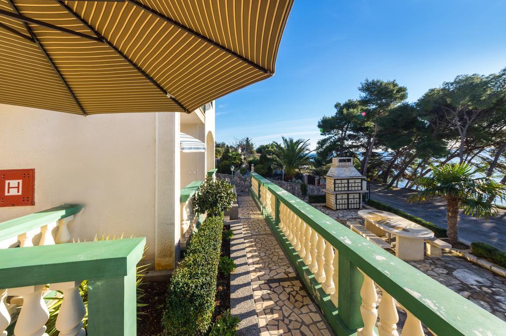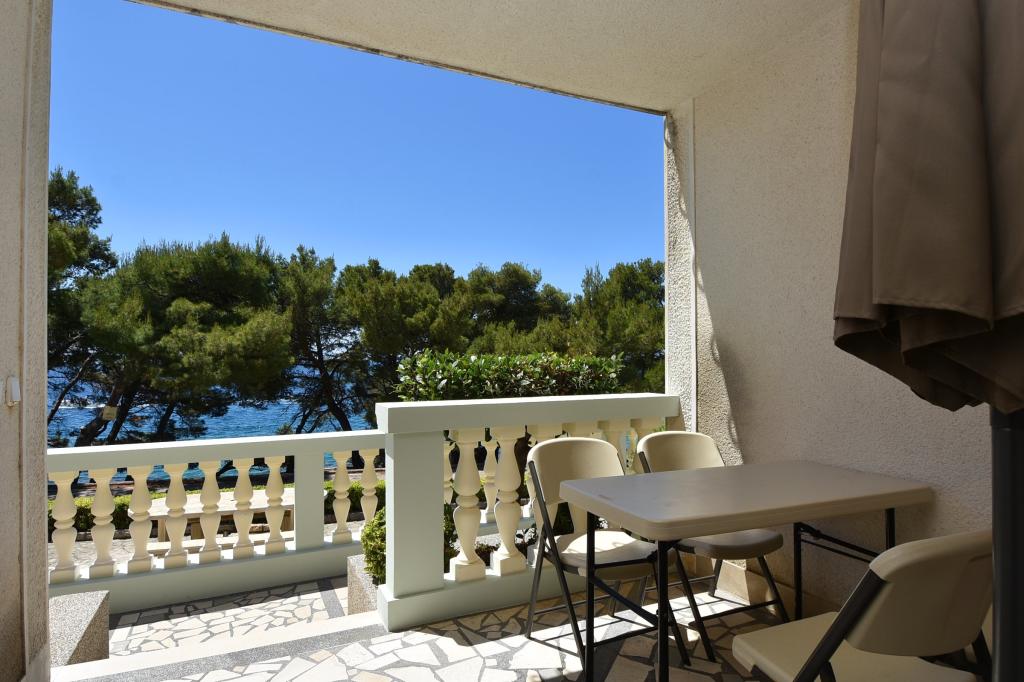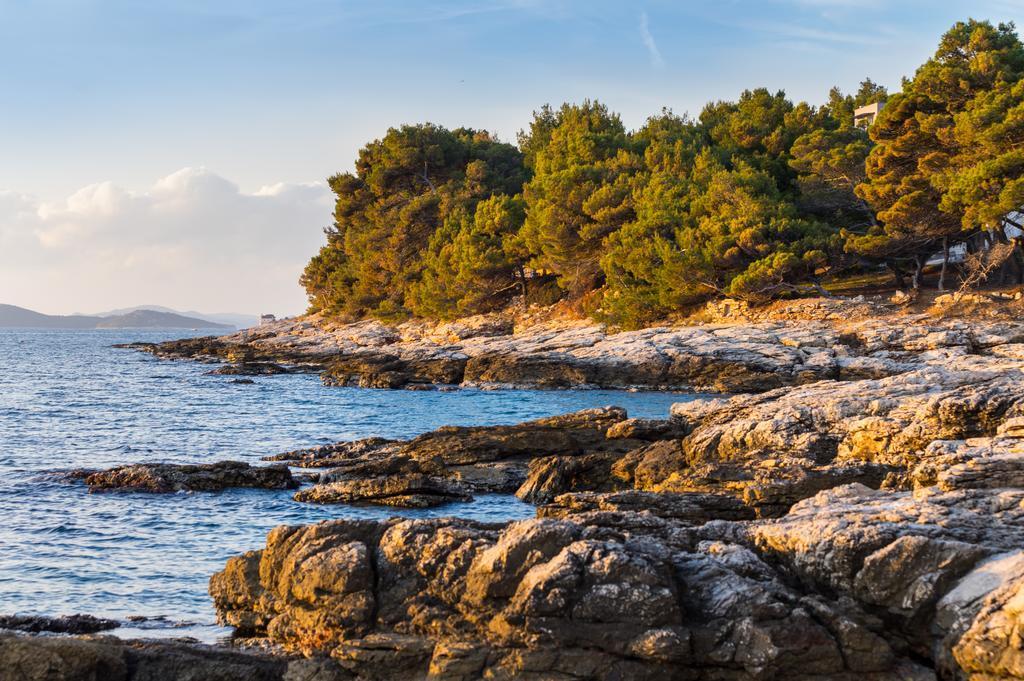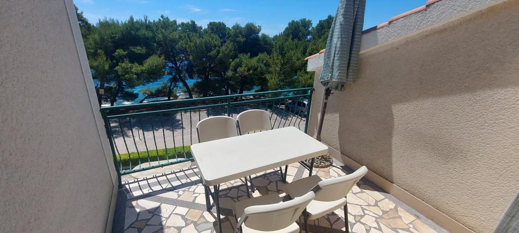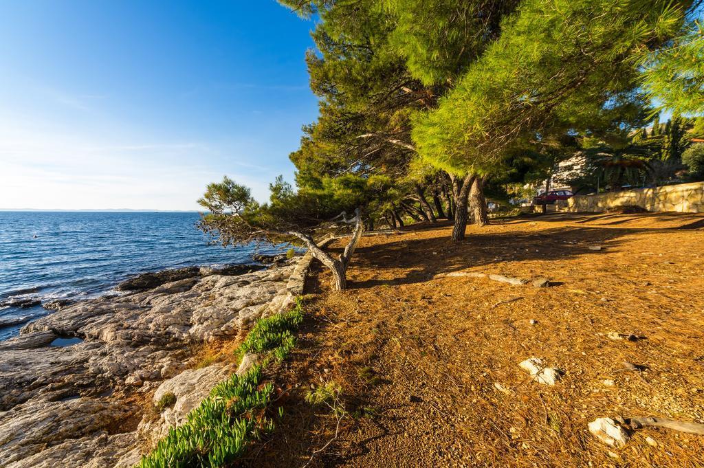 Apartamenty Golden Shell położone są tuż nad morzem, na ulicy Pod Raduč. Ta lokalizacja jest najpiękniejsza i najpopularniejsza na całej wyspie Murter. Kamienista plaża znajduje się przed domem, a w pobliżu znajdują się piaszczyste plaże Slanica i Čigrađa. Okolica jest cicha, a ruch uliczny niewielki. Przed domem goście mogą korzystać z kąpieli, opalać się i relaksować w cieniu sosen. Do centrum Murteru jest około 2 km, ale można tam łatwo dotrzeć, wybierając przyjemny spacer przez zielony teren otaczający plażę Slanica. Przed domem znajduje się duży parking.