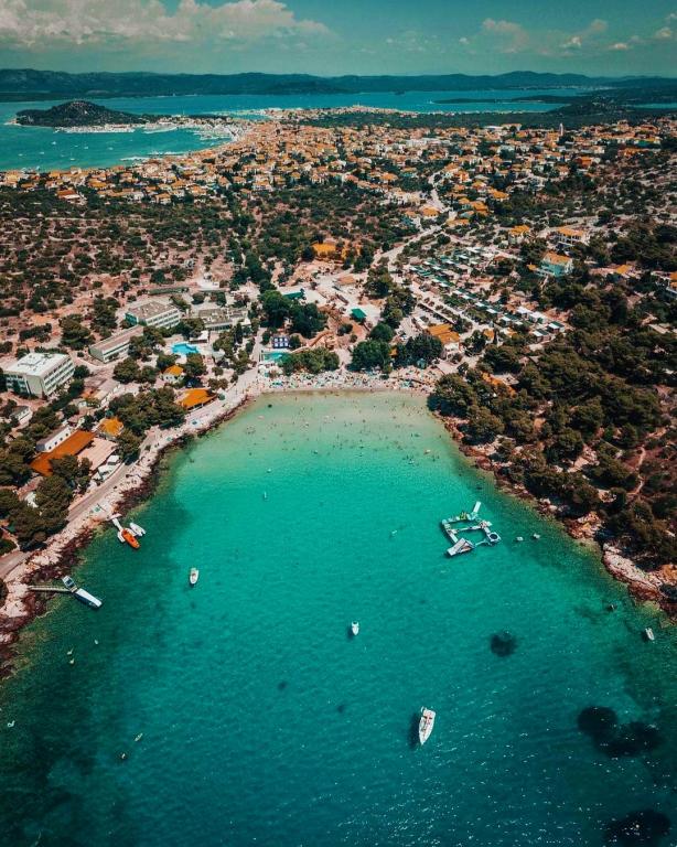 Oferujemy komfortowe apartamenty dla 4 do 6 osób. Każdy apartament posiada w pełni wyposażoną kuchnię, łazienkę, salon, 2 sypialnie i balkon. Do Państwa dyspozycji jest duże podwórko z ogrodem, grillem, stołem i krzesłami oraz schowkiem na rowery lub wózki spacerowe. Apartamenty znajdują się zaledwie 150 metrów od jednej z najpiękniejszych plaż na Adriatyku, aw Murter można znaleźć wszystko, czego potrzeba do przyjemnego wypoczynku. Jest wiele restauracji i kawiarni, kilka supermarketów, piekarni, sklepów mięsnych, bazarów, przychodni, aptek, poczta, bank, bankomaty, stacja benzynowa, kościół, kino, przystań, kluby nurkowe, boiska sportowe i place zabaw dla dzieci. Możesz wypożyczyć łódź, skuter, motorower lub rower. W ofercie są także wycieczki statkiem do Parku Narodowego Kornati, a w pobliżu znajduje się Park Narodowy Krka. Polecamy również kilka punktów widokowych z pięknym widokiem na to miejsce, okoliczne wyspy i Kornaty. Apartamenty „Hojsak” znajdują się przy wjeździe na Murter. Znajdują się one pomiędzy plażą „Čigrađa”, wzgórzem „Raduč” i starą częścią Murteru „Selo”.