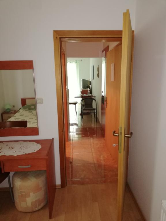 Apartamenty znajdują się w Murter, w pobliżu przystani Hramina. Apartamenty są 40 m2 i 36 m2, w pełni wyposażone. Mieszkanie o powierzchni 40 m2 składa się z sypialni, salonu, kuchni, łazienki oraz piękny taras z widokiem na morze życia. Pokój z podwójnym łóżkiem w pokoju dziennym znajduje się rozkładana dla jednej osoby lub dwóch małych dzieci. Mieszkanie 36 m2 składa się z oddzielnej sypialni z oddzielną łazienką i podwójnym łóżkiem, pokoju dziennego z kuchnią i druga łazienka. W salonie znajduje odvojeo dostawka której mogą spać dwie osoby. Pierwszy plaży jest tylko 150 m, a na wyspie więcej. Goście apartamentów w zagrodzie trzeba używać grilla na tarasie restauracji.