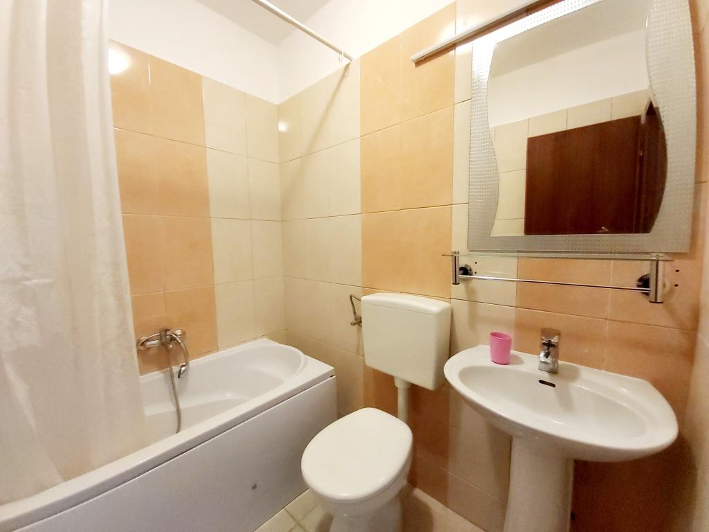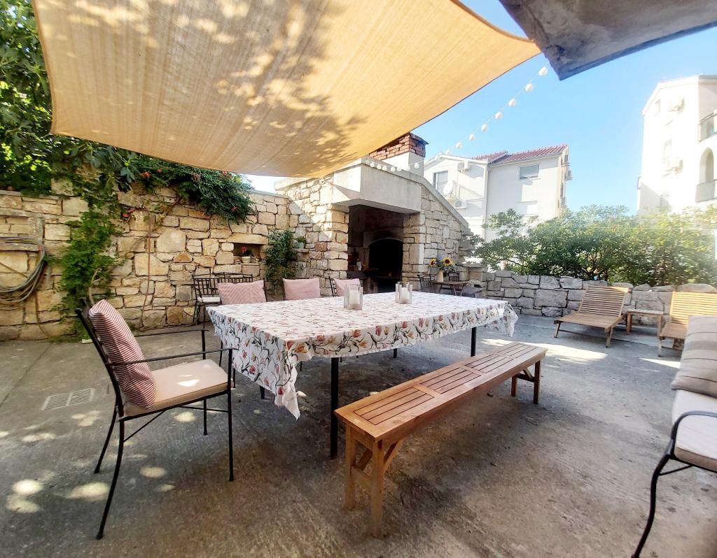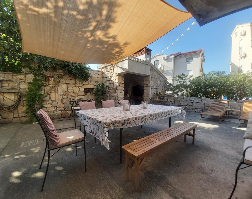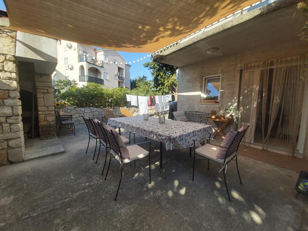 Apartament typu studio z tarasem o powierzchni 12 m². Apartament przeznaczony dla 2 osób. Duże łóżko podwójne, w pełni wyposażona kuchnia, stół jadalny, łazienka. Taras i stół jadalny. Zabezpieczone miejsce parkingowe przed apartamentem na jeden samochód. Blisko plaży. Apartament znajduje się 5 minut spacerem od plaży Slanica i 7 minut spacerem od centrum Murteru.