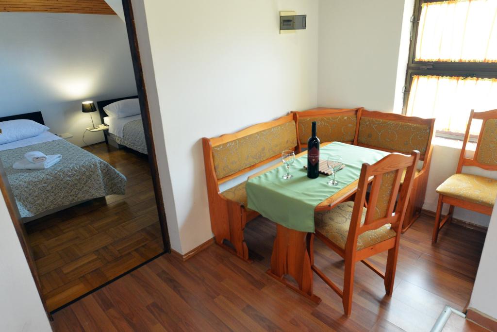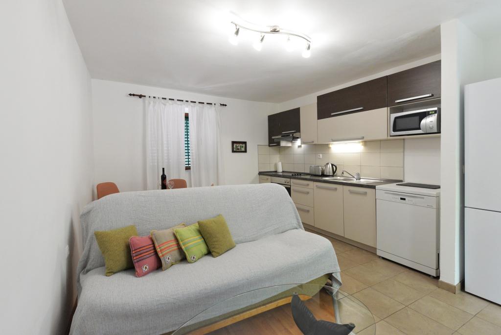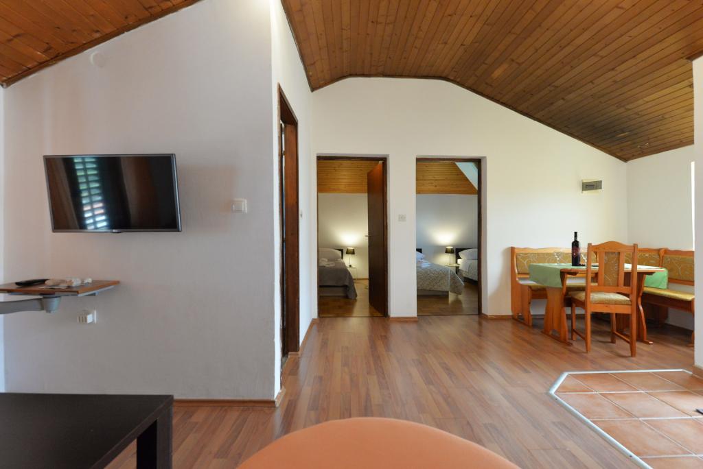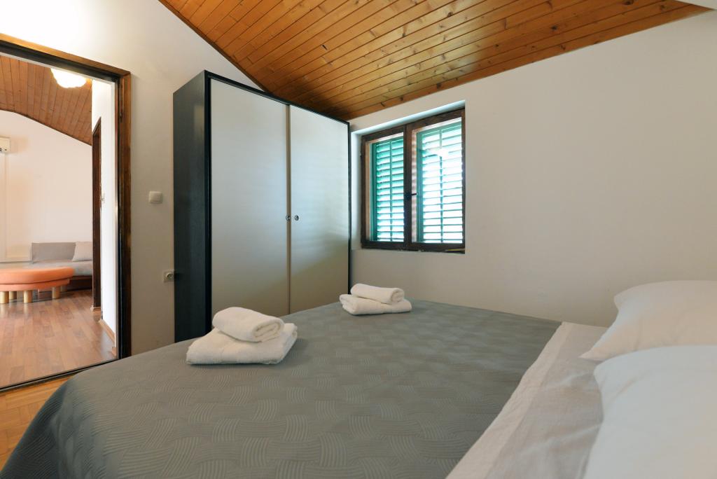 Apartament dla 2+1 lub 2+2 osób znajduje się w starej części Murter, w autentycznym dalmatyńskim domu z kamienia. Mieszkanie posiada jeden pokój, w którym mogą spać 2 osoby dorosłe, w salonie znajduje się kanapa (dostawka), która może służyć do spania, może nocować 1 osoba dorosła lub dwójka mniejszych dzieci. Kuchnia jest w pełni wyposażona. W apartamencie znajduje się internet WiFi, klimatyzacja, zmywarka, na zewnątrz apartamentu w pomieszczeniu gospodarczym znajduje się pralka, z której można korzystać bezpłatnie. Przed apartamentem znajduje się duży taras z grillem. Mieszkanie posiada bezpłatny parking. Mieszkanie znajduje się w starej części Murter. Mieszkanie ma dwie sypialnie, w których mogą spać 4 osoby dorosłe. W salonie znajduje się kanapa (dostawka), która może służyć do spania. Mieszkanie wyposażone jest w bezprzewodowy dostęp do Internetu, klimatyzację, zmywarkę, pralkę. Do apartamentu przynależą dwa bezpłatne miejsca parkingowe. Można skorzystać z tarasu widocznego na zdjęciu.