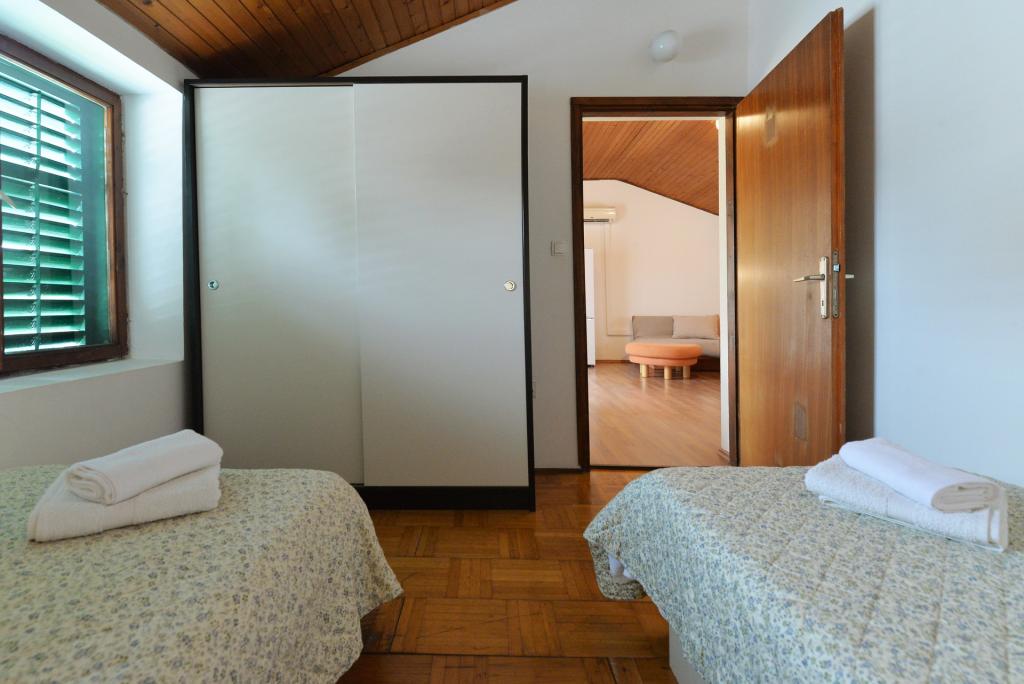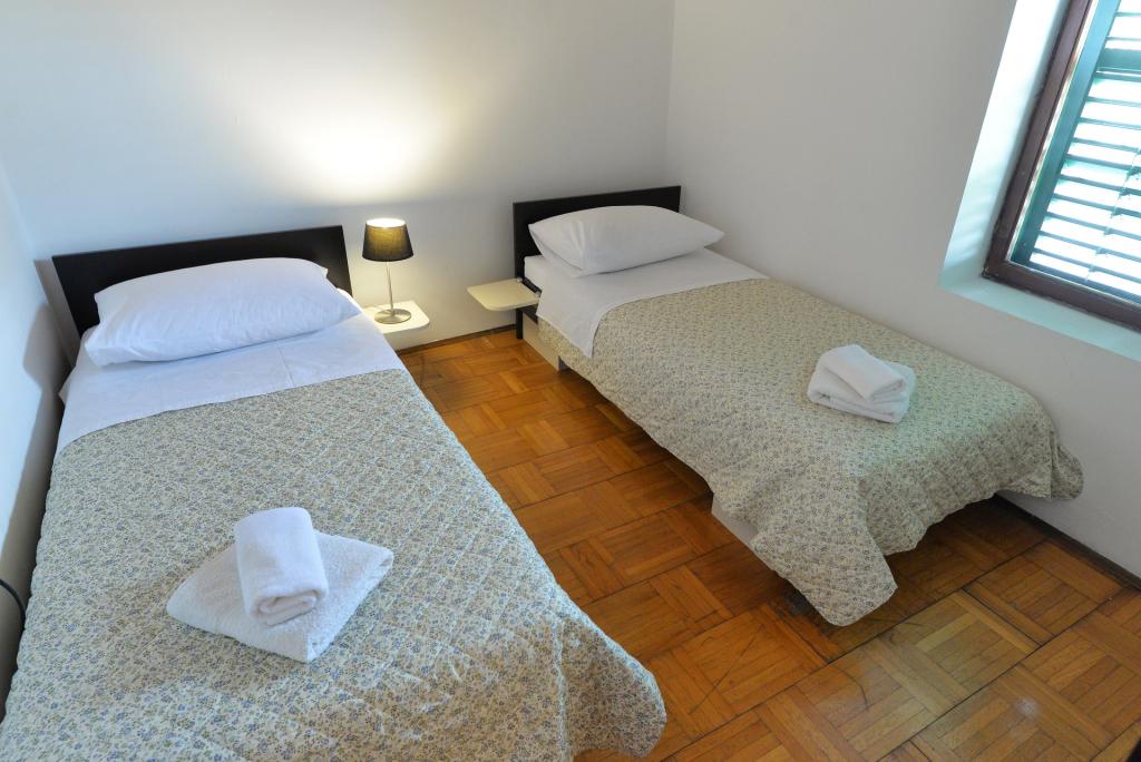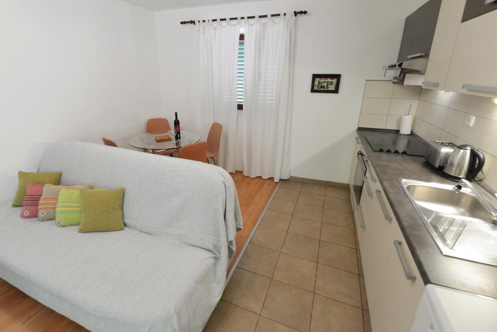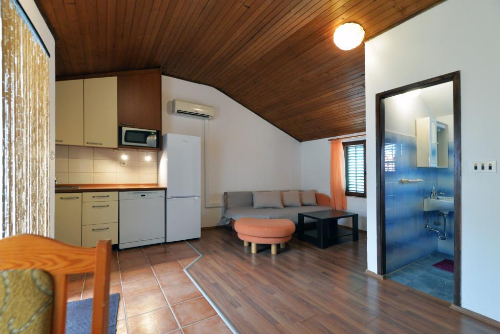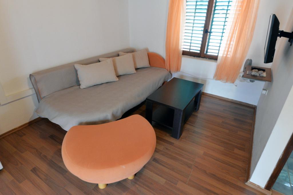 Apartament dla 2+1 lub 2+2 osób znajduje się w starej części Murter, w autentycznym dalmatyńskim domu z kamienia. Mieszkanie posiada jeden pokój, w którym mogą spać 2 osoby dorosłe, w salonie znajduje się kanapa (dostawka), która może służyć do spania, może nocować 1 osoba dorosła lub dwójka mniejszych dzieci. Kuchnia jest w pełni wyposażona. W apartamencie znajduje się internet WiFi, klimatyzacja, zmywarka, na zewnątrz apartamentu w pomieszczeniu gospodarczym znajduje się pralka, z której można korzystać bezpłatnie. Przed apartamentem znajduje się duży taras z grillem. Mieszkanie posiada bezpłatny parking. Mieszkanie znajduje się w starej części Murter. Mieszkanie ma dwie sypialnie, w których mogą spać 4 osoby dorosłe. W salonie znajduje się kanapa (dostawka), która może służyć do spania. Mieszkanie wyposażone jest w bezprzewodowy dostęp do Internetu, klimatyzację, zmywarkę, pralkę. Do apartamentu przynależą dwa bezpłatne miejsca parkingowe. Można skorzystać z tarasu widocznego na zdjęciu.