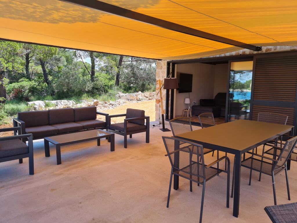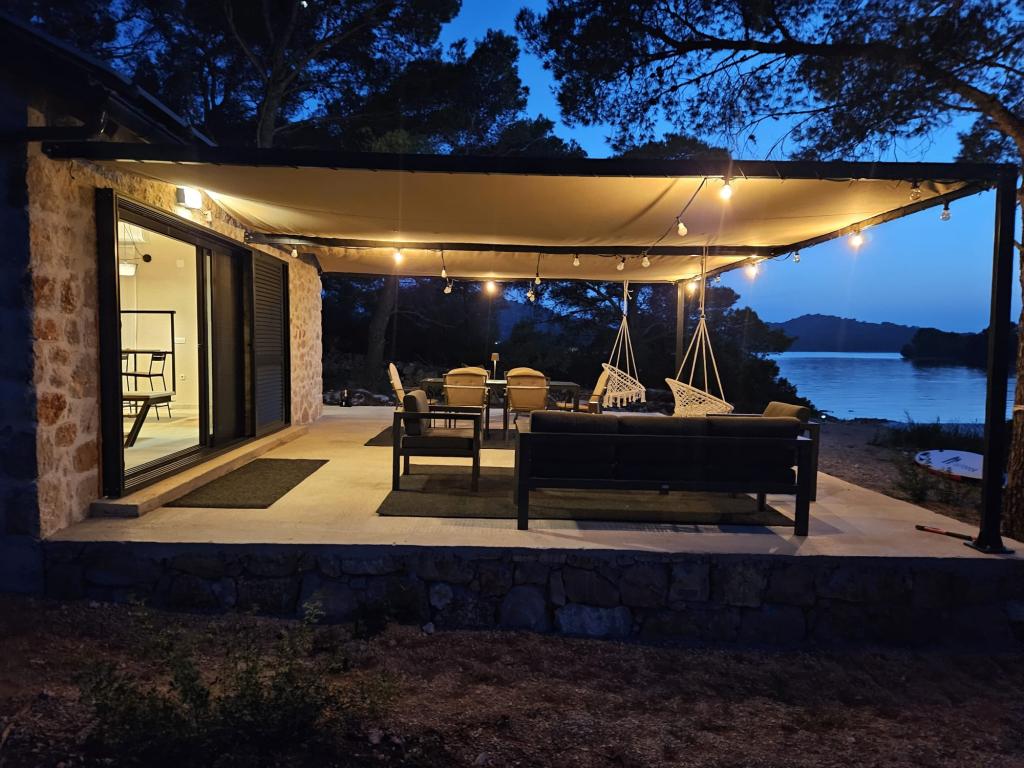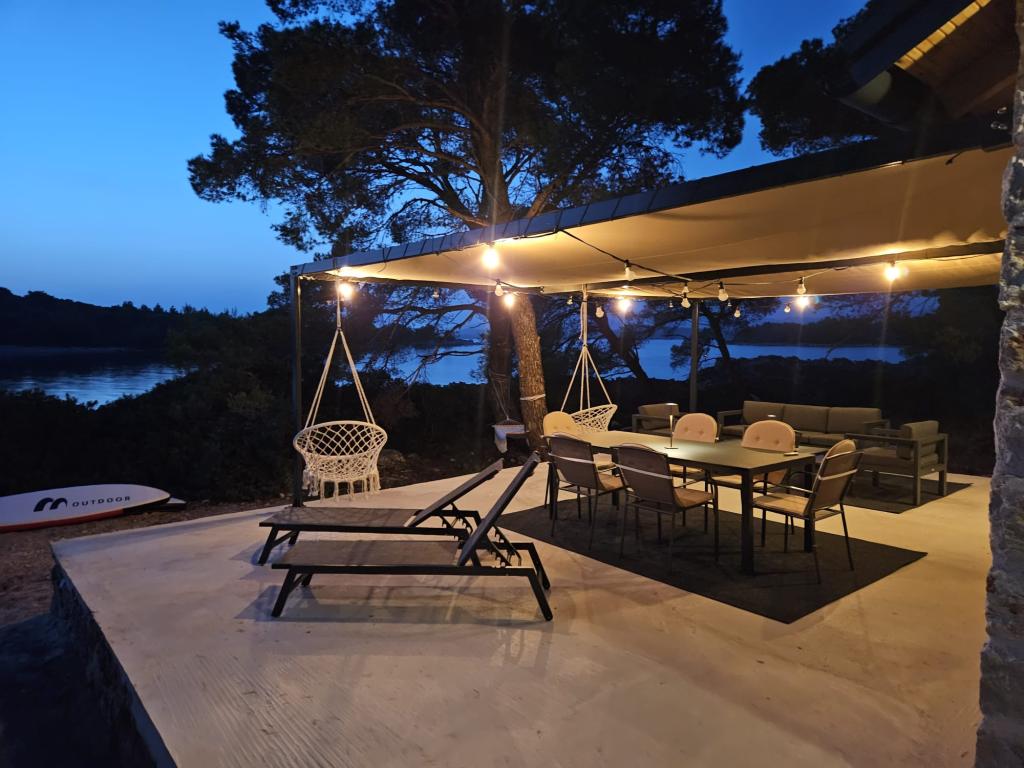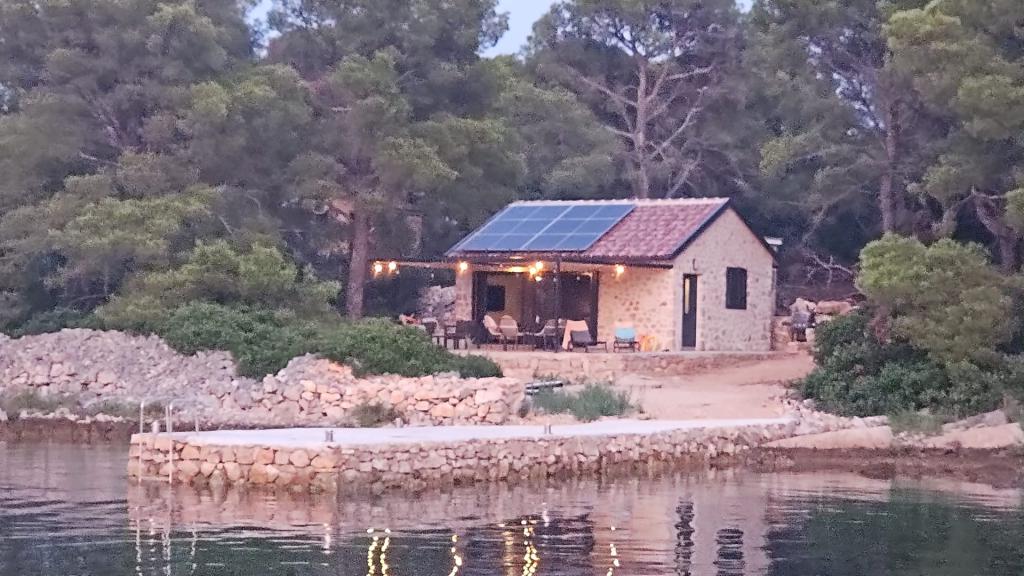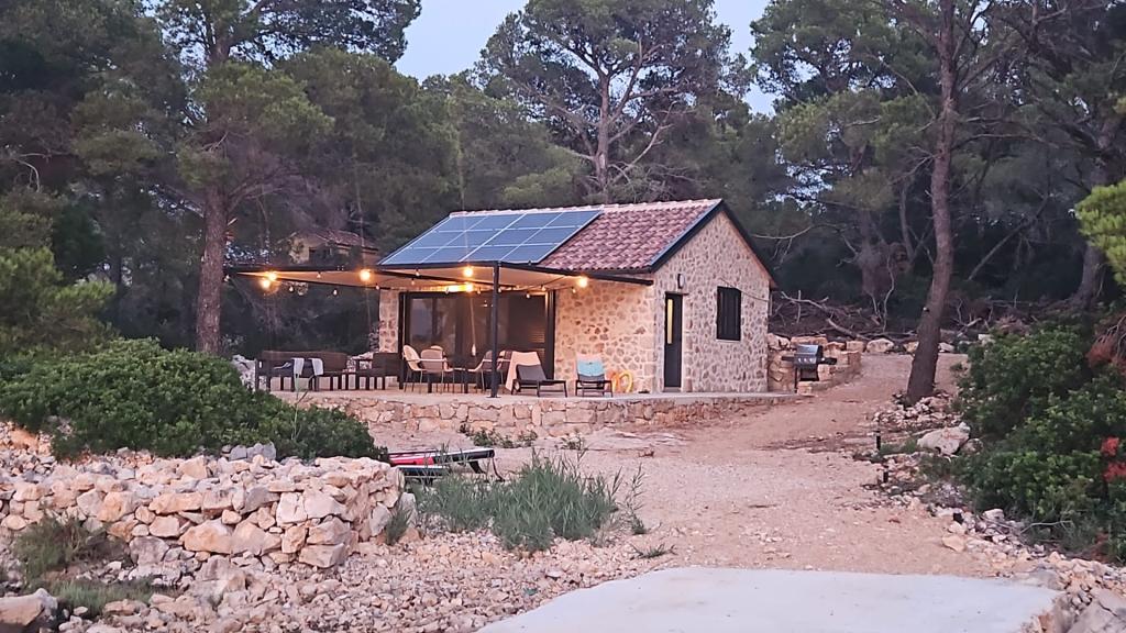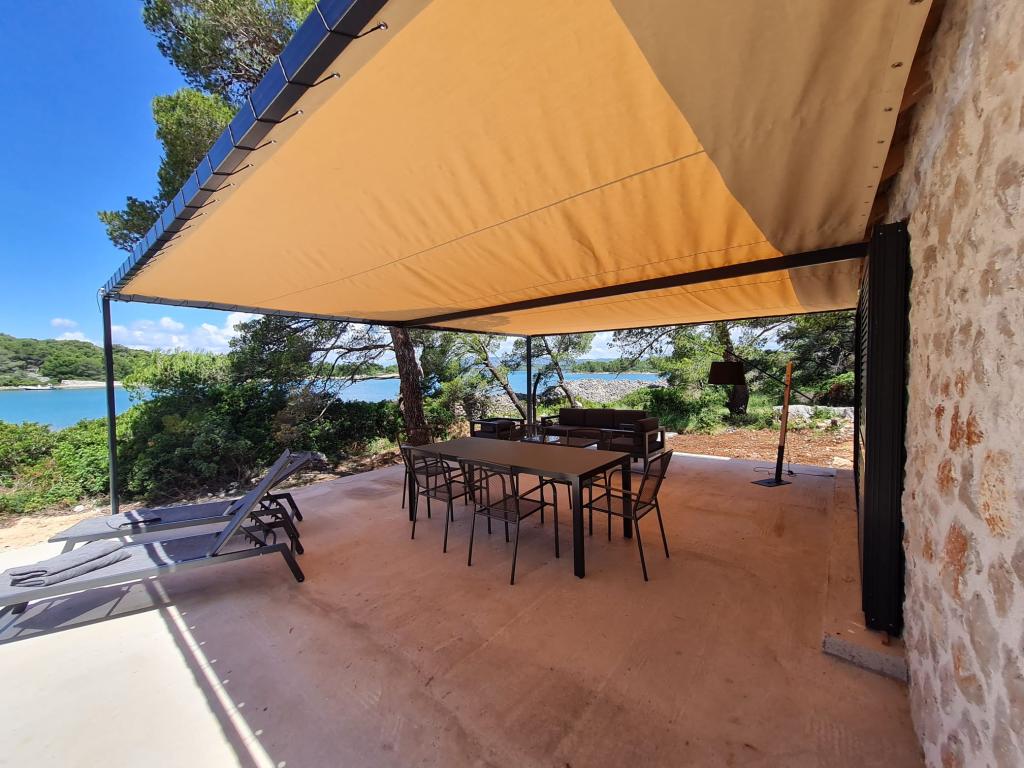 Dom rybaka wyposażony jest w panele słoneczne generujące energię elektryczną o mocy 220 W. Woda nadaje się do prysznica (z wodociągu lub deszczówki), podgrzewana przez słońce. Wody jest wystarczająco dużo, jeśli jest używana racjonalnie. Dom jest w pełni wyposażony w prąd 220 V, klimatyzację, 2 telewizory, kuchenkę, piekarnik, podgrzewacz wody, kuchnię z okapem, wszystkie kuchenne urządzenia elektryczne, pościel i ręczniki, grill na świeżym powietrzu, stół jadalny na świeżym powietrzu, zestaw wypoczynkowy, leżaki, huśtawki... Transfer jest wliczony w cenę, a właściciel zapewnia strzeżony, zadaszony parking w Murter. Dom położony jest w ustronnym miejscu, zaledwie 5 minut małą łódką, kajakiem lub SUP-em od centrum Murter i wszystkich udogodnień tego miejskiego kurortu turystycznego. Goście mogą wynająć małą łódkę z pięciobojem o mocy 6 KM, cena wynajmu za dzień 30 euro. Goście mogą wynająć ponton sportowo-turystyczny Ranieri Cayman 28 z 2 silnikami Mercury o mocy 250 KM, cena wynajmu na zapytanie.
