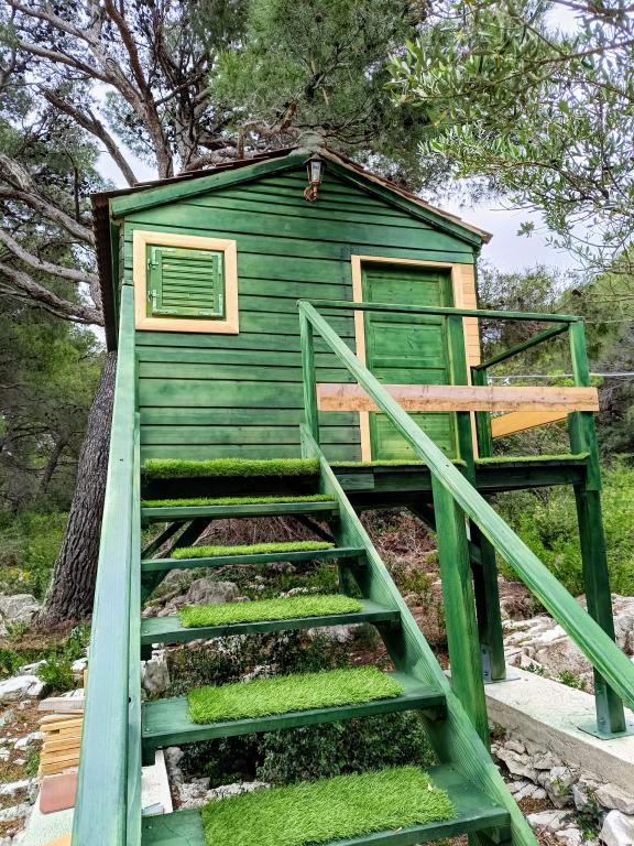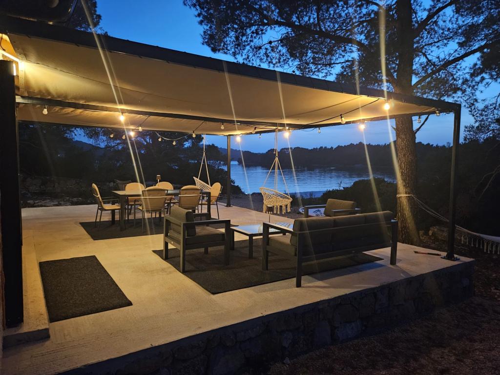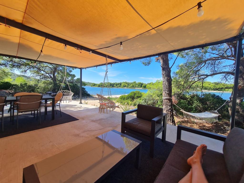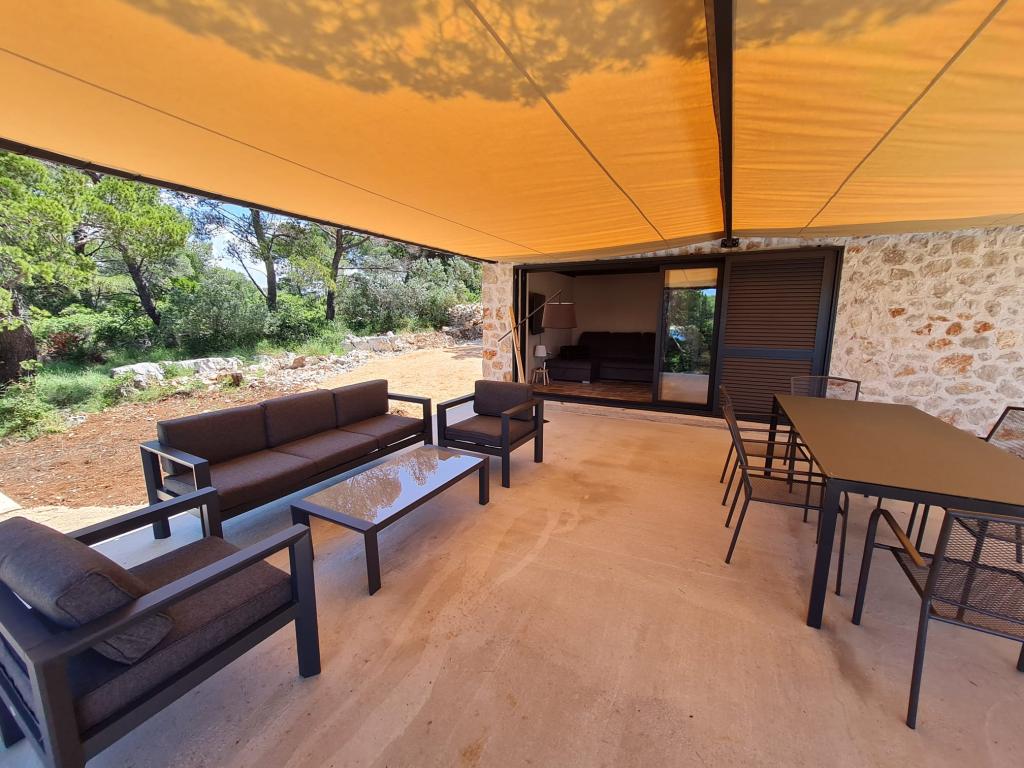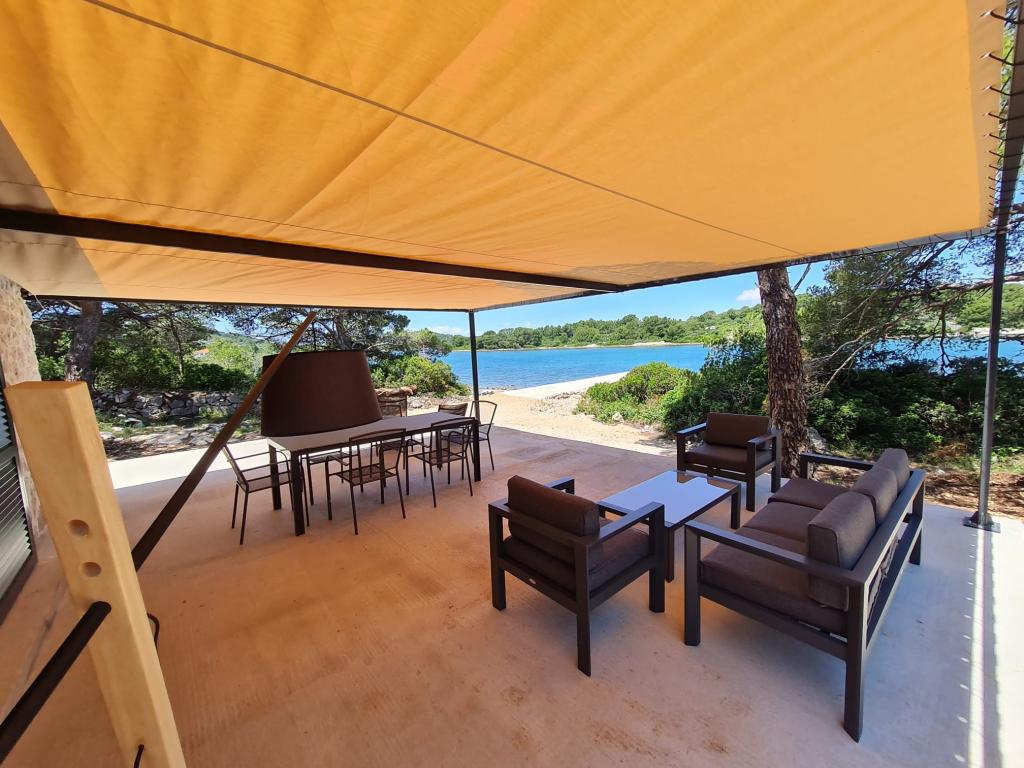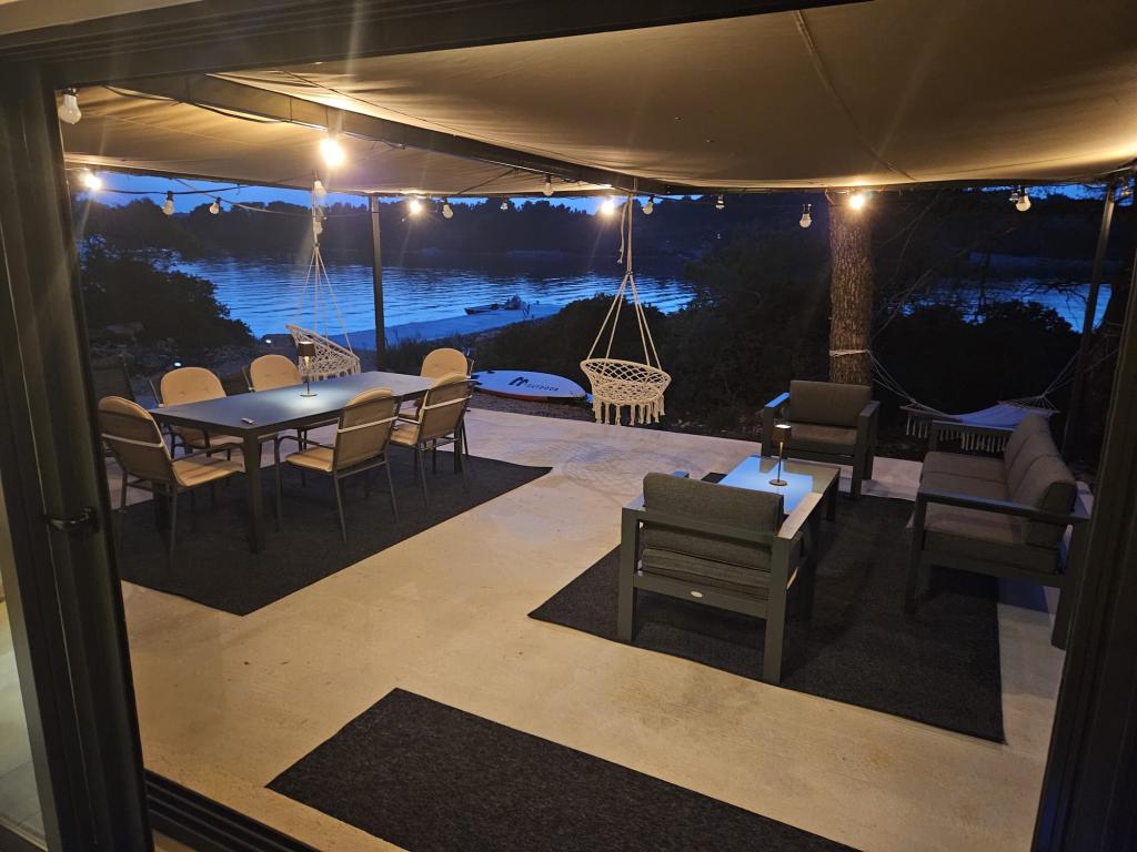 Dom rybaka wyposażony jest w panele słoneczne generujące energię elektryczną o mocy 220 W. Woda nadaje się do prysznica (z wodociągu lub deszczówki), podgrzewana przez słońce. Wody jest wystarczająco dużo, jeśli jest używana racjonalnie. Dom jest w pełni wyposażony w prąd 220 V, klimatyzację, 2 telewizory, kuchenkę, piekarnik, podgrzewacz wody, kuchnię z okapem, wszystkie kuchenne urządzenia elektryczne, pościel i ręczniki, grill na świeżym powietrzu, stół jadalny na świeżym powietrzu, zestaw wypoczynkowy, leżaki, huśtawki... Transfer jest wliczony w cenę, a właściciel zapewnia strzeżony, zadaszony parking w Murter. Dom położony jest w ustronnym miejscu, zaledwie 5 minut małą łódką, kajakiem lub SUP-em od centrum Murter i wszystkich udogodnień tego miejskiego kurortu turystycznego. Goście mogą wynająć małą łódkę z pięciobojem o mocy 6 KM, cena wynajmu za dzień 30 euro. Goście mogą wynająć ponton sportowo-turystyczny Ranieri Cayman 28 z 2 silnikami Mercury o mocy 250 KM, cena wynajmu na zapytanie.