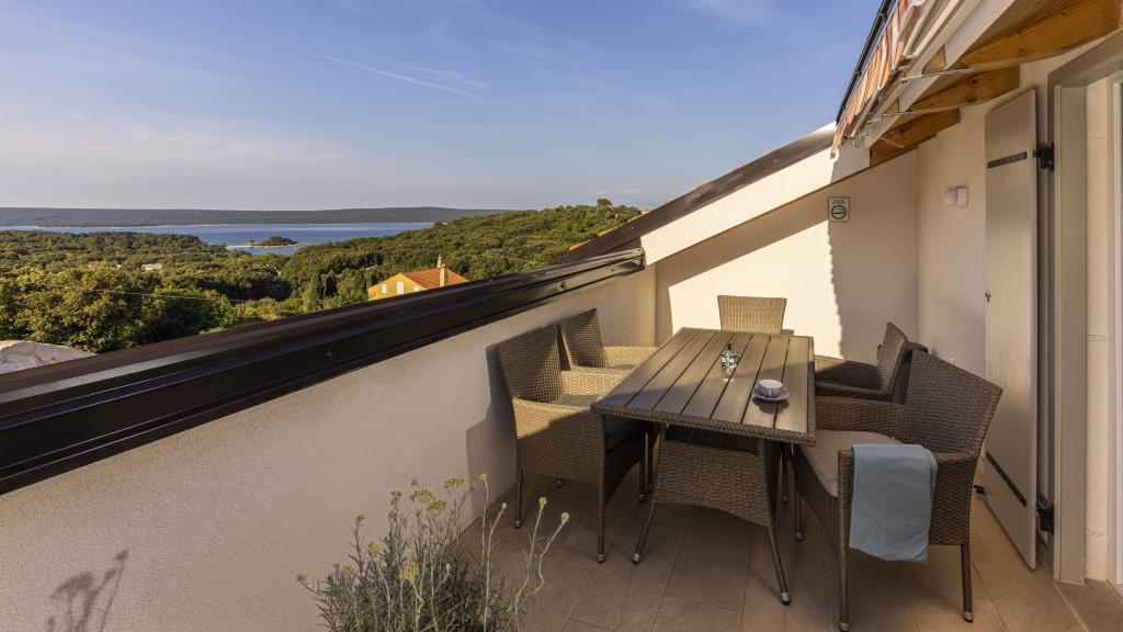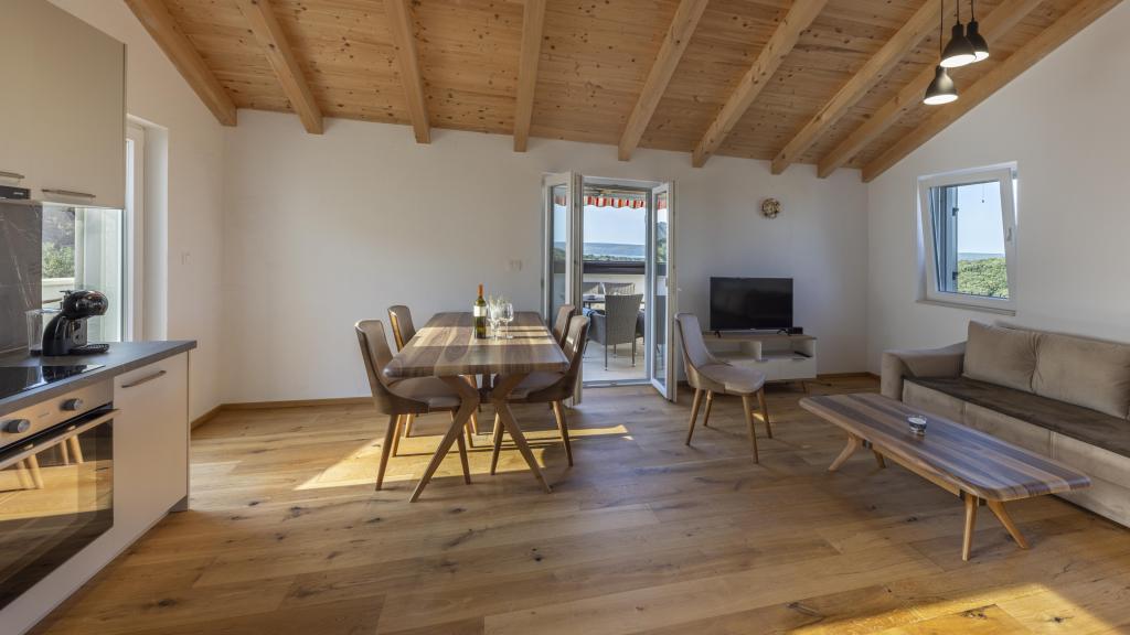 Apartament Sabina znajduje się w Villa Ancora w Sveti Jakov, spokojnej wiosce rybackiej. Nowe mieszkanie zlokalizowane jest na wysokim poddaszu, nowocześnie wyposażone we wszystkie niezbędne sprzęty. W apartamencie bezpłatna pościel, ręczniki, internet Wi-Fi, telewizor LCD SAT, sprzęt do prasowania, suszarka do włosów, ekspres do kawy na espresso i kawę filtrowaną, bezpłatne miejsce parkingowe, a na wspólnym podwórku znajduje się grill z meblami ogrodowymi. Mieszkanie składa się z przedpokoju, 2 sypialni, łazienki z pralką, kuchni z pełnym wyposażeniem i sprzętem AGD, jadalni, salonu z sofą, balkonu oraz przestronnego tarasu z widokiem na morze. W pobliżu znajdują się fantastyczne plaże, do których można dojść w kilka minut. (Lanena, Faldomak, Studenac 600m - 800m), restauracje, liczne obiekty turystyczne i sportowe oraz zabytki kulturalne wyspy. Okolica Muzeum Apoxyomena w M. Losinj Starożytne miasto Osor Kula w Veli Losinj Aquapark Čikat w M. Losinj Instytut ochrony delfinów Blue World w Veli L.