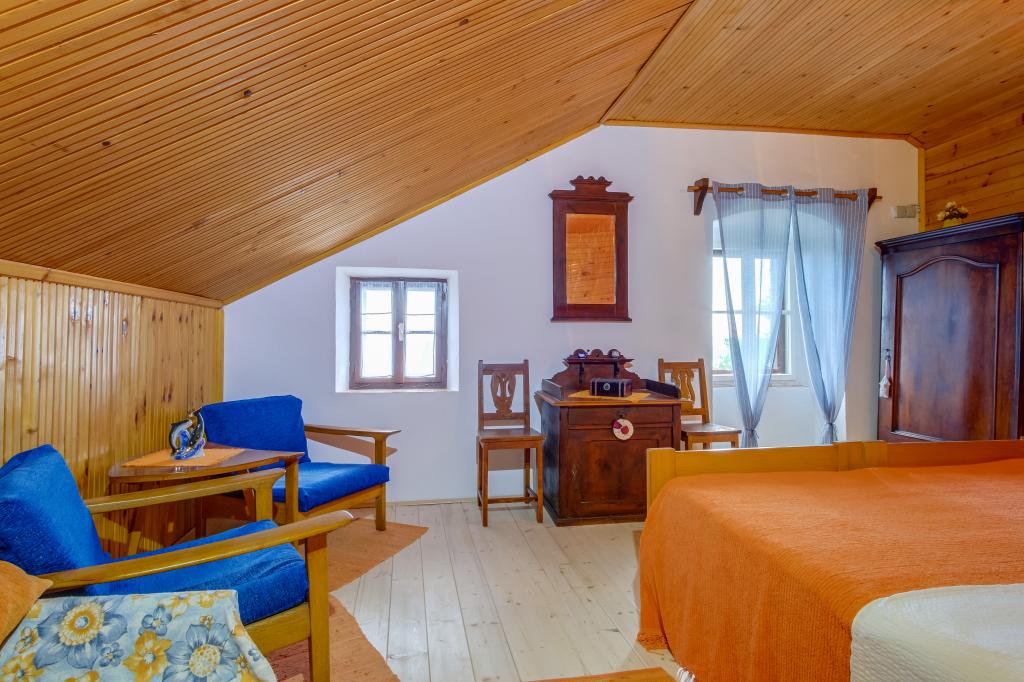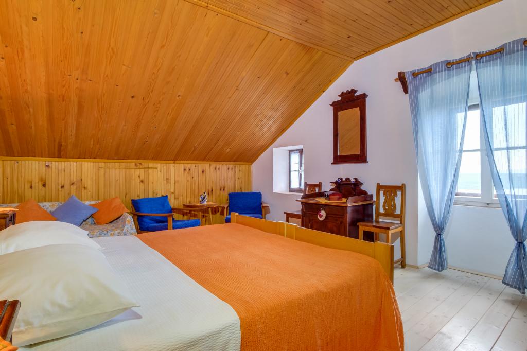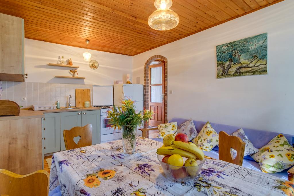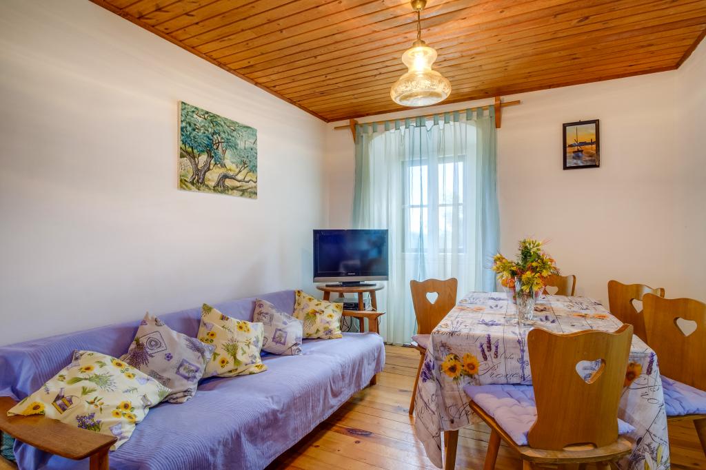Drodzy goście, nasze wakacje są wyjątkowe. Jesteśmy odosobnionym domem, otoczonym naturalną zielenią i drzewami oliwnymi. U nas macie spokój, odległość od głównej drogi wynosi 1,5 km, a od centrum Nerezine 3 km. Do Waszej dyspozycji jako gości jest przestronny parking, szeroki teren przed apartamentem (200 m2), gdzie Wasze dzieci mogą swobodnie spędzać czas bez zmartwień. Do dyspozycji macie również zewnętrzny prysznic, grill, stół z ławką i krzesłami w cieniu trzcin, gdzie możecie spokojnie zjeść śniadanie na zewnątrz. Możecie u nas kupić naszą domową oliwę z oliwek i likiery. Jeśli lubicie nieco „dzikie” otoczenie, jeśli nie przeszkadzają Wam owce, które wieczorem chodzą przed apartamentem i czekają, aż rzucicie im kawałek chleba lub warzywa, jeśli nie przeszkadzają Wam koty, które leżą na otaczających murach, jeśli lubicie szerokie otwarte przestrzenie, to jest to właściwe miejsce dla Was. Mieszka tu tylko nasza rodzina i dołożymy wszelkich starań, aby doradzić Państwu, gdzie znajdują się najpiękniejsze plaże i restauracje, aby uczynić Państwa pobyt jak najpiękniejszym i najprzyjemniejszym