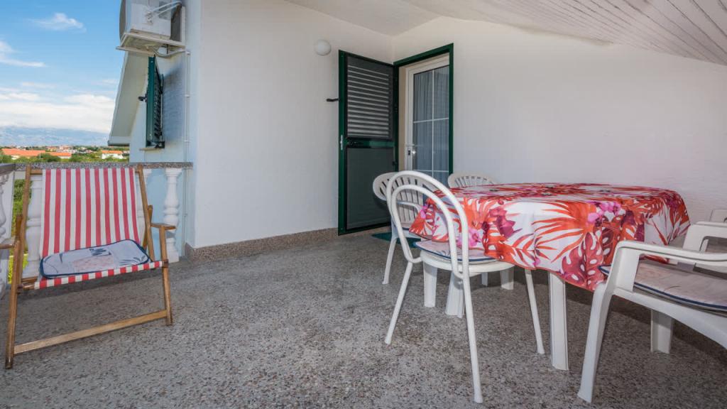 Apartament Goga znajduje się w Zukve Vrsi w zatoce Nin. Zukve jest około 2 km od historycznego miasta Nin i około 18 km od miasta Zadar. W nocy ścieżka biegnąca wzdłuż plaży jest oświetlona i pełni funkcję promenady o długości około 2 km. Apartament o powierzchni 50 m2, znajdujący się na pierwszym piętrze, składa się z salonu, kuchni z jadalnią, dwóch sypialni (w jednej znajduje się łóżko małżeńskie i jedna dostawka, w drugiej są dwa pojedyncze łóżka), łazienki oraz zadaszonego tarasu. markiza z częściowym widokiem na morze i Velebit. Mieszkanie jest klimatyzowane, wyposażone w pralkę, zmywarkę, sprzęt AGD, posiada telewizję satelitarną oraz Wi-Fi. Podwórze domu, w którym znajduje się mieszkanie, jest pełne zieleni.
