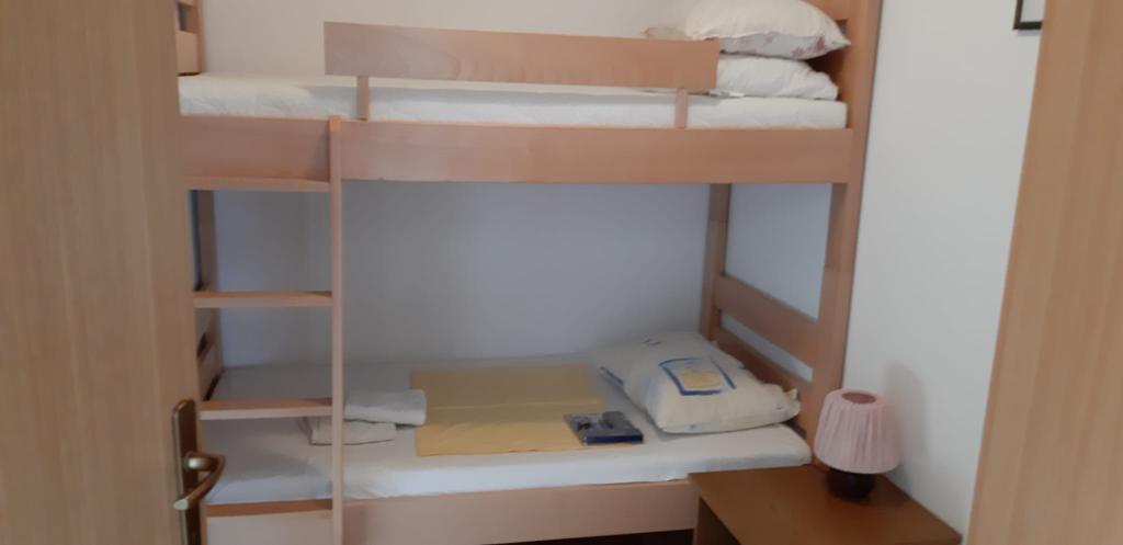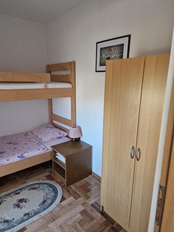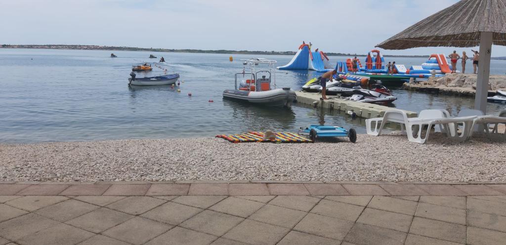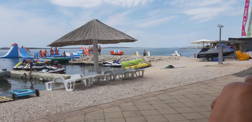 Apartament „Idi pa Vidi” znajduje się w miejscowości Vrsi, niedaleko miasta Nin (odległość 4 km), a odległość od Zadaru wynosi 23 km. Dojazd z Zagrzebia zajmuje 2,5 godziny. Oferujemy 2 apartamenty z osobnymi wejściami. W gminie Vrsi znajduje się 14 plaż, a najbliższa plaża jest oddalona od apartamentu o 320 metrów. Plaże w Vrsi są przeważnie piaszczyste i kamieniste (najsłynniejsza plaża znajduje się w pobliżu Ričina). W odległości spaceru znajduje się supermarket, targ, piekarnia, restauracje, sklep mięsny i park rozrywki. Dom położony jest w ślepej uliczce, z zagospodarowanym, trawiastym podwórkiem. Do dyspozycji gości jest prysznic na świeżym powietrzu i grill. Apartament na pierwszym piętrze posiada salon z tarasem i widokiem na morze i jest dwupoziomowy. Na pierwszym poziomie znajdują się dwie sypialnie (jedna z łóżkiem podwójnym, druga z balkonem z łóżkiem piętrowym (z dwoma łóżkami) oraz łazienka), natomiast trzecia sypialnia (w której znajduje się również toaleta) znajduje się na antresoli apartamentu. Apartament może pomieścić maksymalnie 7 osób.
