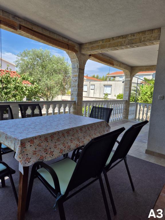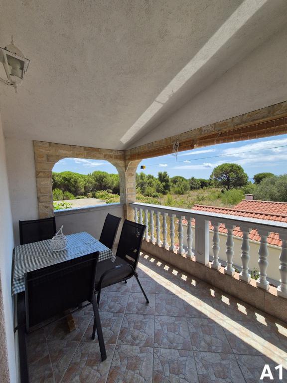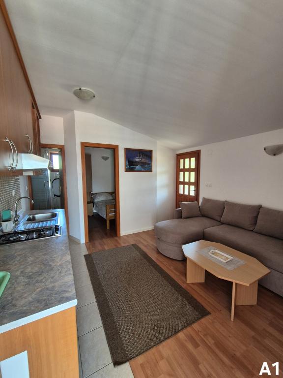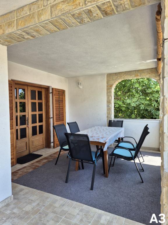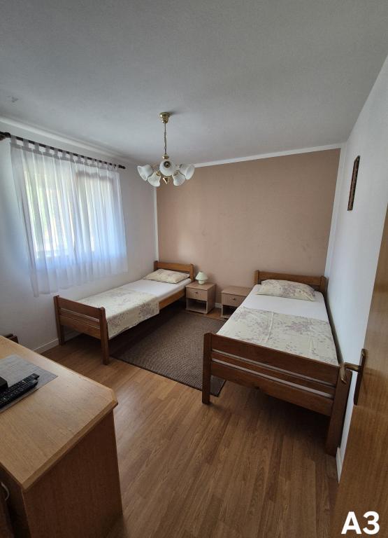 Apartamenty znajdują się w spokojnej części (Bilotinjak 1), w pobliżu miasta Nin. Apartamenty zostały niedawno odnowione. Każdy apartament składa się z łazienki, sypialni z podwójnym łóżkiem, kuchni i dodatkowego łóżka dla dwóch osób. Apartament dysponuje tarasem z widokiem na morze od strony południowo-zachodniej. Oba apartamenty mają zabezpieczone miejsce parkingowe na podwórku. Grill i prysznic na świeżym powietrzu są dostępne. Przestronna, naturalna piaszczysta plaża, z dala od domu, trzysta metrów, jest odpowiednia dla dzieci.