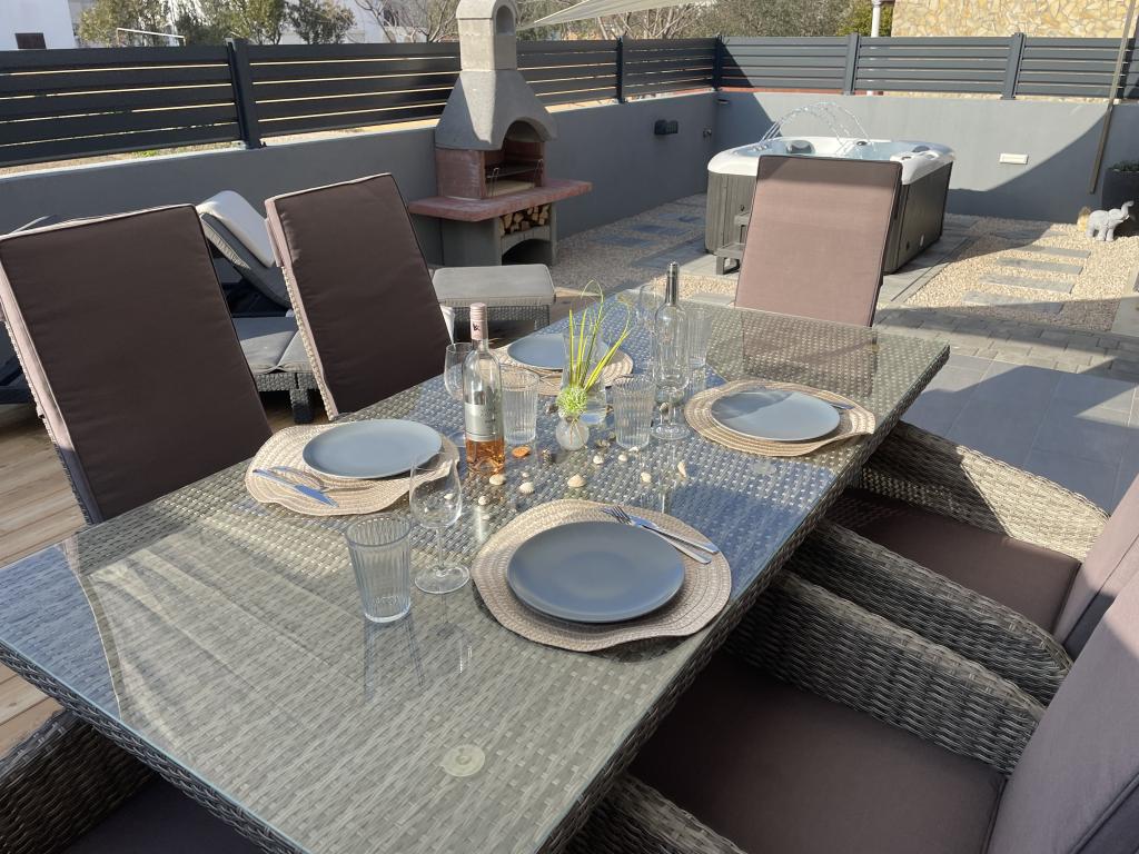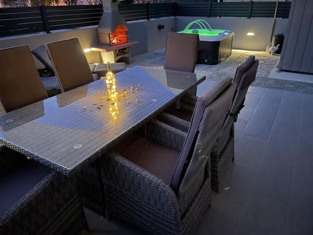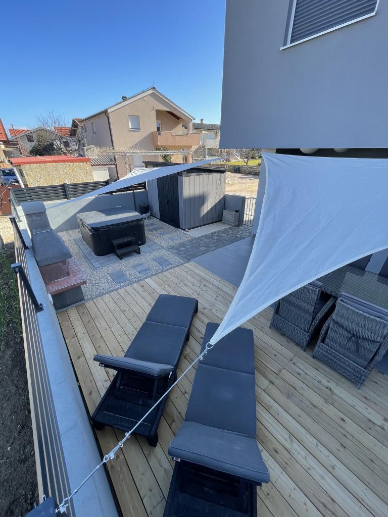 LE Stan, Ulica 4C Vrsi, Chorwacja Typ Ekskluzywny / dom wakacyjny Zakwaterowanie 6-8 > goście sypialnia 3 sypialnie / 3 łóżka łazienka 2 łazienki Komfort spotyka się z elegancją Spędź wakacje w Chorwacji z Apartamentem LE i ciesz się przyjemnymi wakacjami w rodzinnej atmosferze. Możesz spodziewać się luksusowych udogodnień i eleganckiej przestrzeni na świeżym powietrzu, w tym podgrzewanego jacuzzi. Do plaży można łatwo dotrzeć pieszo (ok. 150 m). Psy są mile widziane w apartamencie LE! Miasto Vrsi jest blisko Ninu i Zadaru.