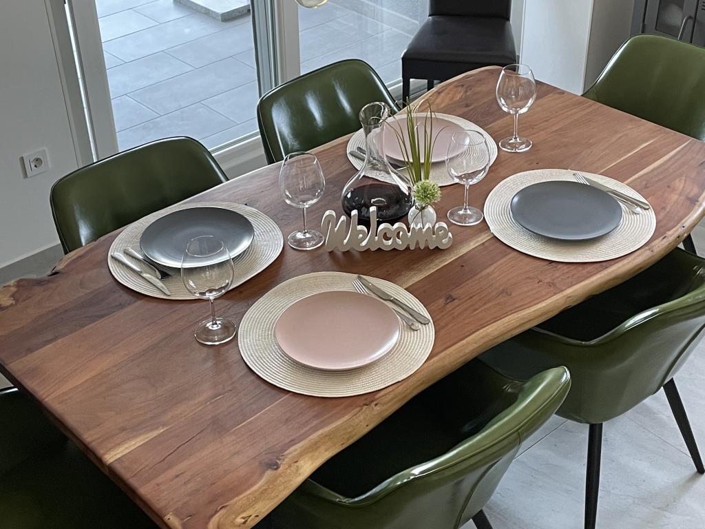 Wyposażenie LE apartament 87m² powierzchnia mieszkalna • Parking obok domu • Pościel kompletna • Łóżeczko turystyczne dla dziecka z materacem 60x120cm • Duża łazienka z prysznicem na poziomie podłogi • Pralka + suszarka • Suszarka do włosów • Ręczniki Otwarty salon wyposażony jest w sofę łóżko, telewizja satelitarna i Smart TV • Zmywarka • Piekarnik • Kuchenka elektryczna • Lodówka z zamrażarką • Ekspres do kawy z dzbankiem termicznym • Toster • Czajnik • Podgrzewacze do butelek dla niemowląt i owsianki • Dla naszych najmłodszych gości przygotowaliśmy krzesełko do karmienia z naczyniami dla dzieci • Toaleta dla gości • Klimatyzacja na każdym piętrze • Bezpłatne WiFi w całym domu • Odkurzacz • 2x rowery • Prąd i woda w cenie Teren zewnętrzny piękny zadaszony taras z otwartym, dołączonym drewnianym tarasem, idealny dla dzieci i psów, w pełni ogrodzony • Meble ogrodowe z poduszkami • Leżaki z poduszkami • Parasol i markiza • Magiczne solarium prysznic • Kominek grillowy • Zabawki do piasku • Łódź z jacuzzi • Boja 150 metrów od domu