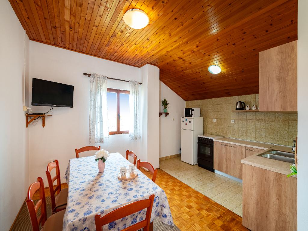 Apartament zgodny z opisem. Dobrze wyposażony, przestronny, czysty. Dobrze usytuowany. Z kuchni widok na morze i góry. Blisko dwa duże markety (Konzum, Tommy) oraz piekarnia. Bardzo mili właściciele.