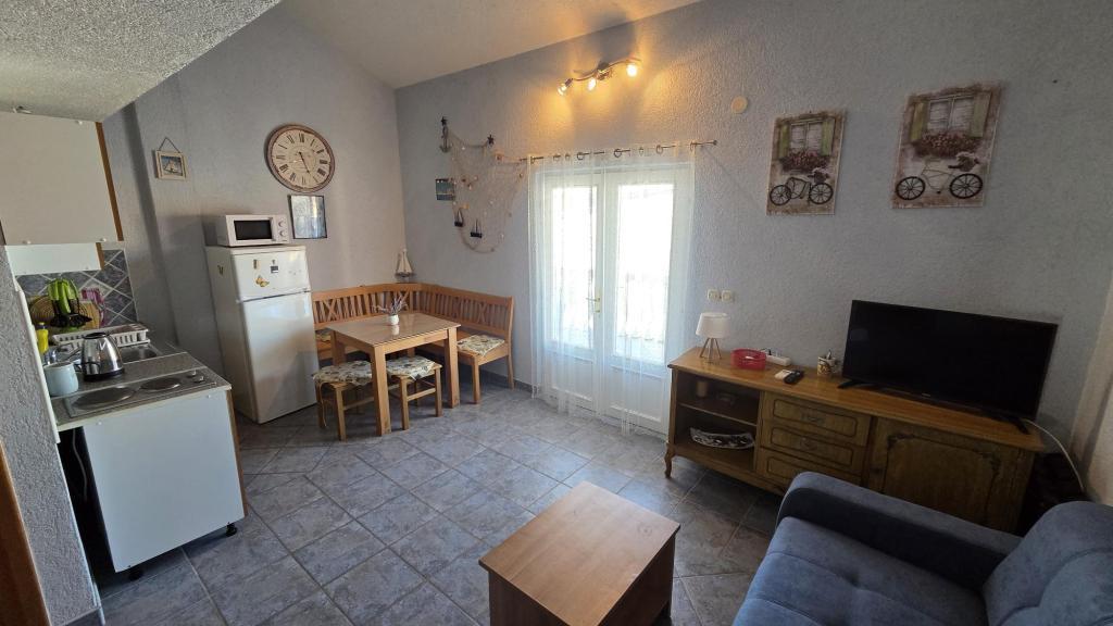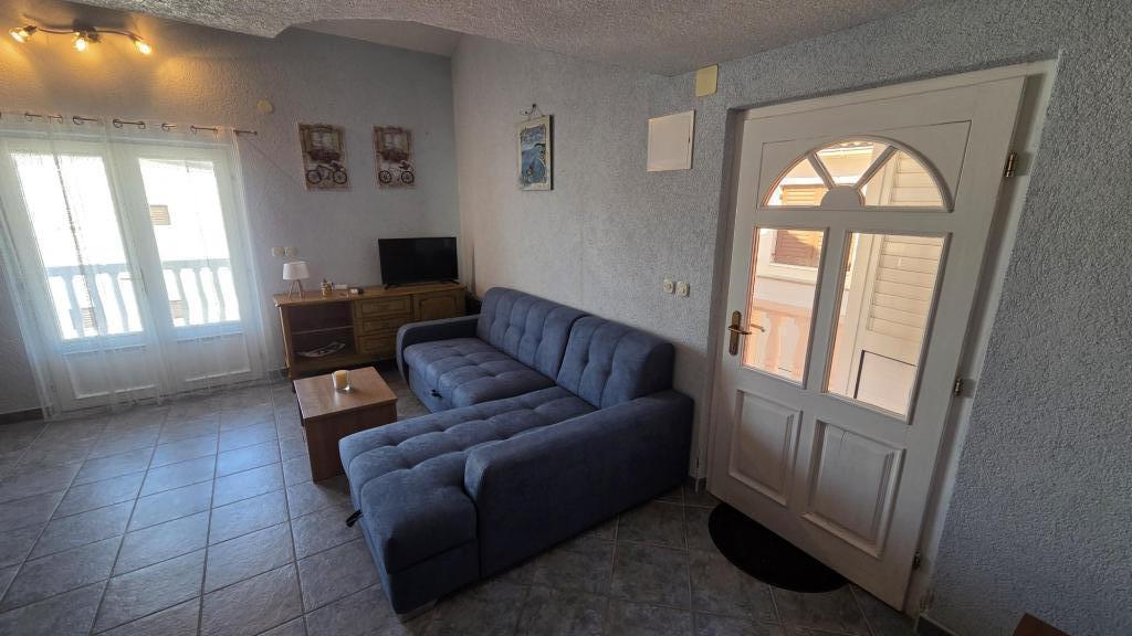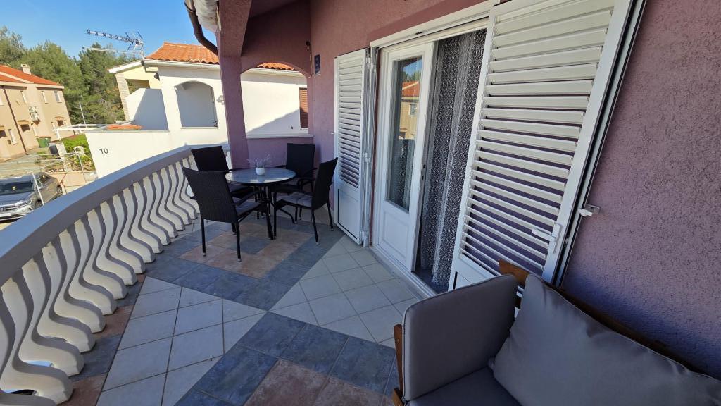 Apartament składa się z dwóch pokoi, jednego z łóżkiem małżeńskim, drugiego z dwoma oddzielnymi łóżkami, łazienki, salonu z aneksem kuchennym i dużego tarasu. Parking dla samochodu obok apartamentu, grill, klimatyzacja, Wi-Fi. Odległość od morza wynosi 5 minut spacerem, a do centrum miasta i sklepów 10 minut. W pobliżu znajduje się piękny las sosnowy. Spokojna i cicha okolica.